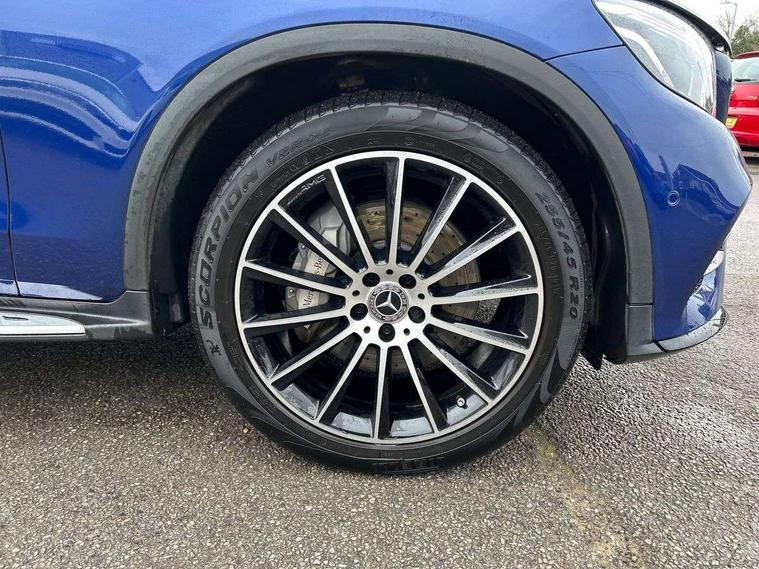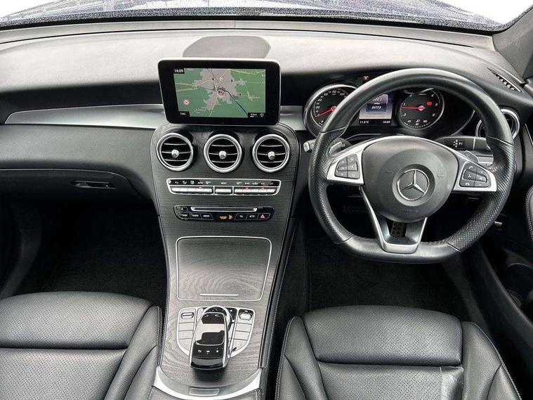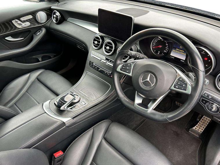 8.4" high resolution display, Active park assist with parktronic system, Attention assist, Bluetooth interface for hands free telephone, Collision prevention assist plus, COMAND online nav with colour display, radio/CD/DVD/MP3, SD card, 10GB music, Emergency Call system, speed limit assist, linguatronic voice control, Crosswind Assist, DYNAMIC SELECT with a choice of driving modes (ECO, Comfort, Sport, Sport+ and Individual), Instrument cluster with 5.5-inch TFT multi-function display, Mercedes connect me with remote online services, Multi function trip computer, Outside temperature gauge, Power opening/closing tailgate, Remote boot release, Service indicator (ASSYST), Touch pad controller for infotainment system, Traffic sign recognition, Diesel particulate filter, Burmester surround sound system, DAB Digital radio, USB connection, Adaptive brake lights, Aerodynamic rear spoiler, AMG bodystyling front and rear aprons, side skirts, Automatic headlights, Body coloured bumpers, Electric panoramic sunroof with sunblind, Electric windows one touch open/close, Electrically adjustable and heated door mirrors, Exhaust tailpipe finisher, Front and rear apron in black, High gloss black beltline and window surround, High gloss black door mirrors, LED daytime running lights, LED rear lamps, Matt black roof rails, Privacy glass (to rear of B post), Radiator grille with 2 louvres in high gloss black, Rain sensor windscreen wipers, Range adjustable headlights, Rear wiper, Tinted glass all round, 2 cupholders in front centre console, 2 way rear head restraints, 3 spoke flat bottom multi-function AMG steering wheel in black nappa leather with chrome inserts, 4 way adjustable front head restraints, 4 way electric lumbar support for driver and front passenger, 40:20:40 split folding rear seats, Ambient lighting, AMG floor mats, AMG sports seats, Auto Mercedes-Benz child seat recognition sensor, Automatic climate control, Black roof lining, Dividing net - rear, Electric front seat height adjustment, Front armrest with storage box, Front door sills with Mercedes Benz lettering, Gearshift paddles, Heated front seats, Height/reach adjustable steering column, Lockable/illuminated glovebox, Rear top tether child seat ISOFIX attachment, Sports pedals with stainless steel surfaces and rubber studs, Sunvisors with illuminated vanity mirrors, Easy-pack load compartment cover, Interior lighting pack - GLC, Memory pack - GLC, Mirror pack - GLC, Storage pack - GLC, 3 rear 3 point seatbelts, ABS with Brake Assist, Active bonnet, Adaptive brake system, ASR, Brake calipers with Mercedes-Benz lettering + perforated brake discs, Child proof door locks, Drivers knee airbag, Dual stage driver/passenger airbags, Electronic parking brake, ESP curve dynamic assist, Front and rear seatbelt reminder, Front passenger seat occupancy sensor, Front side airbags, Hill hold function, Tyre pressure monitoring system, Warning triangle and first aid kit, Window airbags, Alarm system/interior protection/immobiliser, Automatic door locking, Keyless entry and keyless start, Remote central locking,