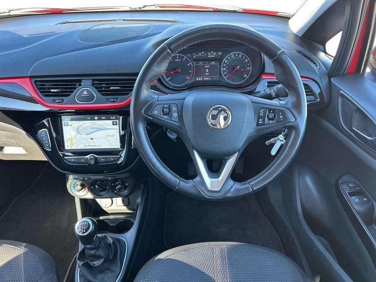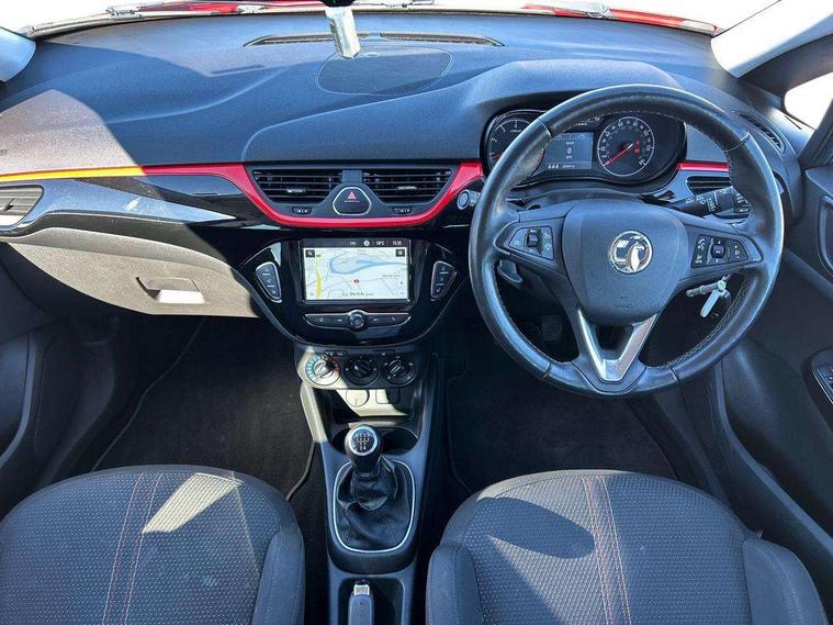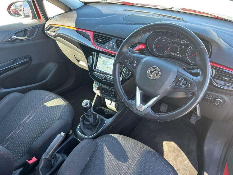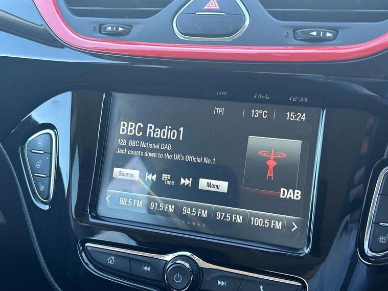 Apple car play/Android Auto, Bluetooth system, Central facia display, Cruise control + speed limiter, Digital fuel gauge with low fuel warning light, Digital water temperature gauge, Electric speed sensitive power steering, Exterior temperature gauge, Lights on audible warning, Navi 4.0 IntelliLink navigation with 7" touchscreen, traffic program, DAB , USB, Bluetooth audio streaming, Apple CarPlay/Android auto, and microphone, Rev counter, Service indicator, Speed warning indicator, Speedometer, Trip computer, White graphics on black background, Front anti roll bar, Sports suspension, Six speakers, Steering wheel mounted audio/cruise controls, Automatically dimming anti dazzle rear view mirror, Black door mirrors, Black foil on B-pillars, Black front grille logo bar, Black roof, Body colour bumpers, Body colour door handles, Chrome front grille, Dark tinted rear windows, Dipping rear view mirror, Door to door illumination, Electric adjustable/manual folding door mirrors (wide angle on driver's side), Electric headlight beam leveling, Electrically operated front windows with safety auto reverse/one touch facility, Front fog lights with black surround, Front fog lights with chrome surrounds, Griffin badges, Halogen headlights, Hazard warning lamps, Headlamp levelling, Heated rear window, Heated windscreen, High level LED centre brake light, Intermittent rear wash/wipe, Laminated windscreen, LED daytime running lights, Mineral black door mirror housings, Rain sensitive windscreen wipers, Rear fog lights, Rear wiper, Side window demist vents, Tinted windows, Two speed windscreen wipers with variable intermittent wipe, Welcome lighting, Windscreen demist vents, 12V electrical accessory socket in front, 3 spoke steering wheel, Air conditioning, Anti submarining ramps in all seats, Centre console with cupholders, Chrome gear knob, Chrome interior door handles, Comfort front seats, Driver's and front passenger's sunvisors, Driver's and front passenger's tiltable assist handles, Driver's and passenger's vanity mirrors with flip up cover, Driver's vanity mirror, Four adjustable facia vents, Front courtesy lights, Front door pockets, Front map reading lights, Front seat belt pre-tensioners with load limiters, Glovebox with lid, Grab handles, Griffin branded floor mats, Heated front seats, Height adjustable driver's seat, Height adjustable front headrests, Height adjustable rear head restraints with adjustable backrest, Illuminated luggage compartment, Instrument panel light dimmer, Interior tailgate handles, Isofix child seat mounting points on outer rear seats, Lace cloth trim, Load restraining lashing points, Luggage compartment cover, Multi function steering wheel, One piece folding rear seat, Pollen filter, Reach + rake adjustable steering column, Rear courtesy lights, Rear door pockets, Rear reading lights, Reclining front seats, Sports front seats, Storage box on driver's side lower facia, Stowage facility for luggage compartment cover behind rear seats, Twin gas assisted tailgate struts, Two rear tiltable passenger assist handles, Sight and light Pack - Corsa, Winter pack - Corsa, Anti-lock braking system (ABS), Brake assist function, Electronic brake force distribution, Electronic Stability Programme, Energy absorbing steering column, Front and rear seatbelt reminder, Front and rear seatbelt unfastened audible warning and warning light, Front seatbelt force limiters, Gas pressure dampers, Height adjustable front seatbelts, Hill start assist, Manual passenger airbag deactivation function, Pedal release system, Rear child proof door locks, Reinforced passenger safety cell, Side impact protection beams, Six airbags - Driver's dual stage airbag/front passenger's dual stage airbag/front seat side impact airbags/full size curtain airbags, Three 3 point rear seatbelts, Three inertia reel lap/diagonal seatbelts, Traction control, Tyre pressure monitoring system, Electronically protected audio, Engine Immobiliser & Deadlocks, Key left in ignition audible warning, Locking wheel bolts, Remote control central locking, Visible vehicle identification number, Rhutenium facia with chrome effect inserts, 16" 4 twin spoke black alloy wheels, Tyre inflation kit,