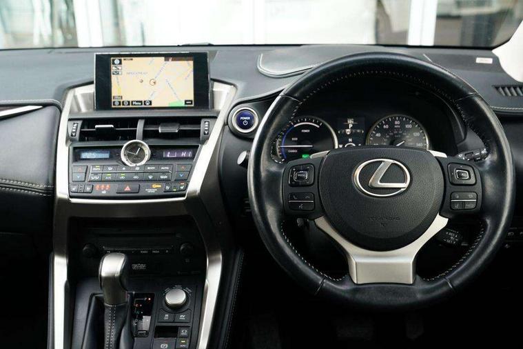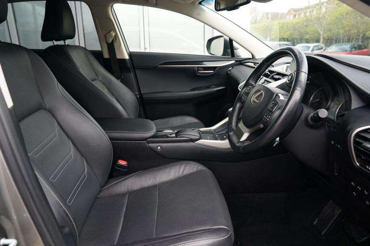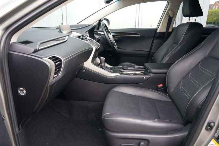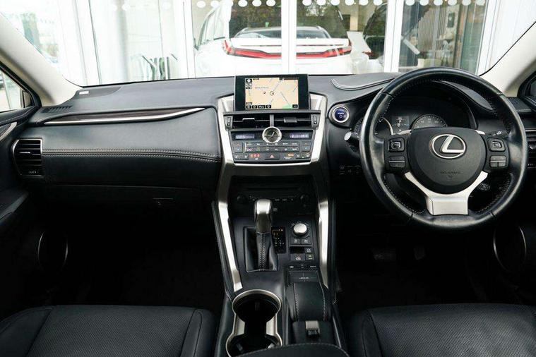 Adaptive cruise control + pre-crash system, Analogue clock, Blind spot monitoring, Bluetooth telephone connectivity, Drive mode selector, Front and rear parking sensors, Head up Display, Lane keep assist, Multimedia display, PAS, Premium navigation system, Push button starter, Rear cross traffic alert, Remote touch interface, Service interval indicator, Surround camera system, Trip computer, Voice control system, VDIM, Vehicle Stability Control (VSC), 14 speakers, Aux input, DAB Digital radio, Mark Levinson Audio with 6CD changer, Steering wheel mounted audio controls, USB connection, Adaptive high beam assist, Body colour bumpers, Electric/heated/folding door mirrors, Electrochromatic rear view mirror, Electrochromic door mirrors, Front and rear electric windows, Headlight washers, Illuminated door handles, LED daytime running lights, LED front fog lights with static cornering light function, LED Headlights, Privacy glass, Puddle lights in exterior door handles, Rain sensor windscreen wipers, Rear wiper, Roof rails, Roof spoiler, Shark fin roof aerial, 10 way electric adjustable drivers seat, 3 spoke leather steering wheel, 60/40 split folding rear seat, 8 way electrically adjustable passenger seat with height, reach, till and backrest, Driver seat memory function, Driver's lumbar support, Dual climate control air conditioning system, Electric adjustable steering column, Front armrests, Front seat ventilation, Heated front seats, Heated steering wheel, Isofix child seat attachment, Leather gear lever, Leather upholstery, Rear armrest, Rear headrests, Convenience pack - NX, 3x3 point rear seatbelts, ABS, Active front headrests, Curtain airbags, Driver/Front Passenger airbags, Driver/front passenger side airbags, EBD + Brake Assist, Electronic parking brake, Front/rear seatbelt pre-tensioners, Hill start assist, Passenger airbag cut-off device, Rear passenger side airbags, Traction control, Tyre pressure warning, Alarm, Immobiliser, Remote central double locking, Smart card entry, Speed sensitive power door locks, Space saver spare wheel,