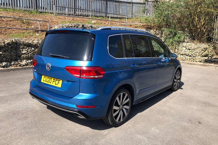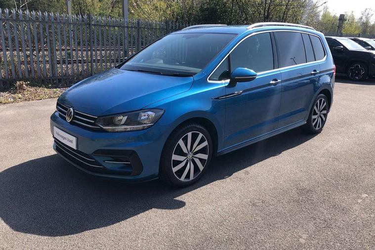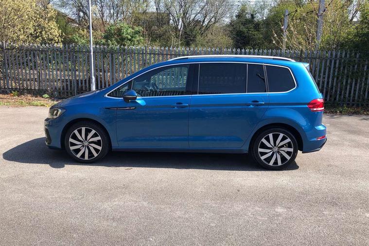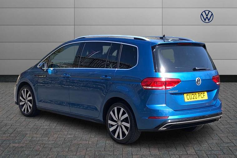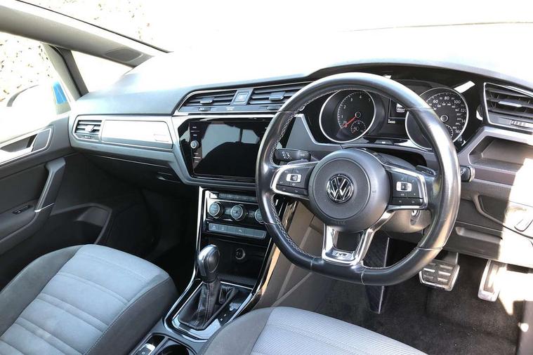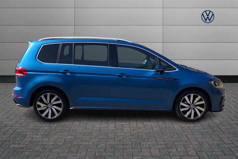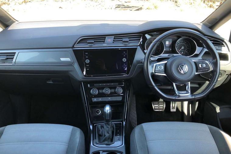 Adaptive cruise control, Audible lights on warning, Bluetooth telephone connectivity, Car information display, Driver alert system, Driver electronic voice amplification function, Electronic odometer, External temperature gauge, Flat tyre indicator, Mobile pairing with SMS function, Multi function computer, Multifunction colour display, Rev counter with fuel gauge, Speed limiter, Speed sensitive power steering, Stop/start system, Think blue trainer driver tips and journey analysis, Trip and service interval display, Petrol Particulate Filter, XDS electronic differential lock, 4x20 watt output, 8 speakers, Audio Connectivity System, DAB Digital radio, MP3/WMA compatability, Multi device interface, SD card slot, Title and cover art display, USB connection, Aerial integrated into side window, Body colour bumpers, Body colour door handles, Body colour door mirrors with integral indicators, Chrome fog light surround, Chrome lower front bumper insert, Chrome trimmed front air intake surrounds, Chrome trimmed radiator grille louvre inserts, Chrome trimmed side windows, Daytime running lights, Dusk sensor + auto driving lights, Electric folding door mirrors with reverse activated kerb-view adjustment on passenger's door mirror, Front and rear electric windows, Fully galvanised body, Gloss black finish B pillar, Green tinted heat insulating glass, High level third brake light, Range adjustable headlights, Rear tinted glass from B-pillar backwards approx 65% tinted, Rear wash/wipe with intermittent wipe setting, Silver roof rails, Tailgate wiper- reverse gear activation, Twin chrome exhaust tailpipes, Unique R Line badging, Windscreen wipers intermittent wipe, 12V power point for Row 2, 12V socket in luggage compartment, 2 individual fold flat 3rd row seats, 2 three point seatbelts in 3rd row, 2nd row centre armrest, 2nd row centre seat converts into table, 3 single slide/fold/removable 2nd row seats, 3 Zone electronic climate control with automatic air recirculation, 3x3 point seatbelts on 2nd row with height adjust on outer seats, 4 boot load lashing points, 4 way adjustable front head restraints, 4 way driver/front passenger adjustable head restraints, 5 headrests, Aluminium kick plate, Ambient lighting in door trim, Black roof lining, Driver and front passenger under seat drawer, DSG Paddle Shifts, Dust/pollen filters, Foldable front passenger seat backrest, Front + rear carpet mats, Front and rear reading lights, Front centre armrest with storage compartment, Front comfort seats with lumbar support, Front cupholders x 2, Front passenger seat height adjust, Front seat R Line logo with rear seat backrest, Front seat storage pockets, Front seatback folding tables, Front seats with R-Line logo, Grey stitching on steering wheel, Height adjustable driver's seat, Height/reach adjust steering wheel, Illuminated glovebox, Illuminated vanity mirrors, Instrument lighting white adjustable panel illumination with red night time illumination, Interior light with delay, Isofix on 3rd row seats, Large storage compartment in roof console, Leatherette on rear of front seats, Low tunnel 2nd row seat, Luggage compartment lighting, Media box in dashboard on passenger side, Multi storage in passenger/luggage areas, Multi-function centre console with storage facilities, Multifunction leather trimmed steering wheel including leather trimmed gear knob with 3.5" screen with multifunction computer, R-Line door sill protectors, Retractable luggage cover, Split folding rear seat backrests, Stainless steel pedals, Storage bins on all doors, Convenience Pack - Touran, Mirror pack - Touran, R line styling pack - Touran, 3 point height adjustable front seatbelts, Auto hold function, Automatic post collision braking system, Door open warning reflectors, Driver/Front Passenger airbags, Drivers knee airbag, EDL + ASR, Electronic parking brake, Energy recovery system, ESC with ABS, First aid kit, Front and rear (row 2) curtain airbags, Front assist including city emergency braking, Front seat side impact airbags, Front/rear disc brakes, HBA (Hydraulic Brake Assist), Hill hold control, Loose wheel warning function, Passenger airbag deactivation system, Pre crash preventive occupant protection, Seatbelt warning lamp and buzzer, Traction control, Two tone horn, Warning triangle, Alarm with remote central locking and interior protection, Electronic engine immobiliser, Black lead grey decorative inserts dash and door panel, Chrome plated instrument surrounds, Embroidered emblems to headrestraints, 18" Marseille alloy wheels with mobility tyres and anti-theft wheel bolts,