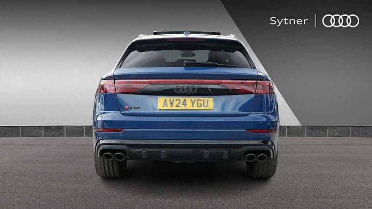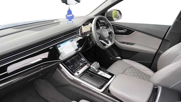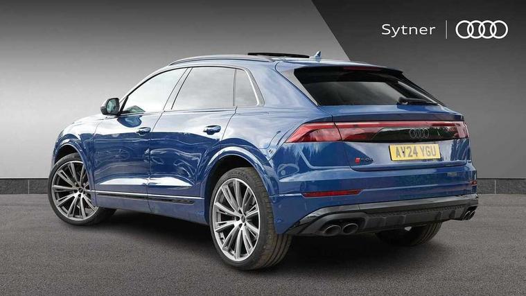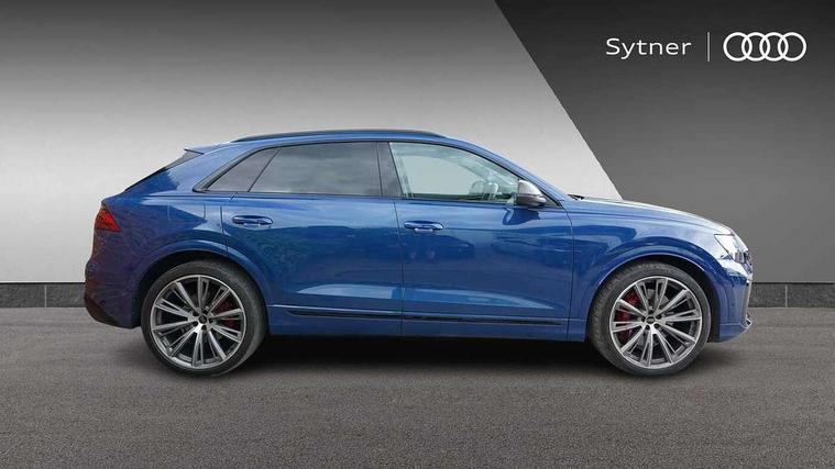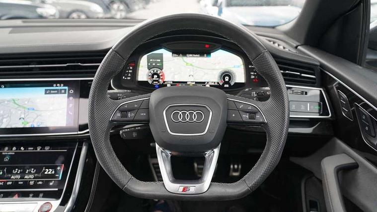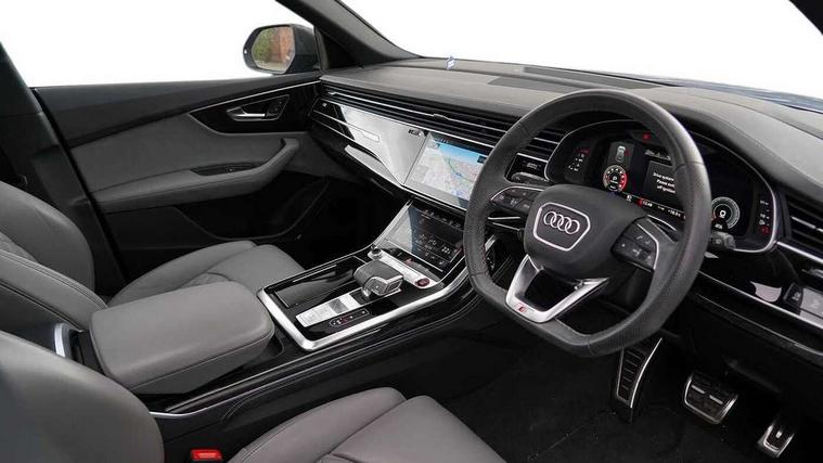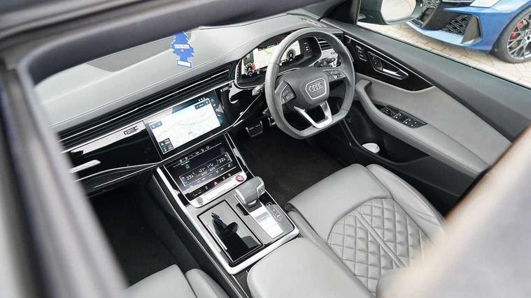 10.1" and 8.6" Dual colour touchscreens, 360 degree camera with top view, All wheel steering, Audi application store, Audi connect safety and service (e-call), Audi connect with Amazon Alexa Integration, Audi drive select, Audi phone box light with wireless charging, Audi virtual cockpit plus, Automatic start/stop system, Bluetooth, Electro-mechanical PAS, Head up Display, Low washer fluid indicator, MMI navigation plus with MMI touch, Natural voice recognition, On board computer, Operating buttons in black, glass look with haptic feedback, Park assist with parking aid plus, Power operated tailgate, Service interval indicator, Smartphone interface includes wireless Apple carplay/Android Auto, 48V Mild hybrid technology, 85 litre fuel tank, Quattro all wheel drive with self locking centre differential, S specific Adaptive air suspension, Audi music interface with 2 USB ports with charge and data functions, Aux-in socket, Bang + Olufsen sound system, DAB Digital radio, 3rd brake light, Audi beam, Auto dimming frameless rear view mirror, Coming/leaving home lighting function, Electric front+rear windows, Electrically folding auto dimming/adjustable/heated door mirrors with memory function, LED side indicators and kerb view function for passenger side, Headlight washers, Heat insulating glass in windshield, LED rear light plus, LED signature daytime running lights, Matrix LED headlights with dynamic front and rear indicators, Platinum grey front spoiler lip and diffuser insert with honeycomb grille in black, Privacy glass - dark tinted rear and rear side windows from B-pillar backwards, Rain and light sensors, Rear side wing doors, Rear wiper, S specific dual brach chrome tailpipes on both the left and right, S specific front and rear bumpers, Singleframe grille surround in matte platinum grey, 3 bench rear seats in 2nd row, 4 zone deluxe automatic climate control, 4-way lumbar support for front seats, 40:20:40 split folding rear bench seat, Black cloth headlining, Black leather instrument panel and centre console band with rock grey contrast stitching, artificial leather door armrest with contrast stitching, Comfort front centre armrest, Driver seat memory function, Electrically adjustable front seats, Front head restraints, Front/rear floor mats, Heated front seats, ISOFIX child seat mounting for front passenger seat and 2 outer rear seats with top tether child seat mounting for all 3 rear seats, Luggage compartment sill protection in stainless steel, Rear centre armrest with 2 cupholders, Rear headrests, Seat cushion displaceable by 100mm in the ratio 60:40, Single front passenger seat, Stainless steel pedals, Sunvisors with illuminated vanity mirrors, Valcona leather upholstery + front super sport seats with S embossed logo, Ambient lighting package plus - Q8, Black styling pack plus - SQ8, 3 point seatbelts on all seats, Audi pre sense front, Driver and front passenger, front side and curtain airbags, Electromechanical parking brake, Electronic Stability Control (ESC) including ABS, ASR and EDL, Front passenger airbag deactivation, Hill descent control, Hill hold assist, Predictive pedestrian protection, Seatbelt monitoring, Traction control, Tyre pressure loss indicator, Warning triangle and first aid kit, Anti theft alarm with tow away protection, Anti-theft wheel bolts and wheel loosening detection, Electronically operated child lock, Immobiliser, Keyless go with remote central locking, Polished oak trim with grey finish inlay, Tool kit, Tyre repair kit,