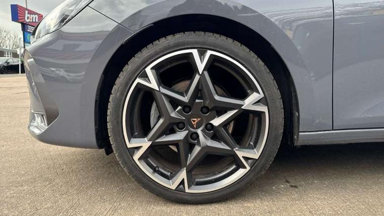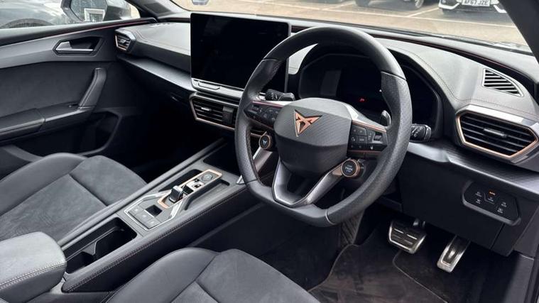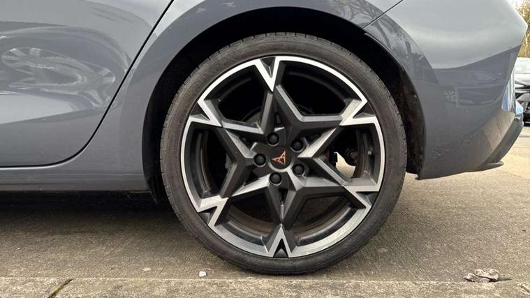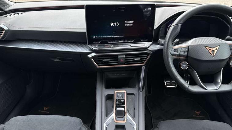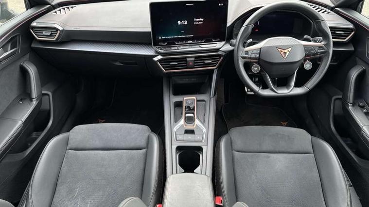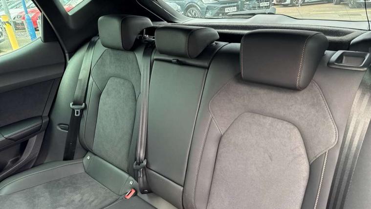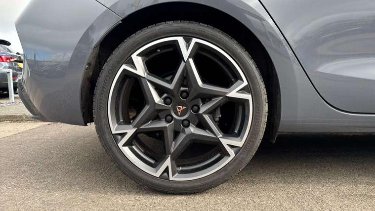 Adaptive cruise control with follow-to-stop and speed limiter, CUPRA drive profile selection with (Comfort/Sport/Individual), throttle response and gearshift mode, Digital cockpit, Dynamic road sign display, E-call, Front and rear parking sensors, Front assist with forward collision warning braking reaction to vehicles, pedestrians and cyclists, Full link smartphone integration with Mirror Link, wireless Apple CarPlay and wired Google Android Auto, Lane assist, Lockable tailgate, Rear view camera, RPM, trip computer, outside temp gauge, instrument light brightness, low fuel warning light, lights on reminder, gearshift indicator, Service interval indicator, Start/stop system with regenerative braking, Wireless phone charger, Auxiliary input socket, Auto dimming rear view mirror, Body colour door handles, Body coloured bumpers, Cupra sports bumpers, Dark tinted rear windows, Electric front/rear windows, Electrically adjustable, heated and folding door mirrors, High beam assist, LED front fog lamps with cornering function, LED headlights with dynamic turn signals, tail lights, rear fog lights with rear coast to coast lighting, LED rear fog lamp, Rain sensing wipers, Rear side wing doors, Rear wash/wipe, Separate daytime running light with automatic headlight control and coming home feature, Third brake light, Welcome light with logo projector in door mirrors, 12v power supply in centre console, 3 seat bench in 2nd row, 5 headrests, 60/40 split rear bench seat with armrest, Ambient lighting (glovebox, footwell, ambient lighting multicoloured), Black headlining, Cupra sports pedals, CUPRA Supersports, heated steering wheel with satellite buttons, Dinamica cloth upholstery, Electrically adjustable driver seat and lumbar support with memory function + manually adjustable passenger seat, Folding boot cover, Four x USB Type C ports (2 in front and 2 in rear), Front and rear reading lights X 4, Front centre armrest, Heated front seats, Height/reach adjust steering wheel, Illuminated interior front door sills, Interior wraparound lighting, ISOFIX points in outer rear seats with top tether anchorage points, Single front passenger seat, Storage pockets on rear of front seats, Sunvisors with illuminated mirror, Three zone climate control, Dynamic and comfort pack - Leon Cupra, Media system plus with 12.9" display + navigation pack - Leon Cupra, 3 point seatbelts on all rear seats, ABS, Brake control system - ESC and brake booster, Child proof door locks, Cupra black brake calipers, Driver and front passenger airbags with front passenger airbag de-activation, front side and curtain airbags, Electronic parking brake, Hill hold control, Rear disc brakes, Seat belt reminder for front and rear seats, Tiredness recognition system, Tyre pressure monitoring system, Anti theft alarm system with interior monitoring in cab, backup horn and towing protection, KESSY Advanced - Keyless start, keyless entry, Locking wheel bolts, Chrome and copper interior detailing, 19" Polar machined sport black and silver alloy wheel with 91Y tyres, Tool kit,
