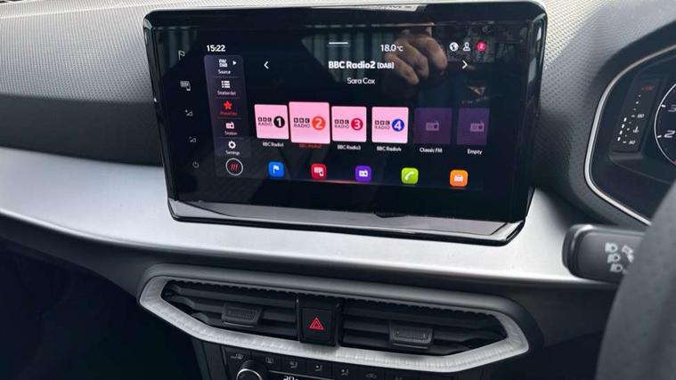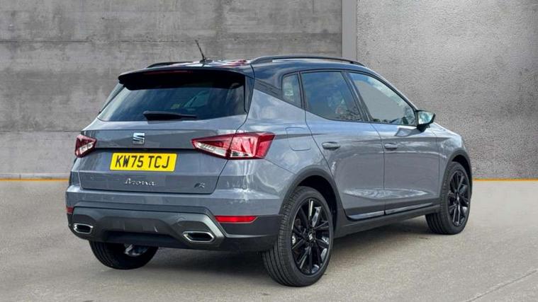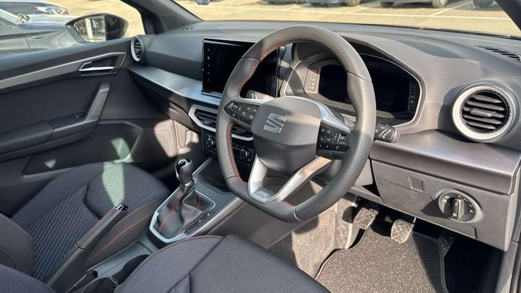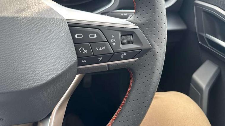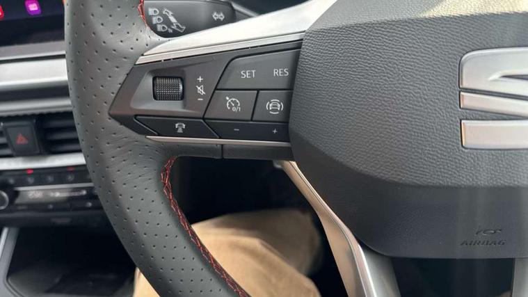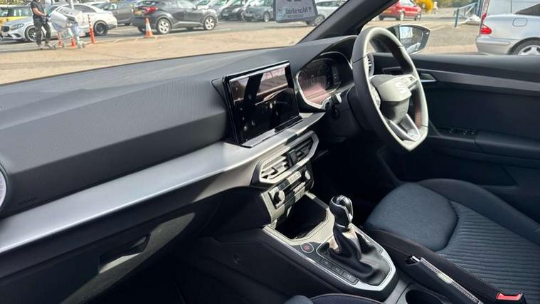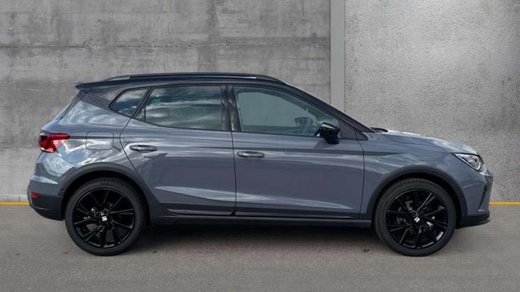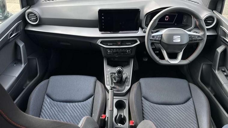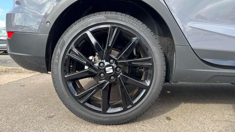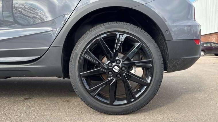'Lights On' Reminder warning buzzer, 10" Digital cockpit, Digital clock, E-call, Electric speed sensitive power steering, Full link smartphone integration with mirror link, wireless apple carplay, Google android auto + USB Type C cable for apple and android devices, Lane keeping system, Low fuel warning light, Outside temperature display, Park assist system, Rear view camera, RPM counter, SEAT Drive profile - Four different models normal-sport-eco-individual, steering response, throttle response, Trip computer, Wireless phone charger, 9.2" colour touchscreen with navigation system, voice control and USB port (type c), Bluetooth interface for hands free and audio streaming, DAB digital radio and AM/FM radio, Steering wheel mounted audio controls, Anti theft roof antenna, Auto dimming interior rear view mirror, Automatic activation of hazard warning lights, Black roof rails and window surrounds, Black side skirts, Body coloured bumpers, Body coloured door handle inserts, Dark tinted rear windows, Electric front/rear windows, Electrically adjustable, heated and folding door mirrors, Front fog lights with cornering function and rear fog light, FULL LED automatic headlights with dynamic headlight range control, coming and leaving home, LED daytime running lights, Lasered lettering on B pillar, LED rear tail lights and licence plate lights, Protective side mouldings, Rain sensing wipers, Rear side wing doors, Rear spoiler, Rear window wash/wipe, Roof colour door mirrors, Third brake light, Twin exhaust pipe styling hidden exhaust pipe, Visible VIN plate, 2 cupholders, 3 seat bench in 2nd row, 60/40 split folding rear seat, Aircare filter, Black interior roof, Double boot floor, Driver sunvisor with covered mirror + card holder, Dual zone climate control, Front courtesy light with front reading lights, Front seat back storage pockets, Gear shift indicator, Grey interior air vents, Heated front seats, Height adjustable front seats, Height/reach adjustable steering column, Illuminated air vent surrounds, Illuminated boot, Instrument lighting with brightness control, Interior ambient lighting, Interior light in footwell, central console and door panel, ISOFIX points in outer rear seats with top tether anchorage points, Microsuede cloth upholstery, Passenger sunvisor with vanity mirror, Perforated flat bottomed leather steering wheel/gear knob/handbrake with red stitching and FR logo, Potentiometer, Single front passenger seat, Sports cloth bucket seats, Two front and three rear height adjustable headrests, Interior chrome pack - Arona, Safe and driving pack (S) - Arona, Safety and driving pack (M) - Arona, ABS, Active front headrests, Child locks on rear doors, Driver and front passenger airbags with front passenger airbag de activation, front side and curtain airbags, Emergency Brake Assist (EBA) and front assist, Front and rear seatbelt reminder, Hill hold control, Multi-Collision braking, Tiredness recognition system, Traction control, Tyre pressure monitoring system, Alarm with back up horn with tow away protection, Deadlock, Electronic engine immobiliser, KESSY Keyless entry and go, Locking wheel bolts, Remote central locking, Titan black dashboard, 18" Black alloy wheels,