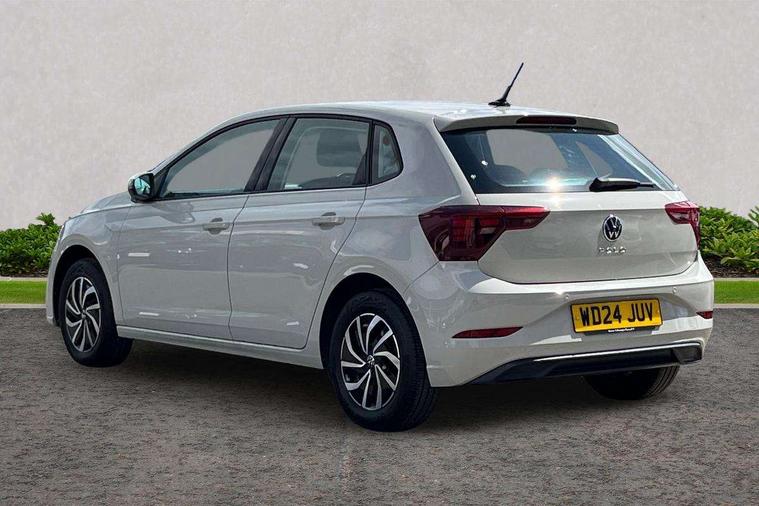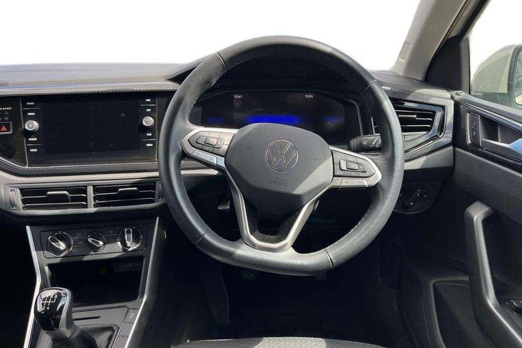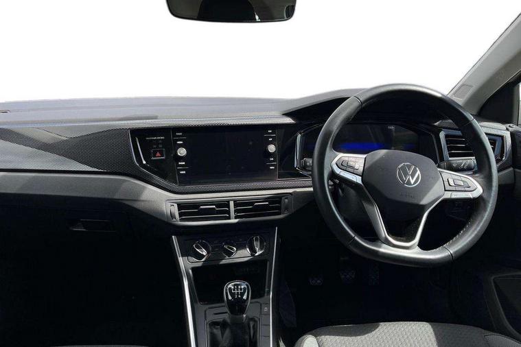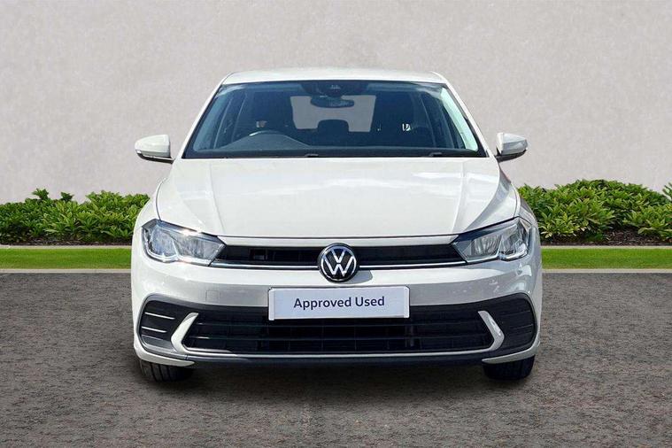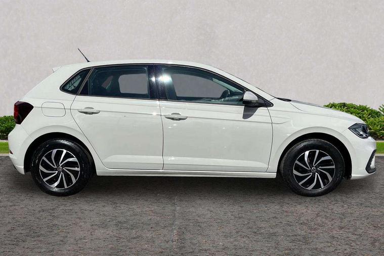 Adaptive cruise control without follow-to-stop and speed limiter, Advanced driver attention and drowsiness monitor, Bluetooth mobile phone interface, Dynamic road sign display, Emergency call service, Power assisted speed sensitive steering, Preparation for navigation system with media and internet package, Preparation for We connect and We connect plus, Speedo and rev counter, electronic odometer, trip, service interval display and exterior temperature gauge, Standard rear axle, Travel Assist - Lane keeping system and traffic jam assist, Travel assist including emergency assist, Trip computer, Warning signal and warning light for front and rear seatbelts not fastened, Washer fluid level indicator, Wireless app connect, Front wheel drive, Rear shock absorpion, Start-stop system with battery regeneration (recuperation - energy recovery during braking), DAB Digital radio, Diversity antenna for FM reception, Automatic dimming interior rear view mirror, Automatic headlight control with LED separate daytime running lights with coming/leaving home function, Body colour bumpers with chrome inserts, Body colour door handles, Body colour door mirrors, Electric front windows, Engine badge deletion, Headlight range adjustment, Heat insulating and laminated safety glass windshield, Heat insulating darkened glass in side and rear windows, Heat insulating glass windscreen, LED Headlights, LED rear combination lamps, Power folding adjustable/heated exterior mirrors and front passenger exterior mirror lowering function, Rain sensor, Rear electric windows, Rear fog light, Rear side wing doors, Rear windscreen washer and wiper with interval delay, Third brake light, 12V power socket in centre console, 2 front and 2 rear reading lights with switch off delay and dimmer, 2 USB-C ports in the front, 2 USB-C charging sockets on the center console in the rear, 3 rear head restraints, 60/40 split folding rear seat and rear seat bench not split, Ceramique roof lining, Chrome plated radiator grille inserts, air vent surrounds and light switch surrounds, Door and side trim panel, Driver and front passenger seat height adjustment, Driver/passenger sunvisors with illuminated vanity mirrors, Front centre armrest, Front seat backrest storage pockets, Front standard seats, Handbrake lever handle in leather, Hartley/Thomas cloth upholstery, Headliner in recycled material, Isofix child seat preparation easy-fit (for two outer rear seats, and front passenger seat) compatible with I-size, Leather trimmed gear knob, Luggage compartment cover, Luggage compartment lighting, Removable luggage compartment floor, Single front passenger seat, Standard climatic zones, Standard pedal cluster, Three spoke leather wrapped multifunction steering wheel, Light and vision pack - Polo, 3 point height adj front seatbelts + pretensioners, 3x3 point rear seatbelts, ABS, Driver and front passenger airbag with front passenger airbag deactivation, Drivers and front passengers safety optimised head restraints, ESC (Electronic stability control) + EDL (Electronic Differntial lock) and ASR (Traction control), Extended and predictive pedestrian/ cyclist protection, Front assist with autonomous emergency braking (for Adaptive Cruise Control ACC up to 130 mph), Front curtain and side airbags with center airbag, Front disc brakes, Hill hold control, Manual child lock in rear doors, Rear drum brakes, Single tone horn, Tyre pressure loss indicator, Alarm with interior protection, Anti-theft alarm system with interior monitoring, backup horn, and towing protection, Anti-theft wheel bolts, Electronic engine immobiliser, Lava stone black gloss/matt decorative inserts in dash and front door panels, Low rolling resistance tyres,