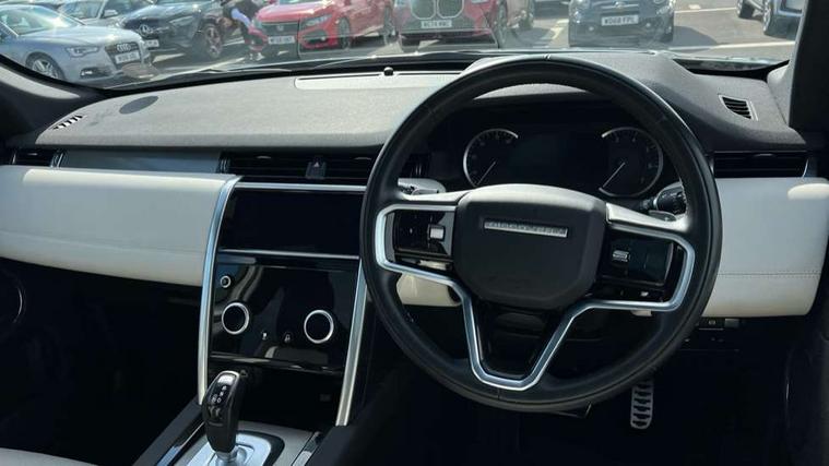 10" touch screen, Adaptive cruise control, Android Auto, Apple CarPlay, Blind spot assist, Clear exit monitor, Driver condition monitor, eCall emergency call system, Front and rear parking aid, InControl remote premium, Lane keep assist, Locking fuel flap, PAS, Pivi Pro connected navigation system with upgraded Infotainment, Powered tailgate/boot lid, Push button start, Rear collision monitor, Rear traffic monitor, Service interval indicator, Traffic sign recognition with adaptive speed limiter, Trip computer, Wade Sensing, 7 kW onboard charger, All terrain progress control, Coil suspension system, Configurable dynamics, Dynamic stability control, Home charging cable, Public charging cable, Terrain Response 2, Bluetooth connectivity including audio streaming, Digital Audio Broadcast radio-DAB, Steering wheel mounted audio controls, 3rd brake light, Automatic headlight levelling, Automatic headlights, Black number plate plinth, Electric front/rear windows, Electric heated/power fold door mirrors with approach lights and auto dimming driver side, Front and rear recovery eyes, Front fog lights, Heated rear window, Heated windscreen including heated washer jets, Illuminated metal front tread plates with R dynamic branding, P300e badge, Privacy glass, R Dynamic badge, Rain sensing windscreen wipers, Rear fog lights, Rear side wing doors, Rear wing door, Rear wiper, 5 standard seating configuration, Bright metal pedals, Centre console with armrest, Configurable cabin lighting, Electrically adjustable steering column with memory, Footwell lights, Front and rear grab handles, Front passenger isofix child seat attachment, Heated steering wheel, Loadspace cover, Loadspace light, Overhead lighting console, Overhead stowage for sunglasses, Rear headrests, Satin chrome gearshift paddles, Sunvisors with illuminated vanity mirrors, Tilt/reach adjustable steering wheel, Black exterior pack - Discovery sport R-Dynamic SE/HSE, Online pack with data plan - Discovery, 3 point seatbelts on all seats, ABS, Brake hold function, Child locks on rear doors, Collision mitigation braking system, Cornering brake control (CBC), Driver/Front Passenger airbags, Drivers knee airbag, Electronic brake force distribution, Electronic parking brake, Emergency brake assist, ESP + traction control, Hill descent control, Hill launch assist, Pedestrian airbag system, Rear seat ISOFIX, Roll stability control, Side and curtain airbags for front and 2nd row seats, Trailer stability control, Tyre pressure monitoring system, Battery Back Up System (BBUS) with tilt sensor, Global lock and unlock switch on driver door, Intrusion sensor, Keyless entry, Locking wheel nuts, Centre stack rails in noble chrome,