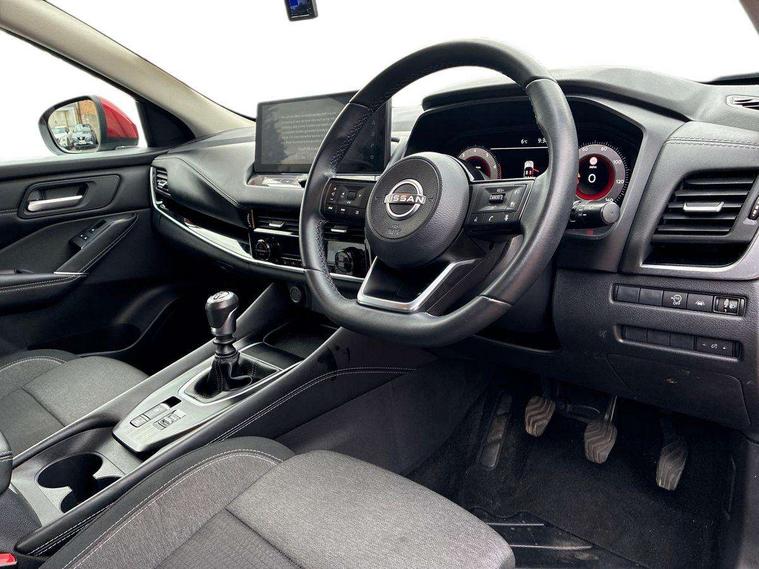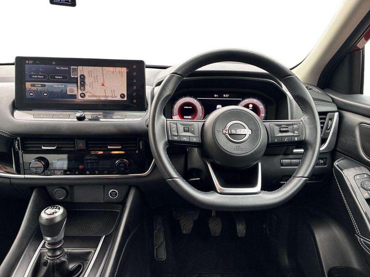 Android auto/Apple CarPlay (Wired), Blind spot warning, Drive modes (sport, normal, eco), Electric speed sensitive power steering, Emergency and breakdown call, Front and rear parking sensors, Full Digital 12.3" TFT Digital Combimeter, Google maps services - search, weather, 3D maps and Google street view, Idle stop/start system, Intelligent around view monitor, Intelligent Cruise control (ICC), Intelligent driver alert system, Intelligent forward collision warning, Intelligent lane intervention, Lane departure prevention, Lane departure warning system, Maximum speed limiter, Moving object detection, Nissan connect 12.3 inch touchscreen infotainment system, Nissan connect navigation, Push button starter, Rear cross traffic alert, Rear view camera, Remote control services - door locks, lights, horn and car locator, Telematics - notifications and connectivity services, TomTom live traffic services, Traffic sign recognition with legal speed adjustment, Trip computer, Virtual personal assistant and firmware over the air capability, Wireless apple carplay, 6 speakers, AM/FM audio system with DAB, Bluetooth audio streaming, Front USB connections (Type-A and Type-C), Rear USB charging only ports (Type-A and Type-C), Auto dimming rear view mirror, Auto rear wiper when reversing, Automatic hazard signal with emergency stop signal, Body colour mirror caps, Body coloured door handles, Bodyside mouldings, Chrome side window finisher, Door handle with button, Electric auto folding door mirrors, Electrically adjustable and heated door mirrors with LED turn indicator, Follow me home headlights, High beam assist, Intelligent auto headlights, LED daytime running lights, LED Headlights, LED rear lights, One touch front and rear electric windows with remote opening and closing, Partially body coloured bumpers, Privacy glass, Rear bumper with graphite insert, Rear reversing light (bulb lighting), Rear roof spoiler, Rear side wing doors, Rear styling plate, Shark fin antenna, Splash free rain sensing wipers, Super UV and infrared cut glass, Three blink turn signal, 12v power socket in dashboard and luggage, 2x Rear coat hooks, 3 bench rear seats in 2nd row, 3 rear headrests, 4 folding assist grip, 6 Luggage hooks - 4 on floor, 2 on side, 6-way manually adjustable driver's seat, 60/40 split folding rear seat bench, Ambient lighting around centre console, Centre console storage tray, Chrome interior door handles, Cloth monoform upholstery, Driver and front passenger sunvisors with illuminated vanity mirrors, Driver seat back pocket, Dual zone automatic climate control with pollen filter, Electrically adjustable lumbar support for driver, Front and rear door storage, Front centre console and armrest, Front cupholders x 2, Front door with bottle holders, Glovebox with light, Hard trunk cover, Height adjustable driver's seat, Height adjustable front headrests, Height adjustable passenger seat, Leather shift knob, Leather steering wheel, Luggage board system, Luggage space lighting, Manually adjustable passenger (slide recline + lifter), Multifunction steering wheel, Passenger seat back pocket, Rear armrest with 2 cupholders, Rear door bottle holders, Single front passenger seat, Soft PVC kneepad, Steering wheel switches, Sunglasses holder, Tilt/telescopic adjustable steering wheel, Two rear isofix child seat anchorage points with top tether, Welcome light and console tray ambient lighting, 3x3 point rear seatbelt pretensioners + load limiters, ABS with EBD and brake assist, Active brake limited slip, Auto hold function, Child locks on rear doors, Curtain and front side, far side airbags, Driver and passenger airbags, Driver, passenger and 2nd row rear seat belt reminder, Electronic parking brake, Front seatbelt pretensioners + load limiters, Height adjustable front seatbelts, Hill start assist, Intelligent blind spot intervention, Intelligent front emergency braking with pedestrian, cyclist recognition and junction assist, Intelligent rear automatic braking, Tyre pressure monitoring system, Vehicle dynamic control, Capless fuel filler, Engine immobiliser, Intelligent Key, Remote central door locking with deadlocking, Thatcham Cat.1 alarm, Interior instrumental panel B finisher, 18" Diamond cut alloy wheels, Tyre puncture repair kit,