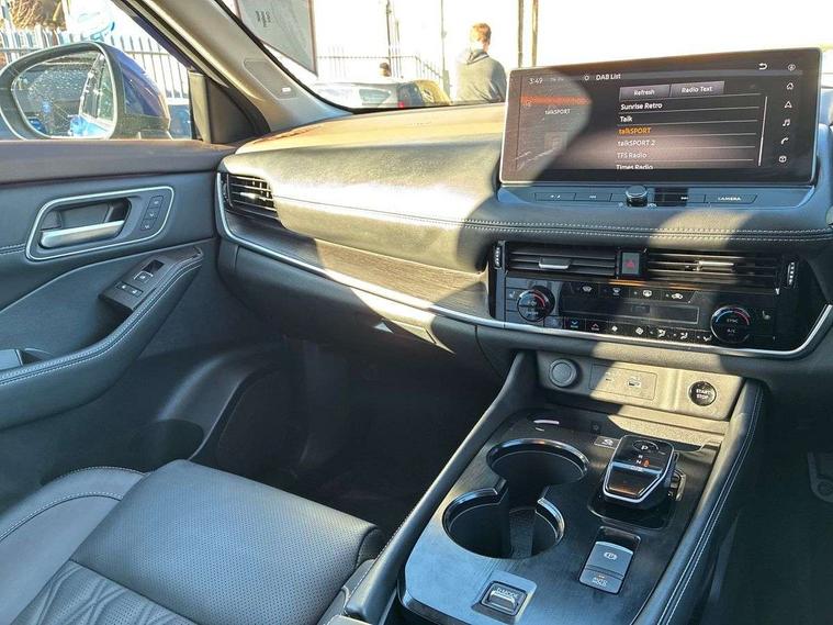 Advanced 10.8" head up display, Android auto/Apple CarPlay (Wired), Blind spot warning, Drive modes (sport, normal, eco), e-Pedal step, Electric speed sensitive power steering, Emergency and breakdown call, Front and rear parking sensors, Full Digital 12.3" TFT Digital Combimeter, Google maps services - search, weather, 3D maps and Google street view, Hands free power tailgate, Idle stop/start system, Intelligent around view monitor, Intelligent driver alert system, Intelligent forward collision warning, Intelligent lane departure warning, Intelligent lane intervention, Intelligent lane keep assist, Lane departure prevention, Maximum speed limiter, Moving object detection, Nissan connect 12.3 inch touchscreen infotainment system, Nissan connect nav with TomTom traffic, Pro pilot and head up display, ProPilot park, Push button starter, Rear cross traffic alert, Rear view camera, Remote control services - door locks, lights, horn and car locator, Telematics - notifications and connectivity services, TomTom live traffic services, Traffic jam pilot, Traffic sign recognition with legal speed adjustment, Trip computer, Virtual personal assistant and firmware over the air capability, Wireless apple carplay, Wireless charging pad, AM/FM audio system with DAB, Bluetooth audio streaming, Bose premium acoustimass bass box with digital amplifier, Bose premium sound system with 10 speakers, Digital amplifier, Front USB connections (Type-A and Type-C), Rear USB charging only ports (Type-A and Type-C), 3rd brake light, Auto dimming rear view mirror, Auto rear wiper when reversing, Body colour mirror caps, Body coloured door handles, Bodyside mouldings, Chrome side window finisher, e-POWER badging, Electric auto folding door mirrors, Electrically adjustable and heated door mirrors, Follow me home headlights, Headlights auto levelling system, High beam assist, Intelligent auto headlights, LED daytime running lights, LED front fog lights, LED headlights with adaptive driving beam, LED rear lights, Memory function for door mirrors, One touch front and rear electric windows with remote opening and closing, Partially body coloured bumpers, Rain sensing wipers, Rear privacy glass, Rear reversing light (bulb lighting), Rear roof spoiler, Rear side wing doors, Rear styling plate, Reverse tilting door mirrors, Shark fin antenna, Splash free wipers, Super UV and infrared cut glass, Thermaclear heated windscreen, Three blink turn signal, 12v power socket in dashboard and luggage, 3 bench rear seats in 2nd row, 3 rear headrests, Butteryfly console, Chrome interior door handles, Dark headlining, Driver and front passenger sunvisors with illuminated vanity mirrors, Driver seat back pocket, Electric adjustable 2 way lumbar support for driver, Electrically adjustable driver seat with massage and memory functions, Electrically adjustable passenger seat with massage and memory functions, Front and rear heated seats, Front centre console and armrest, Front cupholders, Front door with bottle holders, Heated steering wheel, Height adjustable driver's seat, Height adjustable front headrests, Height adjustable passenger seat, Leather shift knob, Leather steering wheel, Luggage board system, Luggage space lighting, Multifunction steering wheel, Passenger seat back pocket, Quilted premium leather upholstery, Rear armrest with 2 cupholders, Rear door bottle holders, Single front passenger seat, Sliding second row seats, Split folding 2nd row - 40/20/40, Steering column mounted gear shift paddles, Tilt/telescopic adjustable steering wheel, Tri zone automatic climate control with pollen filter, Two rear isofix child seat anchorage points with top tether, Sky pack - X-Trail, 3x3 point rear seatbelt pretensioners + load limiters, ABS with EBD and brake assist, Active brake limited slip, Auto hold function, Child locks on rear doors, Curtain and front side, far side airbags, Driver and passenger airbags, Driver, passenger and 2nd row rear seat belt reminder, Electronic parking brake, Front seatbelt pretensioners + load limiters, Height adjustable front seatbelts, Hill start assist, Intelligent blind spot intervention, Intelligent front emergency braking with pedestrian, cyclist recognition and junction assist, Intelligent rear automatic braking, Tyre pressure monitoring system, Vehicle dynamic control, Advance intelligent key with driver memory storage (seats, mirrors, audio), Engine immobiliser, Remote central door locking with deadlocking, Thatcham Cat.1 alarm, 20" Diamond cut alloy wheels, Tyre puncture repair kit,
