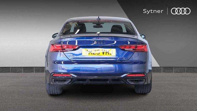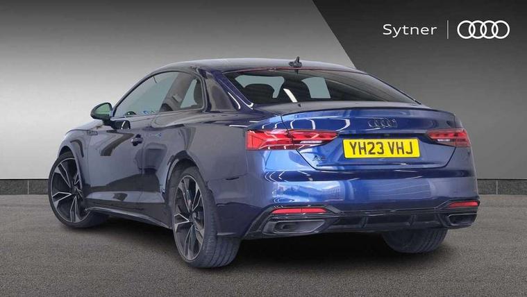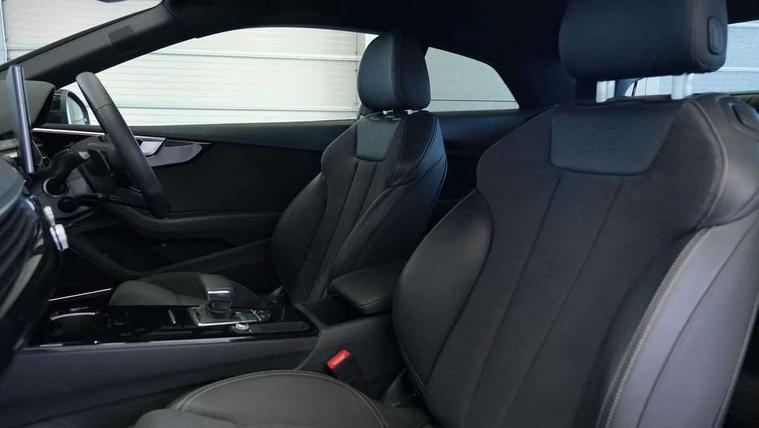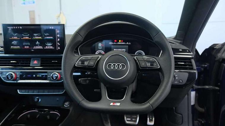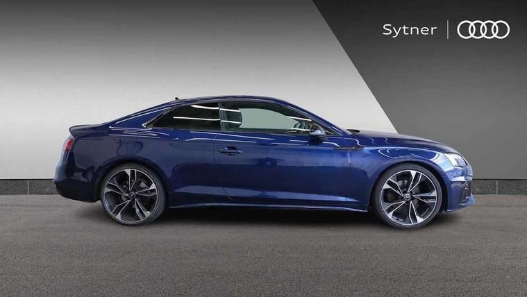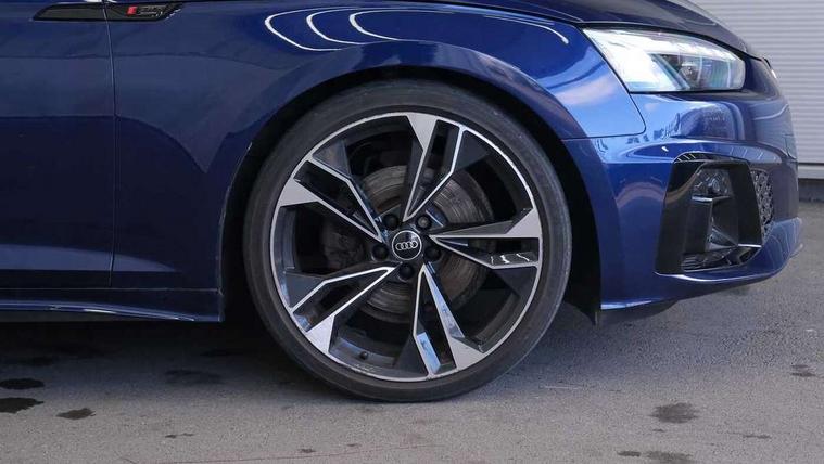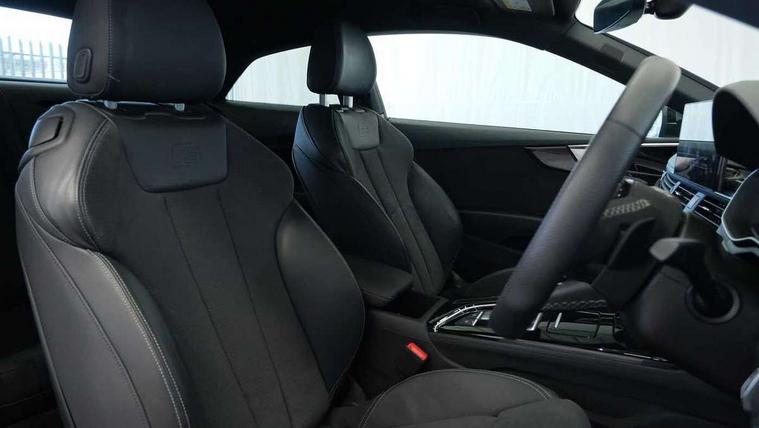 Audi connect safety and service (e-call), Audi connect with Amazon Alexa Integration, Audi drive select (Auto, Comfort, Dynamic and Individual), Audi parking system plus with front and rear sensors, Audi smartphone interface, Audi virtual cockpit - 12.3" full colour digital instrument cluster, vehicle/engine speed, Radio/media information+Driver assistance systems, Automatic start-stop system with coasting functionality and efficiency programme, Bluetooth interface, Electric boot lid release, Electro-mechanical power steering, Email, calendar and text messages displayed via MMI, MMI nav+ with MMI touch - 10.1" high resolution MMI display, touch sensitive, 3D map, route/country info, dynamic route guide, personal route assist, Rear view camera, Service interval indicator, Voice control system, Sports suspension lowered by 23mm, 8 passive loudspeakers, CD player, DAB digital radio reception, Two additional USB ports for rear passenger in rear centre console, Two SDXC card slots, Audi Beam uses LEDs to project the Audi logo, Audi matrix LED headlights with LED rear lights + dynamic front and rear indicators, Auto dimming door mirrors, Auto dimming rear view mirror, Black door mirror housings, Body colour door handles, Body colour front spoiler lip, Body colour side sill trim, Electric adjustable heated door mirrors, Electric folding door mirrors, Electric front windows, Exhaust tailpipe trims in dark chrome, Front and rear bumpers with side skirts, Front fog lights, Honeycomb structure radiator grille in grained matt black, Kerb-view function for passenger side, LED daytime running lights, LED side indicator lights integrated into door mirrors, LED third brake light, Privacy glass, Rain and light sensors, Rear boot, Rear diffuser in matt anthracite black with trim strip in matt aluminium silver, Rear side wing doors, S model rear spoiler in black, Side air inlets in grained matt black with matt aluminium silver inlay, Variable front intermittent wipers, Windscreen with acoustic glazing, 2 seat bench in 2nd row, 4 way electric lumbar support for driver and front passenger, 40/20/40 split folding 2 seater rear seat bench with rear centre armrest, Adjustable steering column, Black cloth headlining, Black perforated leather gearknob, Contrast stitching on seats, steering wheel and gear lever gaiter, Deluxe 3 zone electronic climate control, Front centre armrest, Front head restraints, Front/rear floor mats, Heated front seats, Illuminated door sill trim with S logo, ISOFIX child seat mounting and top tether, Luggage compartment mat, Manual seat adjustment, Rear headrests, Single front passenger seat, Stainless steel pedals, Sunvisors with vanity mirrors, Black styling pack - A5 Coupe/Sportback, LED interior light pack - A5/RS5, 2 x 3-point rear seatbelts, 6 airbags - Driver, front passenger, curtain and side airbags, Electromechanical parking brake, Electronic Stabilisation Control (ESC) including ABS, ASR and EDL, Front passenger airbag deactivation, Height adjustable front seatbelts, Hill hold assist, Multi collision brake assist, Pop-up bonnet for pedestrian protection, Pre sense city, Seatbelt monitoring, Tyre pressure warning, Variable restraint system, Warning triangle and first aid kit, Anti theft alarm system, Anti theft wheel bolts, Immobiliser, Keyless Go, Remote central locking, Piano black finish inlay, 20" 5 twin spoke polygon design alloy wheels in gloss anthracite black and gloss turned finish, Tool kit, Tyre repair kit,