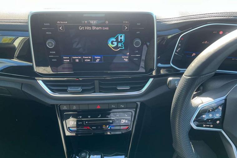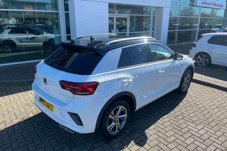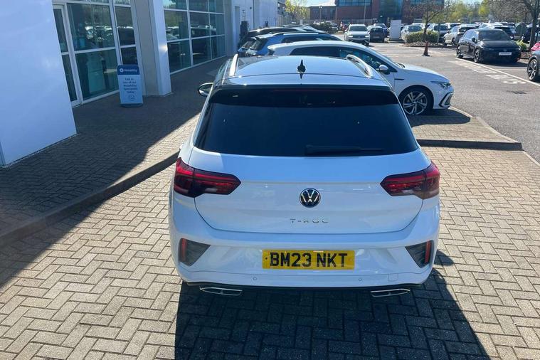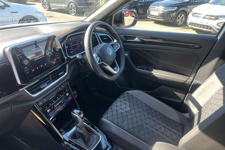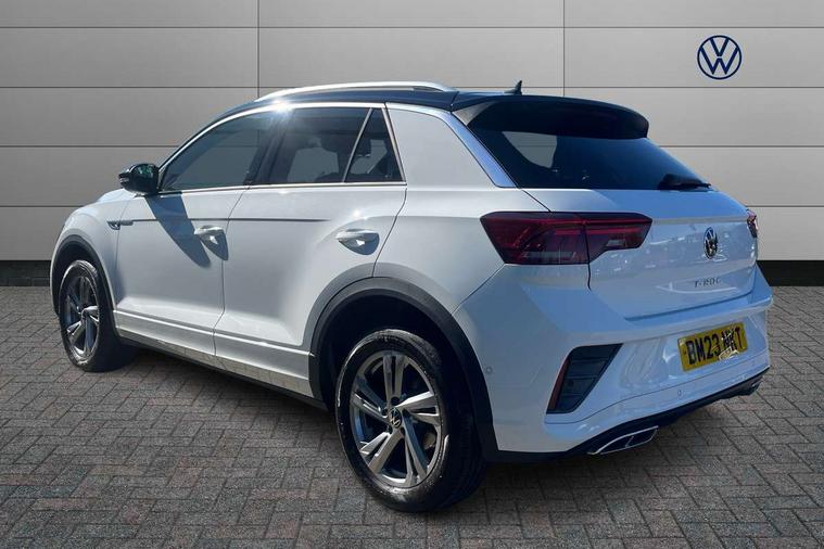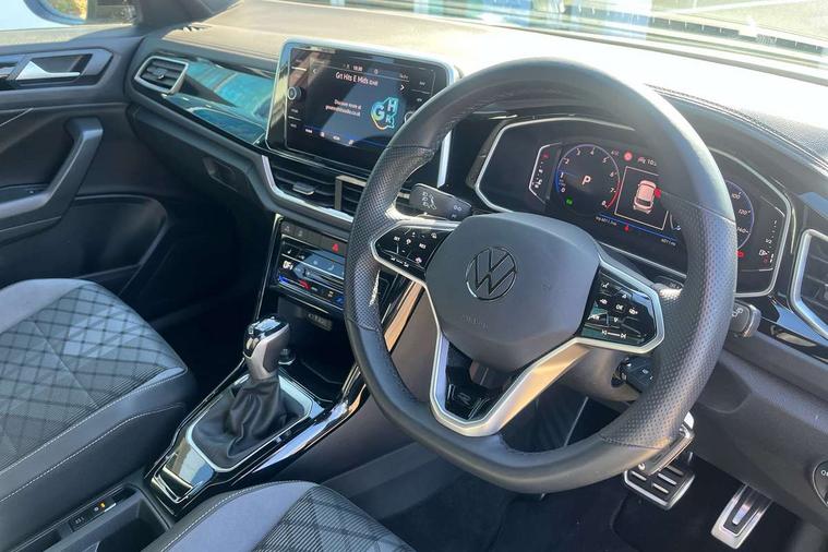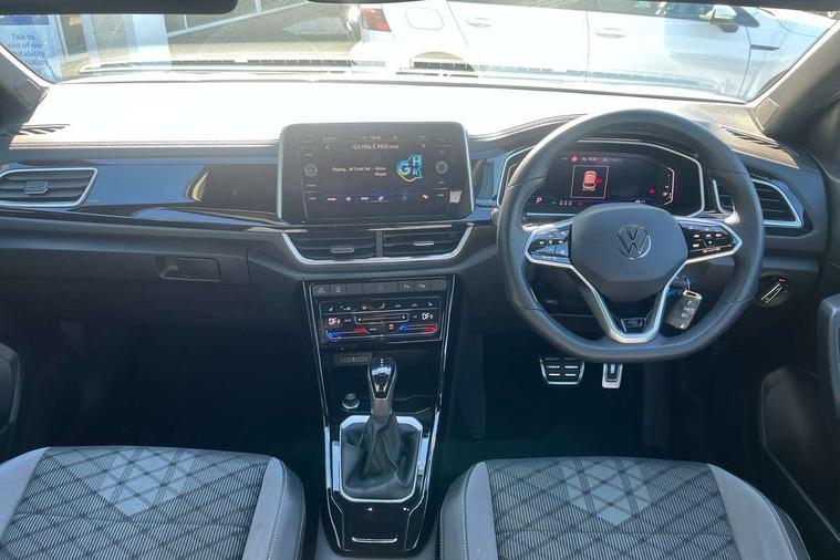 10.25" Digital cockpit pro, Bluetooth mobile phone interface, Driver alert system with fatigue detection, Driver tips and journey analysis, Emergency call service, Lane keeping system Lane Assist, Modified key software - reduce switch off time for key status change to Long no motion, Online services, Park assist including front and rear parking sensors, Service interval indicator, Tailgate/trunk lid release from outside, Think blue trainer driver tips and journey analysis, Warning sound and light for front seatbelts unfastened, Wireless app connect, Battery regeneration during braking, Start/stop function with battery regeneration, Diversity antenna for FM reception, Front and rear 6 speakers, Music playback - MP3, WMA and AAC files, Premium USB cable in choice of either Apple or Android smartphone compatibility, SD card slot, Simultaneous pairing of 2 compatible mobile devices, Title and cover art display, We Connect and We Connect Plus functionality, 3rd brake light, Auto dimming interior rear view mirror, Automatic hazard lights activation under emergency braking, Automatic headlight control with LED separate daytime running lights with coming/leaving home function, Extended roof spoiler, Exterior mirrors aspherical on driver side, convex on front passenger side, External USB type C socket and charging sockets, Front windscreen wiper with intermittent wipe and 4 position delay, Heated rear window, LED Plus headlamps, LED rear combination lamps, LED rear number plate lights, LED tail lamp rear comination lamps, Power windows with comfort operation and circuit breaker, R-Line design body coloured bumpers, Rain sensor, Rear exhaust tailpipe, Rear fog light on one side and reversing lights on both sides, Rear side wing doors, Rear wash/wipe with intermittent wipe setting, Remote electrically foldable door mirrors, puddle lights and reverse activated passenger's door mirror, 12V power socket in centre console, 3 rear head restraints, 3 seat bench in 2nd row, 4 load lashing points in luggage compartment, Air care climatronic air conditoning system with active combination filter and 2-zone temperature control, Black roof lining, Chrome plated radiator grille inserts, air vent surrounds and light switch surrounds, Door and side trim panel with leatherette insert, Drawer under drivers seat, Front + rear carpet mats, Front centre armrest, Front cupholders x 2, Front footwell illumination, Front reading light, Front scuff plates with R logo, Instrument lighting, white adjustable panel illumination, Interior ambient lighting and surround lighting, Interior light delay, Isofix child seat preparation, Leather gearshift handle, Load-through provision with cup holder when folded down ('Unsplit rear seat bench, split folding backrest, with centre armrest), Luggage compartment lighting, Single front passenger seat, Stainless steel pedals, Storage compartment in left and right luggage area, Storage compartment in rear doors, Storage compartments in driver and front passenger doors, Sunvisors with illuminated vanity mirrors, Variable boot floor, height adjustable and removable, Driver assistance pack without proactive passenger protection - T-Roc, 3 point height adj front seatbelts + pretensioners, 3 point seatbelts in outer rear with ECE label, ABS, Child locks on rear doors, Driver and front passenger airbag with front passenger airbag deactivation, Driver and front passenger safety-optimised head restraints, Drivers seatbelt reminder, Electronic parking brake, Electronic Stability Control (ESC) inc EDL (Electronic Differential Lock) and ASR (Traction Control), Front and rear passengers curtain airbag system including front side airbags, Front assist with city emergency braking and pedestrian monitoring, Front seat side impact airbags, Hill start assist, Predictive pedestrian protection, Rear disc brakes, Single tone horn, Tyre pressure loss indicator, Volkswagen roadside assistance, Alarm with interior protection, Anti-theft alarm system with interior monitoring, backup horn, and towing protection, Remote central locking with SAFELOCK, radio remote control with 2 remote control folding keys, Trims for alloy wheels,