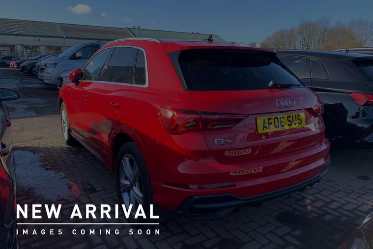Amazon alexa Integration, Audi drive select, Audi lane departure warning, Audi Virtual Cockpit - 10.25" display, Bluetooth interface, Camera based traffic sign recognition, Cruise control + speed limiter, Legal emergency call, MMI Navigation Plus with high resolution 10.1 inch touchscreen colour display, Power operated tailgate, Progressive steering, Rear parking sensors, Service interval indicator, Smartphone interface includes wireless Apple carplay/Android Auto, Start stop system with recuperation, Voice control system with natural language interaction, Sports suspension, 2 USB-C ports with charge and data functions, 6 passive loudspeakers, DAB digital radio module, Acoustic windscreen, Aluminium roof rails, Aluminium window trim, Anthracite black radiator grille, Auto dimming frameless rear view mirror, Body colour front spoiler blade, Body coloured bumpers, Electrically folding, adjustable and heated door mirrors with integrated LED side indicators and kerb view function for passenger side, Front and rear electric windows, Front fog lights, Front side air inlets in matt platinum grey, Grille vertical bars in aluminium silver/Matt, High gloss black finish B and C pillars, LED Dynamic rear indicators, LED headlights with LED daytime running lights, LED rear lights, LED third brake light, Privacy glass dark tinted rear and rear-side windows (from B-pillar backwards), Rain and light sensors, Rear diffuser grille in grained matt black, Rear diffuser strip in matt anthracite black, Rear side wing doors, Rear wiper, S line badges on front wings, S Line front and rear bumpers, Side skirt insert in matt Platinium grey, Variable front intermittent wipers, 12V socket in rear centre console, 3 seat bench in 2nd row, 3 spoke leather multifunction steering wheel features S badging and grips in perforated leather with contrast stitching, 40:20:40 folding with manual adjustment for 60:40 forwards/backwards position and backrest angle, Adjustable rear seat bench/backrest with centre armrest and cupholder, Black cloth headlining, Dual zone electronic climate control, Front and rear black floor mats with contrast stitching in rock grey, Front and rear headrests, Front and rear roof module including reading lights, Front centre armrest, Glove compartment lighting, Height and reach adjustable steering wheel, Illuminated door sill trims with S logo, ISOFIX child seat mounting for front passenger with airbag deactivation and outer rear seat including top tether attachment point for outer rear seats, Luggage compartment light, Manual front seats with height adjustment, Perforated leather gearknob, Single front passenger seat, Stainless steel luggage compartment sill finisher, Stainless steel pedals, Ambient lighting pack - Q3, Non smoking pack - Q3, 3x3 point rear seatbelts, 6 airbags - Driver, front passenger, curtain and side windows, Audi pre-sense front with pedestrain and cyclist recognition, Electrically operated child locks on rear doors, Electromechanical parking brake, Electronic stabilisation control including ABS, ASR and EDL, Front seatbelt reminder, Hill descent control, Hill hold assist, Pre sense basic, Seatbelt monitoring, Tyre pressure warning, Warning triangle and first aid kit, Anti theft alarm, Anti theft wheel bolts, Immobiliser, Remote central locking, Aluminium look interior elements, Dark matt brushed aluminium inlay, Detail dashboard around MMI touch colour display in glass look, black with surround in aluminium look, Leatherette door armrest,