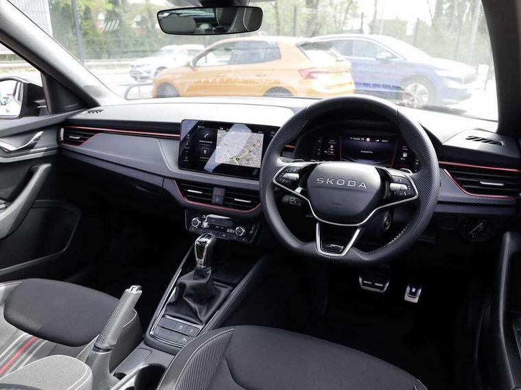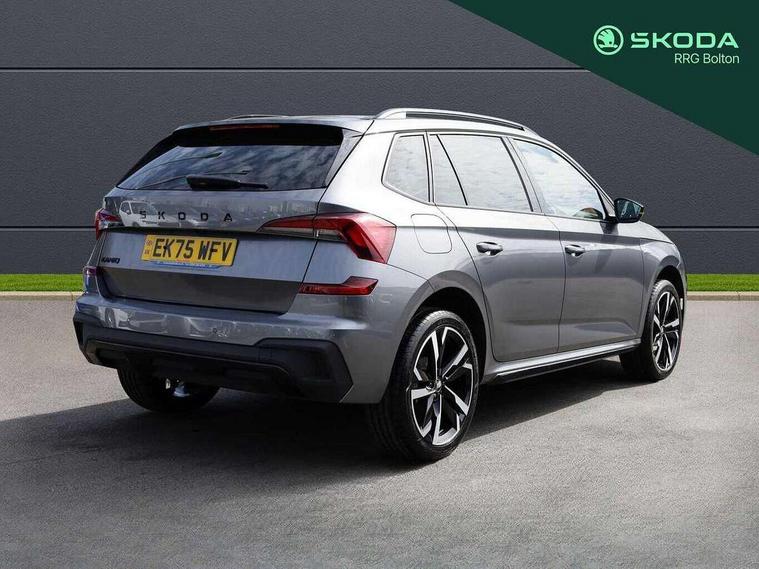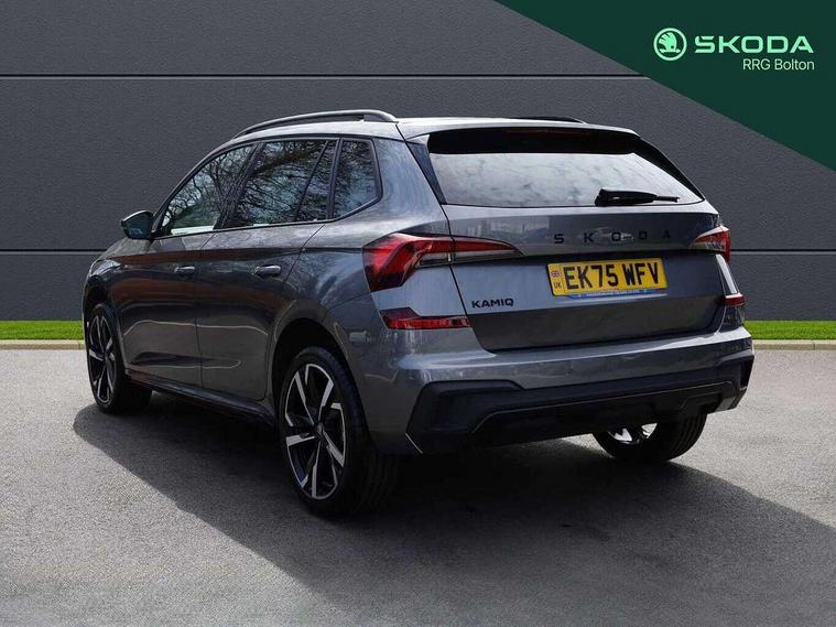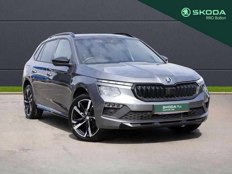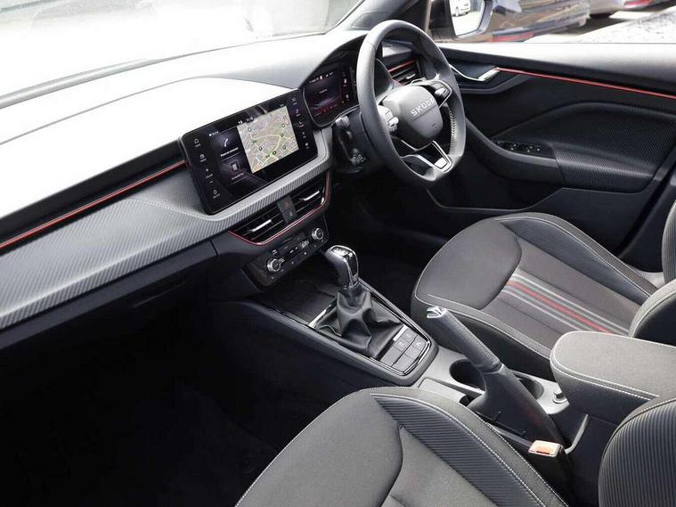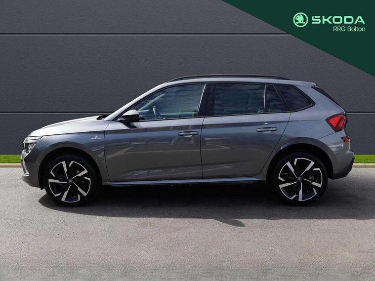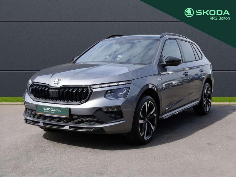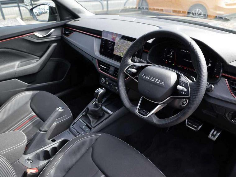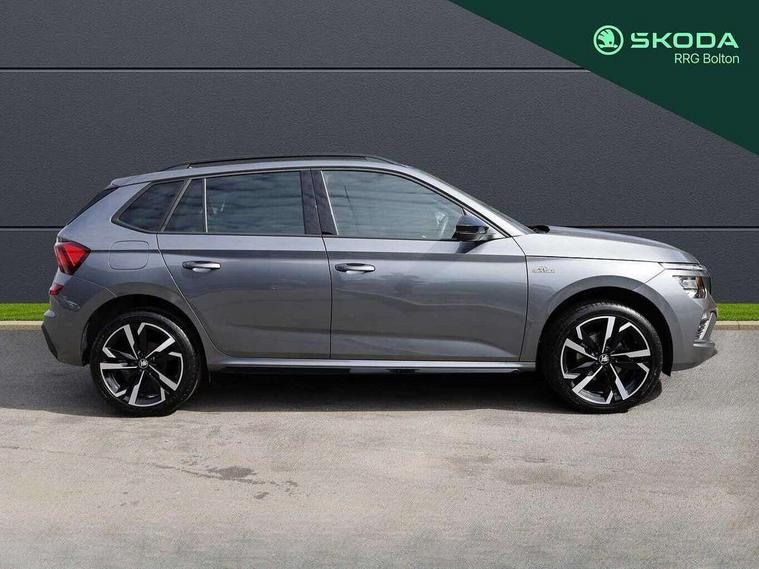 Advanced driver attention and drowsiness monitor, Bluetooth system, E-call, Front assist system, PAS, Rear parking sensors, Rear view camera, Service indicator, Speed limiter, Traffic sign recognition, Virtual cockpit with 10.25" display, Voice control system, Wireless smartlink, 4 USB C ports, 8 Speakers, 9.2" Skoda navigation display, DAB Digital radio, Auto dimming rear view mirror, Automatic headlight control with coming home and leaving home feature, Black door mirrors, Black radiator grille, Black rear diffuser, Black roof spoiler, Body colour bumpers, Body colour door handles, Boot lettering in black, Extended tailgate glass, Fixed panoramic sunroof with black roof rails, Front and rear electric windows, Heated rear window, LED daytime running lights, LED high beam, LED low beam, LED third brake light, Light sensors, Monte carlo plaque, Privacy glass, Rear side wing doors, Rear wiper, Ticket holder inside windscreen, 12V socket in luggage compartment, 3 seat bench in 2nd row, Aluminium pedals, Ambient lighting in white/red, Art leather carbon decor inserts, Art leather carbon door inserts, Black roof lining, Cargo elements, Chrome inner door handles, Driver and passenger sun visors with vanity mirror, Dual zone climate control, Front and rear roof lights, Front centre armrest, Front head restraints, Glove compartment with illumination, Height adjustable driver seat, Height adjustable front passenger seat, Ice scraper, Inner circulation control with pollen filter, ISOFIX on front passenger seat, Isofix preparation for back seats, Leather gearknob and handbrake lever, Manual lumbar support for front seats, Monte Carlo cloth upholstery, Net package and top tether hooks in boot space, Net under rear shelf, Pocket on the back of both front seats include mobile phone pockets, Rake/reach adjustable steering wheel, Reading lights, Rear centre armrests, Red hotstamping, Single front passenger seat, Sports seats, Textile floor mats, Third rear headrest, Top tether for front passenger seat, Umbrella in driver's door, Light and view plus package - Kamiq, 3x3 point rear seatbelts, Airbags - driver and front passenger, Disc brakes, ESP, Extended and predictive pedestrian/cyclist protection, Front passenger airbag deactivation switch, Front side airbags with curtain airbags, Hill hold control, Manual leather parking brake, Manual rear child locks, One tone horn, Seatbelt reminder for driver an co-driver, Traction control, Tyre pressure monitor, Anti-theft alarm system with interior monitoring, backup horn, towing protection and remote central locking with SAFE system, Anti-theft wheel bolts, Electronic engine immobilizer, 18" Ursa black diamond cut alloy wheels,
