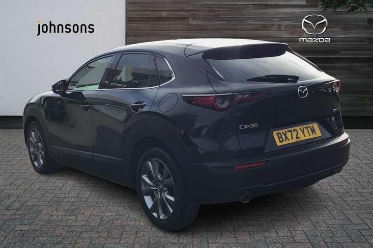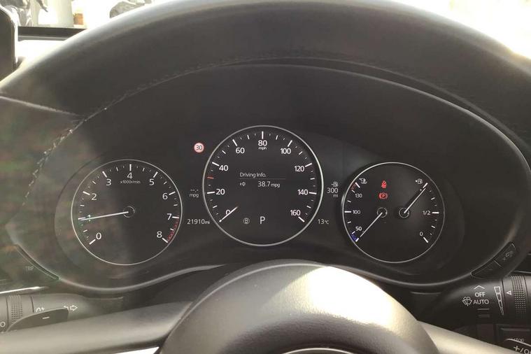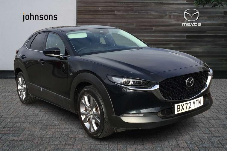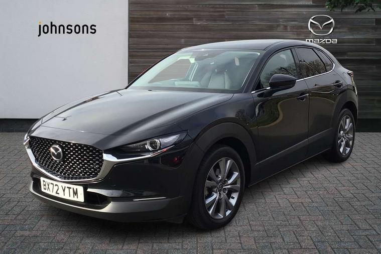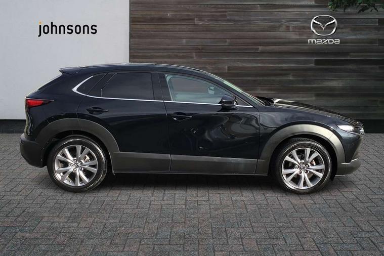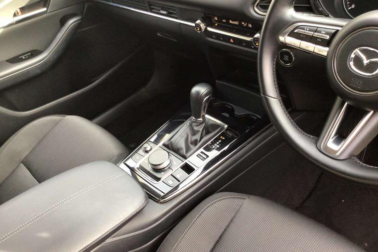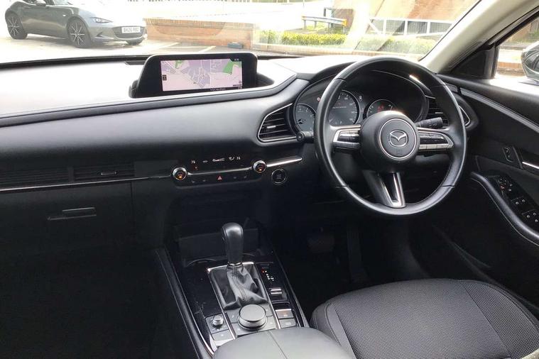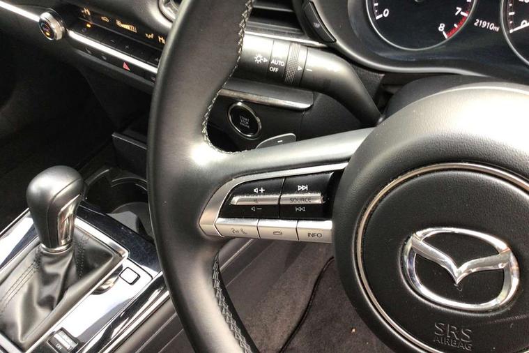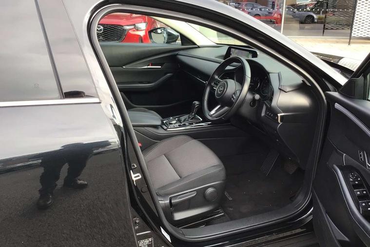 7" TFT Colour driver instrument panel display, 8.8" Colour centre touch screen display with Mazda Connect infotainment, Adaptive cruise control (Mazda radar cruise control) features stop and go, Apple car play/Android Auto, Blind spot monitoring with rear cross traffic alert, Drive mode selector, Driver attention alert system, E-call with GPS, Emergency stop signalling system, Engine start/stop button, Front and rear parking sensors, Integrated bluetooth, Integrated Mazda navigation system, Intelligent speed assist, Lane keep assist system (LAS) with Lane departure warning system (LDWS), Mazda connected services, PAS, Power lift gate, Reversing camera, Service indicator, Tailgate, Traffic sign recognition, Trip computer, Windscreen projected colour active driving display (HUD), Cylinder Deactivation, i-stop, 2 USB charging ports in front inner central armrest, AM / FM / DAB radio with 8 speakers, Multimedia Commander including separate volume dial, Steering wheel mounted audio/bluetooth controls, Adaptive LED Headlights, Auto dimming driver's door mirror, Auto headlight levelling, B-pillar and C-pillar garnishes in piano black finish, Body coloured, electrically adjustable, heated auto power folding door mirrors with integrated indicators, Chrome finish signature wing in front grille, Coming/leaving home lighting function, Dual chrome exhaust, Dusk sensing headlights, Electric front/rear windows with one touch auto up/down, Frameless auto dimming interior rear view mirror, Front kodo turn signal, Gloss black front grille, Gloss black rear roof spoiler, High beam assist, LED signature daytime running lights, Privacy glass (rear side windows and rear screen), Rain sensing front wipers with adjustable speed and intermittent wipe, Rear fog lights, Rear side wing doors, Rear wiper, Signature LED rear combination lights, Third brake light, 12V power outlet in centre console, 3 seat bench in 2nd row, 60/40 split fold down rear seats, Chrome horn pad ring, Chrome interior trim accents with steering wheel centre bezel, surround of engine start / stop button and glove box handle, Cloth upholstery with interior accents, Dark cloth door panel inserts, Dashboard, door cards and front centre armrest in black cloth, Driver and front passenger visors with covered vanity mirror and driver ticket holder, Driver seat manual slide, recline, height and seat tilt adjust, Driver, front passenger and two rear door storage, Driver, Front passenger and two rear grab handles with coathooks, Dual zone climate control air conditioning with rear air vents, Folding rear centre armrest with two cup holders, Front and rear (x3) head restraints, Front and rear LED lighting, Front armrest, Front centre storage with two cupholders with lid, Front passenger seatback pockets, Front passengers seat manual slide, recline and height adjustment, Glovebox illumination, Heated front seats with 3 stage setting, ISOFIX child seat anchorage points attached on outer rear seats, Leather wrapped gear shift knob, Leather wrapped steering wheel with telescopic and tilt adjustment, LED luggage compartment lighting, Light roof headlining and pillars, Paddle shift controls, Roof mounted sunglasses holder, Single front passenger seat, 3 point ELR front seat belts x2 with pretensioners, 3 point ELR rear seat belts, Anti-lock braking system (ABS), Drivers knee airbag, DSC - Dynamic Stability Control, Electronic parking brake with auto disengage function and auto hold function, Front and rear curtain airbags, Front dual stage driver and single stage front passenger airbags, Front passenger airbag cut-off switch, Front side airbags, Front smart city brake support, G-Vectoring control plus, Hill launch assist, Manual child lock in rear doors, Mild Hybrid system with regenerative braking, Seatbelt reminder for driver/front passenger and rear seats, Traction control system (TCS), Tyre pressure monitoring system (TPMS), Remote central locking with deadlocking and automatic door lock when driving, Smart keyless entry, Thatcham accredited alarm and immobiliser, 18" Silver alloy wheels, Emergency tyre repair kit,