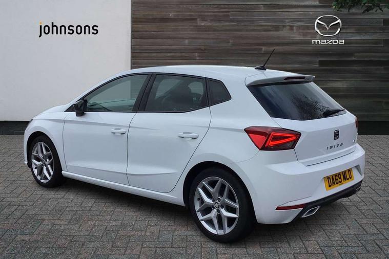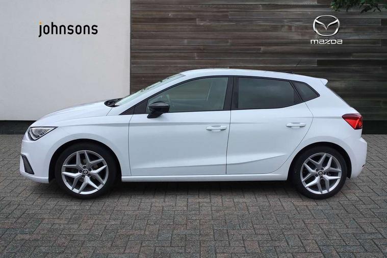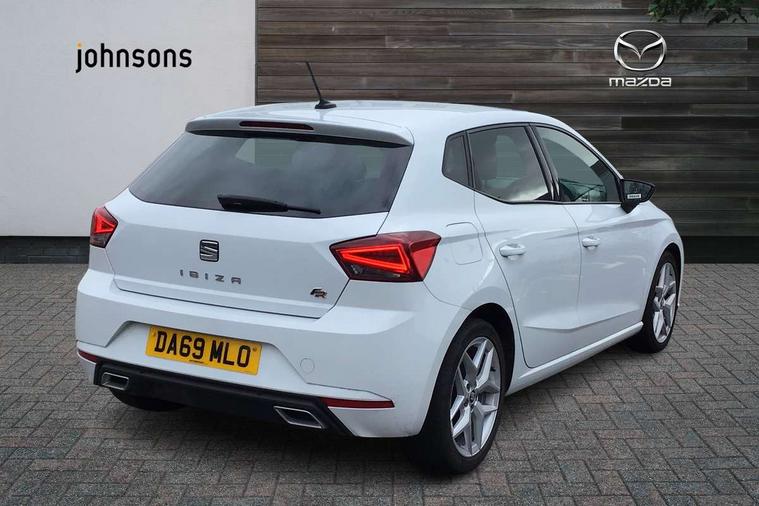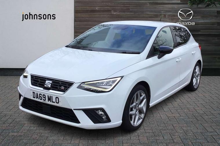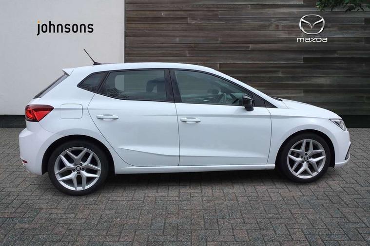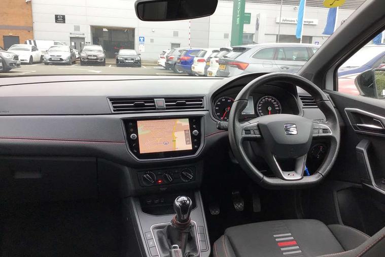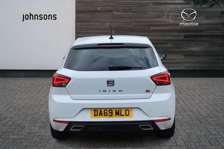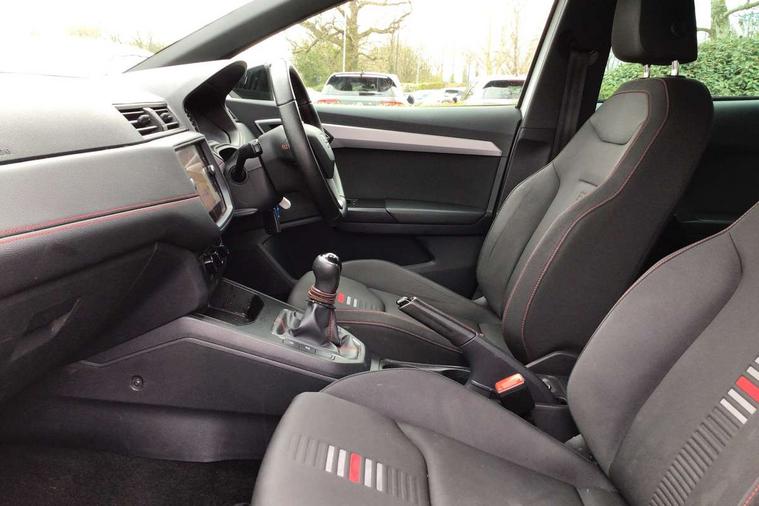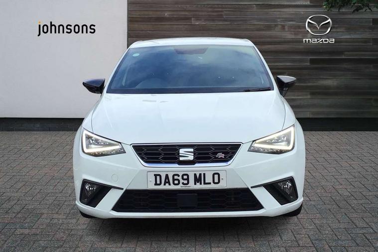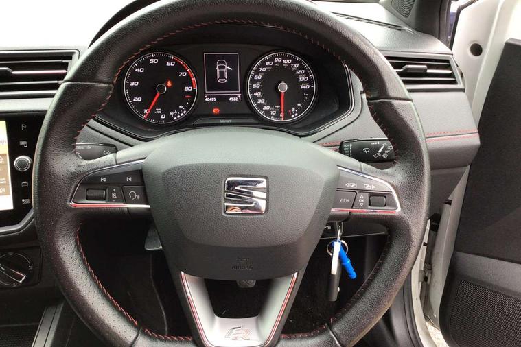 'Lights On' Reminder warning buzzer, Bluetooth Handsfree Phone Connection, Cruise control, Digital clock, Full Link Smartphone Integration with Mirror Link, Apple Car Play, Google Android Auto, Low fuel warning light, Outside temperature gauge, Power Steering, Satellite navigation system with 3D mapping, 8" touch screen, voice control and additional USB port, SEAT Drive profile, SEAT logo boot release, Trip computer, Sports suspension, 6 speakers, Auxiliary input socket, CD player, Digital Audio Broadcast (DAB) Tuner, Radio/MP3 player, SD card slot, SEAT USB media cable, Steering wheel mounted controls, USB port, Anti theft roof antenna, Auto dimming rear view mirror, Automatic headlights, Automatic rain sensing wipers, Body colour bumpers, Body colour door handles, Brilliant black door mirrors, Chrome front grille frame, Chrome grille, Coming/leaving home lighting function, Cornering front fog lights, Dark tinted rear windows, Electric folding door mirrors, Electric front windows, Electric headlight adjustment, Electrically adjustable and heated door mirrors, Exclusive FR rear bumper, Full LED headlights, LED daytime running lights, LED tail lights, Rear fog lights, Twin exhaust pipes, 3 rear headrests, 60/40 split folding rear seat, Air conditioning, Door and steering wheel ice metal decorative inserts, Driver's sunvisor with ticket holder/vanity mirror, Dust/pollen filter, Flat bottomed perforated leather steering wheel with red stitching and FR logo, Front courtesy lights, Front cupholders x 2, Front reading lights, Gear shift indicator, Glovebox, Height adjustable driver's seat, Height adjustable front/rear head restraints, Height adjustable passenger seat, Height/reach adjust steering wheel, Illuminated boot, Instrument lighting with brightness control, Leather dashboard, Leather handbrake, Multi-colour ambient interior lighting, Nora cloth upholstery, Passenger sunvisor, Rear top tether child seat ISOFIX attachment, Sports seats, Full LED headlight pack - Ibiza, 3 point seatbelts on all 3 rear seats, ABS, Active front headrests, Child locks on rear doors, Curtain airbags, Driver/Front Passenger airbags, ESP+EBA, Front assist (AEB), Front passenger airbag deactivation, Front side airbags, Hill hold control, Multi-Collision braking, Seatbelt warning, Tiredness recognition system, Tyre pressure monitoring system, Electronic engine immobiliser, Locking wheel bolts, Remote central locking + deadlocks, Volumetric alarm with back up horn, 17" Dynamic alloy wheels,