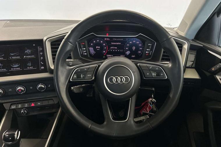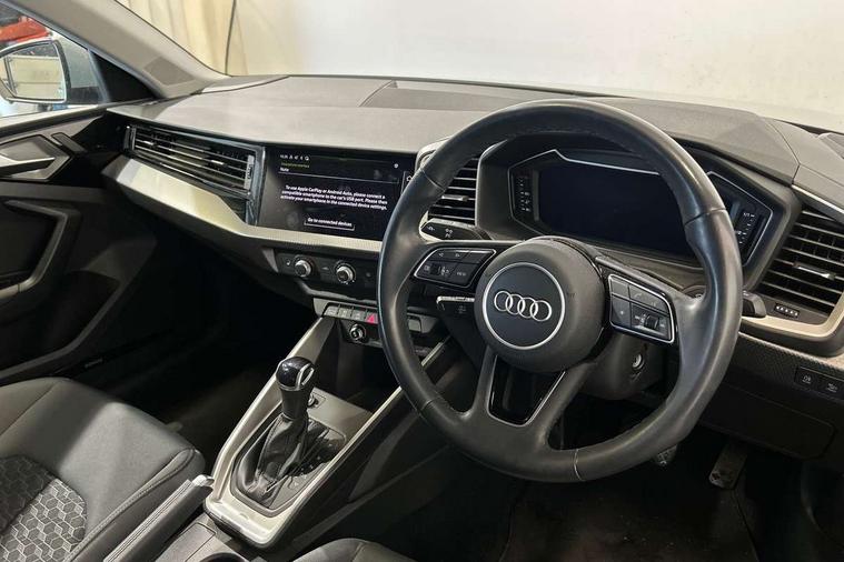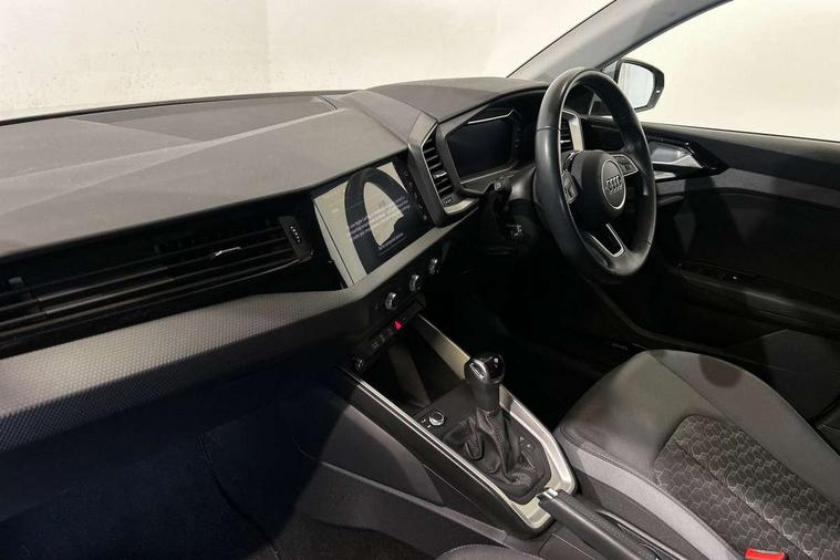 10.25" Digital instrument cluster display classis style instrument dials + speed, odometer, time, outside temperature, telephone menu + fuel level warning, Audi drive select - power steering assistance + engine + gear shift 3 preset modes (auto, dynamic, efficiency and an Individual mode), Audi smartphone interface with connect compatible smartphone via USB directly MMI display + Nav, music, third party apps controlled via MMI controller, Automatic start/stop system, Bluetooth interface, Cruise control, Driver's information system, Electromechanical power steering, Emergency e-call, Lane departure warning system, Rear parking sensor, Service interval indicator, Speed limiter, Voice control system, Washer fluid level indicator, Dynamic suspension, 2 x USB type C connection points, 6 passive loudspeakers, DAB Digital radio, MMI radio plus with 10.1" colour MMI display screen and MMI touch, Auto dimming rear view mirror, Body coloured bumpers, Body coloured door mirrors, Electric front and rear windows, Electrically adjustable, heated, folding door mirrors with integrated LED side indicator, Front side air inlets in grained matt black and C frame in anthracite black, Heat insulating glass windscreen and side windows, Heated rear windscreen, High level LED brake light, LED headlights with LED rear lights + dynamic rear indicators + headlight adjustment and high beam, turning light + LED daytime running lights, Radiator grille and rear diffuser in matt anthracite black, Radiator protective grille frame in matt aluminium silver, Rain and light sensors, Rear fog lights, Rear side wing doors, Rear wiper, Side front spoiler lips in grained matt black, 12V socket in centre console with two cup holders, 3 rear seats with headrests, 3 seat bench in 2nd row, 3 spoke leather multifunction plus steering wheel, 40:60 Split folding rear seat or folded fully, Black front and rear floor mats, Door sill trims with aluminium inlay, Driver and passenger seat with manual height adjust with forward and backwards adjustment, Front head restraints, Front passenger seat, Grey cloth headlining, Height and reach adjustable steering wheel, ISOFIX child seat mounting for front passenger and outer rear seats including top tether attachment point of outer rear seats, Leather gear knob with aluminium trim, Leatherette handbrake grip, Luggage compartment light with front and rear reading lights, Manual air conditioning, Manually adjustable lumbar support in front seats, Novum cloth upholstery with front sport seats, Luggage compartment pack - A1, 3x3 point rear seatbelts, Audi pre-sense front with pedestrain and cyclist recognition, Brake assist function, Driver and front passenger airbag with front side and head airbags, Electronic Stability Control including ABS, EBD, ASR and EDL, Front passenger airbag deactivation switch, Hill hold assist, Manual rear child locks, Seatbelt height adjustment for front seats, Seatbelt monitoring, Tyre pressure warning light, Warning triangle and first aid kit, Anti theft alarm, Anti theft wheel bolts and loose wheel warning, Immobiliser, Remote central locking with 2 foldaway keys, Aluminium trim for control switches, air vents and digital instrument cluster, Black dashboard, Silver grey accent areas including air vents, door handle recesses and centre console in diamond paint finish, Slate grey inlays polygon structure in fine paint finish,