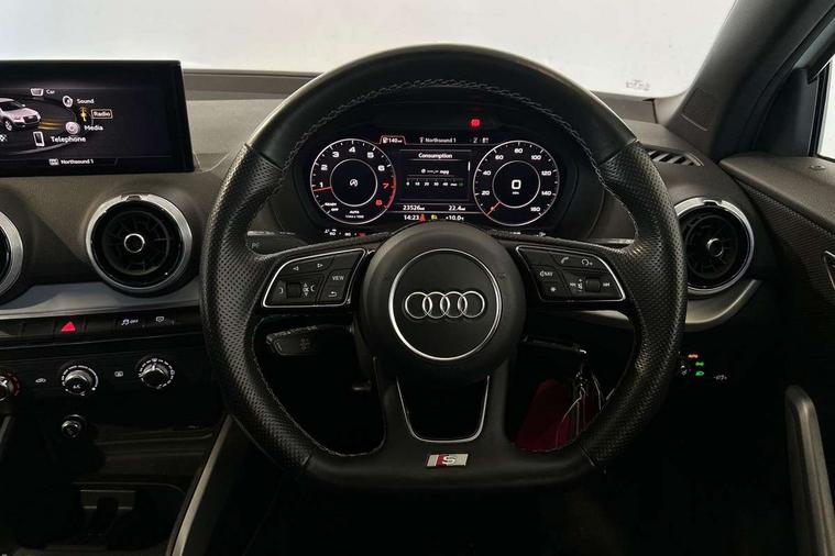 Audi connect navigation and infotainment includes innovative services, Audi connect remote and control connects your vehicle to your smartphone, Audi drive select, Audi drive select with efficiency, Audi smartphone interface, Audi virtual cockpit, Automatic start/stop system with recuperation, Bluetooth interface includes bluetooth audio streaming, Cruise control, E-call, MMI navigation plus with MMI touch, Power operated tailgate, Progressive steering, Rear parking sensors, 2 x SDXC card reader, 6 passive loudspeakers, DAB Digital radio, DVD Drive, Auto dimming rear view mirror, Black window trims, Bumper in full body colour paint finish, Electrically adjustable, folding, auto dimming and heated door mirrors with integrated LED side indicators, Front windscreen with grey tinted sunband, LED daytime running lights, LED headlights with LED rear lights, LED third brake light, Privacy glass - dark tinted rear and rear side windows from B-pillar backwards, Rear side wing doors, Rear wiper, Variable front intermittent wipers, Wheel arch trims in manhattan grey, 12V socket in front, 3 seat bench in 2nd row, 3 spoke flat bottomed multi-function leather sport steering wheel, 4-way electric lumbar support for front seats including seat height adjustment for both front seat, 60/40 split folding rear seat bench, Black cloth headlining, Front and rear head restraints, Front centre armrest, Front/rear floor mats, Height/reach adjust steering wheel, Illuminated door sill trims with S logo, Single front passenger seat, Stainless steel pedals, Black styling pack - Q2, 3x3 point rear seatbelts, 6 airbags - Front, curtain and front side airbags, Electromechanical parking brake, Electronic stabilisation control including ABS, ASR and EDL, Front passenger airbag deactivation, Hill hold assist, Pre-sense front with pedestrian recognition, Seatbelt monitoring, Tyre pressure warning light, Warning triangle and first aid kit, Anti theft alarm, Anti theft wheel bolts, Manual child locks, Remote central door locking, Aluminium interior element, Matt brushed aluminium trim inlays, Tool kit,
