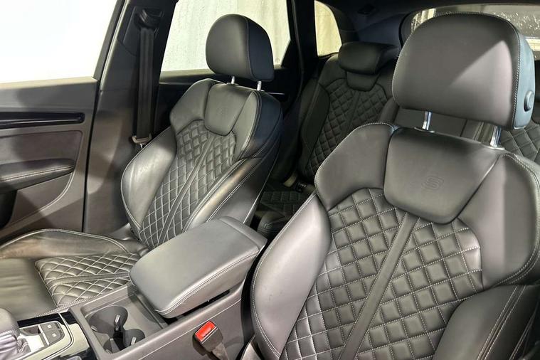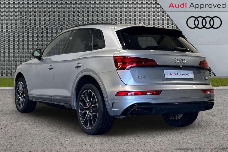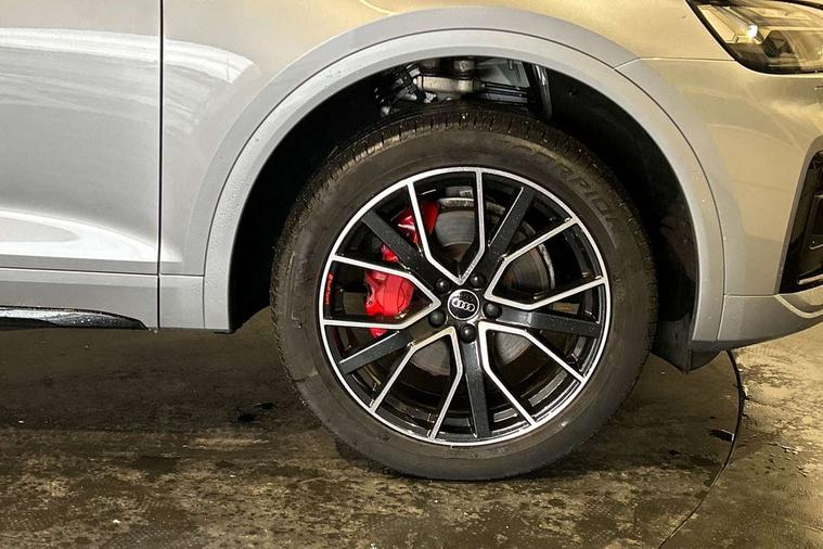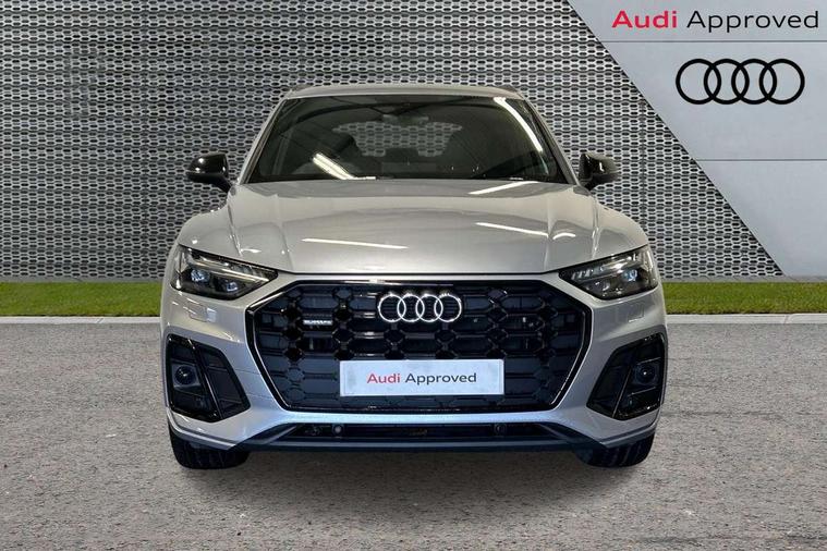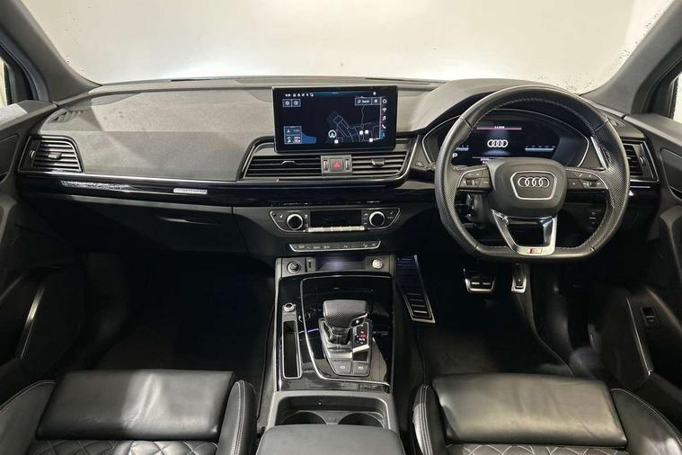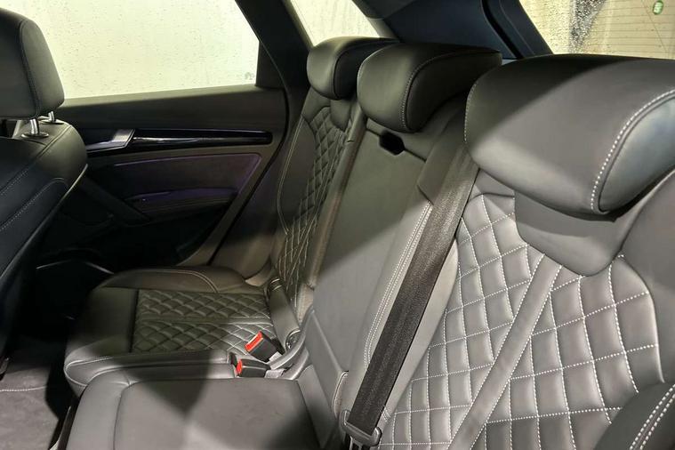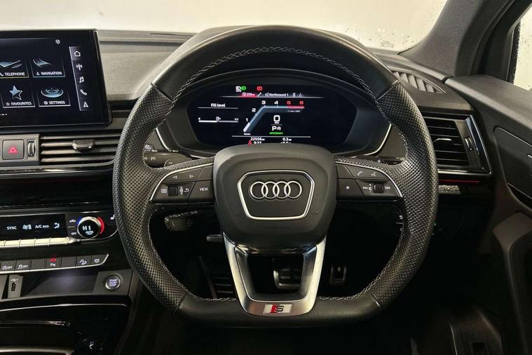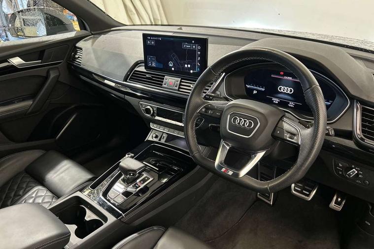 Audi connect safety and service (e-call), Audi connect with Amazon Alexa Integration, Audi drive select, Audi virtual cockpit plus with 12.3" screen and three different layout designs, Audi wireless smartphone interface, Automatic start-stop system with coasting functionality and efficiency programme, Bluetooth interface, Electro - mechanical power assisted steering, MMI navigation plus with 10.1" touch screen, Power tailgate, Reversing camera, Service interval indicator, Voice control system with Audi hotword activation "Hey Audi", Diesel particulate filter, Quattro on demand, S line sports suspension, 2 x USB charging port with aux input socket, DAB Digital radio, Acoustic windscreen, Audi matrix LED headlights with dynamic front and rear indicators, Audi rings at front and rear in black, Audi rings decal on rear doors, Auto dimming door mirrors, Auto dimming rear view mirror, Automatic headlights and windscreen wipers, Black door mirrors, Black roof rails, Body colour bumpers, Body colour underbody protection, Chrome plated exhaust trims, Daytime running lights, Door sills in Selenite silver, Electric adjustable/heated/folding door mirrors, Front air inlet surrounds in titanium black, Front and rear electric windows, Headlight washers, High gloss black B pillar trims and triangular rear door trim, High level LED brake light, Rear chrome trim strip below lights, Rear privacy glass and rear side windows, Rear side wing doors, Rear wiper, Roof bars, S Line rear spoiler, 3 rear headrests, 4 way electric lumbar support for driver and front passenger, 40:20:40 split folding 3 rear bench seat in 2nd row with rear centre armrest, Black cloth headlining, Comfort front centre armrest, Contrast stitching on seats, steering wheel and gear lever gaiter, Deluxe 3 zone electronic climate control, Electrically adjustable front seats, Fine Nappa leather upholstery with diamond pattern contrast stitching + front sport seats with S embossed logo, Front/rear floor mats, Gear lever in black leather, Heated front seats, Height adjustable front head restraints, Height/reach adjustable steering column, Illuminated door sill trims with S logo, ISOFIX child seat mounting and top tether, Rear seat bench plus, Removable luggage compartment floor, Single front passenger seat, Stainless steel pedals, Sunvisors with vanity mirrors, Black styling package - Q5 Edition 1, Extended interior upholstery pack - Q5, Extended LED Interior multi coloured Lighting Pack - Q5, 3 point seatbelts on all seats, 6 airbags - Driver, front passenger, curtain and side airbags, Electrically operated child locks on rear doors, Electromechanical parking brake, Electronic stabilisation control including ABS, ASR and EDL, Front and rear brake calipers painted in red, Front passenger airbag deactivation, Hill descent control, Hill hold assist, Multi collision brake assist, Pop-up bonnet for pedestrian protection, Pre sense city, Seat belt force limiter, Seatbelt monitoring, Tyre pressure warning, Warning triangle and first aid kit, Anti theft alarm, Anti-theft wheel bolts, Keyless Go access/ignition system, Remote central locking, Piano black finish inlay,