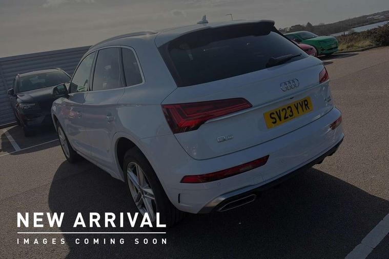 Acoustic front and rear parking sensor, Audi connect safety and service (e-call), Audi connect with Amazon Alexa Integration, Audi drive select, Audi virtual cockpit plus with 12.3" screen and three different layout designs, Audi wireless smartphone interface, Automatic start-stop system with coasting functionality and efficiency programme, Bluetooth interface, Electro - mechanical power assisted steering, MMI navigation plus with 10.1" touch screen, Power tailgate, Reversing camera, Service interval indicator, Voice control system with Audi hotword activation "Hey Audi", Diesel particulate filter, Quattro on demand, S line sports suspension, 2 x USB charging port with aux input socket, 8 loudspeakers, DAB Digital radio, Acoustic windscreen, Aluminium roof rails, Audi matrix LED headlights with dynamic front and rear indicators, Auto dimming door mirrors, Auto dimming frameless rear view mirror, Automatic headlight adjustment, Automatic headlights and windscreen wipers, Body colour bumpers, Body colour door mirrors, Body colour rear diffuser with matt aluminium silver surrounds, Body colour underbody protection, Chrome plated exhaust trims, Daytime running lights, Door sills in Selenite silver, Electric adjustable/heated/folding door mirrors, Front air inlet surrounds in aluminium, Front and rear electric windows, Front radiator grille in honeycomb design, Headlight washers, High level LED brake light, Lower bumpers painted in contrast Manhattan grey, Rear chrome trim strip below lights, Rear privacy glass and rear side windows, Rear side wing doors, Rear wiper, Roof bars, S Line badges on the front wings, S Line front and rear bumpers, S Line rear spoiler, S Line side skirts, 3 rear headrests, 3 spoke leather multifunction steering wheel with S badging perforated leather grips, 40:20:40 split folding 3 rear bench seat in 2nd row with rear centre armrest, Black cloth headlining, Comfort front centre armrest, Contrast stitching on seats, steering wheel and gear lever gaiter, Deluxe 3 zone electronic climate control, Front/rear floor mats, Gear lever in black leather, Heated front seats, Height adjustable front head restraints, Height/reach adjustable steering column, Illuminated door sill trims with S logo, Luggage compartment cover, Manual seat adjustment with 4-way electric lumbar support, Removable luggage compartment floor, Single front passenger seat, Stainless steel pedals, Sunvisors with vanity mirrors, High gloss pack - Q5, LED interior light pack - Q5, 3 point seatbelts on all seats, 6 airbags - Driver, front passenger, curtain and side airbags, Electrically operated child locks on rear doors, Electromechanical parking brake, Electronic stabilisation control including ABS, ASR and EDL, First aid kit with warning triangle and vests, Front passenger airbag deactivation, Hill descent control, Hill hold assist, ISOFIX child seat mounting for front passenger seat and ISOFIX child seat mounting with Top Tether for outer rear seats, Multi collision brake assist, Pop-up bonnet for pedestrian protection, Pre sense city, Seat belt force limiter, Seatbelt monitoring, Tyre pressure warning, Anti theft alarm, Anti-theft wheel bolts, Keyless Go access/ignition system, Remote central locking, Air vents inserts and centre console in gloss black, Matt brushed aluminium inlays,