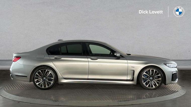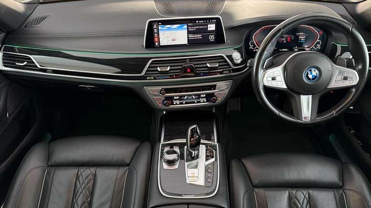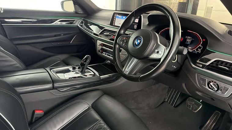 20GB hard disc drive (HDD) memory, Active Guard incl approach control warning with city brake function and person warning with city brake function, Average speed gauge, Battery certificate, BMW apps interface, BMW ConnectedDrive - Online, BMW Drive recorder, BMW gesture control, BMW information plus, BMW legal emergency call, BMW Live Cockpit Professional with 12.3" instrument display + 12.3" high resolution centre display nav function and Intelligent Voice Assistant, BMW Teleservices, Brake force display, Brake pad wear indicator warning light, Colour information display, Comfort access system with smart opener, Condition based service, Driving experience control with adaptive mode, eDrive button to select between AUTO eDrive, MAX eDrive and SAVE Battery settings, eDrive Services, Electric boot lid - electrically opening/closing rear tailgate, Engine start/stop button, Enhanced bluetooth with wireless charging, Fuel consumption and range, iDrive touch controller with shortcut buttons, Integrated owner's handbook, Lights on warning, Multifunctional instrument panel, Oil sensor for level and grade, On board computer, On-board diagnosis - OBD, Outside temperature gauge, Park distance control (PDC), Personal Profile, Powered bootlid operation, Run flat indicator, Service indicator, Smartphone wireless charging plate, Speed limit display, Speed limiter, State of charge check control message (CCM), Trip computer, Wifi hotspot preparation, Anti roll bar front and rear, Charging flap in front side panel - left, Double wishbone front axle, Dynamic Damper Control, eDrive exterior sound, Front and rear air suspension, Integral rear axle, Petrol Particulate Filter, Sport automatic transmission with gearshift paddles, Standard-Charging cable (Mode 2) for home socket, CD player, DAB Digital radio, Favourite buttons, "Electrified by i" exterior badging on charging flap, All round anti-corrosion system, Auto dimming rear view mirror, Automatic headlights, Automatic windscreen wipers, BMW roundel with BMW i blue surround on steering wheel, wheel centre caps, tailgate and bonnet, Body colour bumpers, Body colour door mirrors, Carbon core - innovative lightweight construction with highly rigid and light carbon elements, Chrome kidney grill struts in front and side, Dynamic brake lights, eDrive designation on C Pillar, Electric front and rear windows with fingertip open/close + anti-trap all round and comfort closing function, Electric heated door mirrors, Exterior mirrors - electrically folding with anti-dazzle, Follow me home headlights, Heated windscreen washer jets, High beam assistant, High gloss shadow line exterior trim, LED daytime driving lights with front and rear active, LED front and rear fog lights, LED rear lights, Model logo, Outer door handle illumination, Rear boot, Rear decorative bumper moulding tailpipe in chrome, Rear side wing doors, Third brake light, Variable front intermittent wipers, Welcome lighting, 12V power sockets, 3 seat bench in 2nd row, Ambient interior lighting, Battery in luggage compartment, Centre console with armrest, Door sill finishers with BMW designation, Driver + front passenger electric lumbar support, Electric seat adjustment with memory, Footwell courtesy lights front and rear, Four zone automatic air conditioning, Front and rear cupholders x 2, Front and rear reading lights, Front and rear seat heating, Front comfort seats, Glove compartment, Grab handles, Isofix child seat mounting, Lashing eyelets in boot, Lockable glovebox, M specific key, Microfilter and active carbon filter, Reach and rake adjustable steering column, Rear centre console, Rear headrests, Single front passenger seat, Soft close doors, Stationary cooling and heating, Storage options, Sun visors, Velour floormats, Connected Package Professional - 7 Series, M Aerodynamic pack - 7 Series, Non smokers pack - 7 Series, Parking Assistant Plus - 7 Series, Active front seat headrests, Active protection, Anti-lock braking system (ABS), Anti-whiplash front headrests, Automatic Stability Control (ASC), Brake assist function, Brake energy regeneration, Comfort exit stepless door brake, Cornering brake control, Crash Sensor - activates hazard/interior lighting + unlocks doors, Deformation zones - front and rear with door reinforcements and bumpers up to 2.5 mph, Driver and front passenger airbag with front passenger airbag deactivation, Driver/front passenger side airbags, DSC - Dynamic Stability Control, Dynamic brake control, Dynamic safety, Dynamic Traction Control - DTC, EBD - Electronic brakeforce distribution, Electromechanical parking brake + auto hold function, Engine drag torque control, Front and rear brake discs with interior ventilation, Front seatbelt pretensioners with force limiters, Head airbags for first and second row seats, Manual child lock in rear doors, Mechanical child proof lock on rear doors, Rear airbags, Side impact protection, Three inertia reel rear seatbelts, Three point rear seat belts, Two tone horn, Tyre pressure monitoring system, Tyre pressure sensors, Warning triangle and first aid kit, Electronic vehicle immobiliser, Locking wheel bolts, Remote central locking, Thatcham Cat.1 alarm, Ceramic finish for controls, Leather instrument panel,