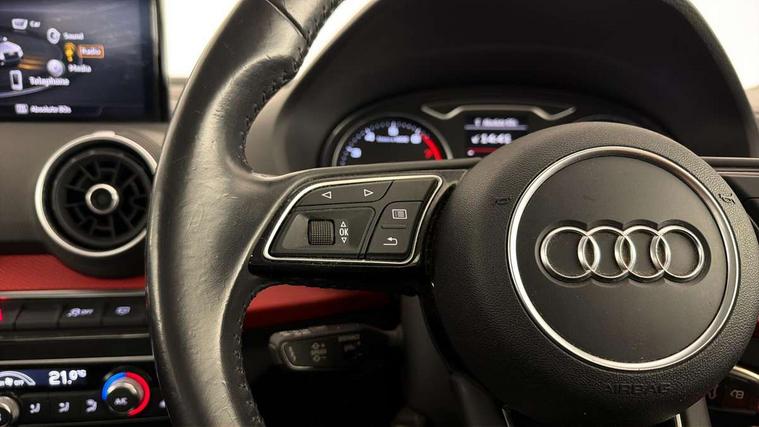 Audi drive select, Audi smartphone interface, Bluetooth hands free telephone connection, MMI - Multi Media Interface control system, PAS, Service interval indicator, Voice control system, Audi music interface, Aux input, CD player, DAB digital radio module, MMI radio plus with 7" colour MMI screen and MMI controller, USB port, Body colour door mirrors, Chrome exhaust tailpipe, Door mirror integrated indicators, Electrically adjustable and heated door mirrors, Front and rear electric windows, Rear wiper, Sunband for windscreen, Aluminium door sill trims, Centre console with storage/cupholders, Front and rear door pockets, Front and rear headrests, Front and rear velour floor mats, Front centre armrest, Front sports seats, Glovebox, Height adjustable front seats, Height/reach adjust steering wheel, ISOFIX on front passenger and rear outer seats, Storage compartment in rear centre console, 3x3 point rear seatbelts, ABS+Electronic Brake force Distribution, Curtain airbags, Driver and passenger airbags, Driver and passenger side airbags, EDL + ASR, Electrically operated child locks on rear doors, Electromechanical parking brake, ESP, Multi-Collision braking, Pre-sense front with pedestrian recognition, Seatbelt warning light, Tyre pressure monitoring system, Warning triangle and first aid kit, Locking wheel bolts, Remote central locking, Thatcham category 1 alarm + immobiliser, Aluminium interior trim,