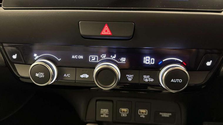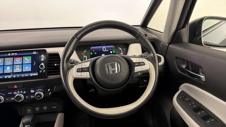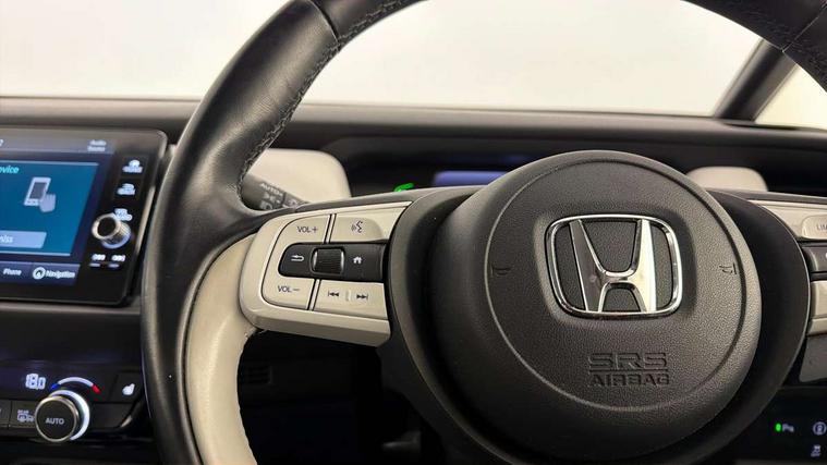 Adaptive cruise control, Adjustable speed limiter, Agile handling assist, BLIS (Blind Spot Information System) with Cross Traffic Monitor, Bluetooth hands free telephone connection, eCall emergency call system, Econ mode, Electric power steering wheel with variable gear ratio steering, Emergency stop signalling system, Forward collision warning, Front and rear parking sensors, Honda CONNECT with HERE Navigation + 9" touchscreen, AM/FM/DAB/Apple Carplay and android auto, Idle stop, Intelligent speed limiter, Lane departure warning system, Lane keep assist system, Low speed following, Multi-information display, Rear view camera, Road departure mitigation, Traffic sign recognition, Vehicle stability assist, 'Shark fin' mobile antenna, 2 USB sockets in rear, 2x USB Front socket (1 data & 1 charge), 4 speakers, Remote audio controls on steering wheel, Aspheric door mirrors, Auto wipers, Automatic headlights with on/off timer, Coming/leaving home function, Body colour door handles, Body coloured bumpers, eHEV emblem, Electric adjustable door mirrors, Electrically folding door mirrors, Front and rear electric windows, Heated door mirrors, High beam assist, LED daytime running lights, LED front fog lights, LED Headlights, LED rear lights, Privacy glass, Rear side wing doors, Rear wiper, Single exhaust tailpipe, Third brake light, 3 seat bench in 2nd row, 60/40 split rear bench seat, Cargo net hooks, Climate control air conditioning, Driver and front passenger seat armrests, Driver and passenger front seat pockets, Driver's seat height adjustment, Fabric/leather upholstery, Front accessory power socket, Front head restraints, Front map lights, Front/rear courtesy lights, Heated front seats, Heated steering wheel, Isofix child seat restraint mechanism, Isofix points, Leather gearshift knob, Leather steering wheel, Magic seat flexibility system, Paddle shift controls, Plating interior door handles, Rear head restraints, Rear parcel shelf, Single front passenger seat, Sunvisors with vanity mirrors, Tilt/telescopic adjustable steering wheel, Tonneau cover, Trunk light, 3x3 point rear seatbelts, Anti-lock braking system (ABS), Brake assist function, Brake hold function, Child locks on rear doors, Collision mitigation braking system, Deflation warning system, Driver knee airbag, Driver SRS airbag (single stage inflation), Driver/Front Passenger airbags, Electric parking brake, Front and rear side curtain airbag, Front side airbags, Hill start assist, Passenger SRS airbag cut-off device, Rear side airbags, Whiplash lessening front headrests, Front seat belt with emergency locking retractor, Honda super locks, Immobiliser, Mirrors and windows key fob operation, Remote central locking with 2 remote folding keys, Security alarm, Smart entry + Smart start, Soft pad leather interior panels, 16" Multi apperance alloy wheels in mat berlina black, Tyre repair kit,