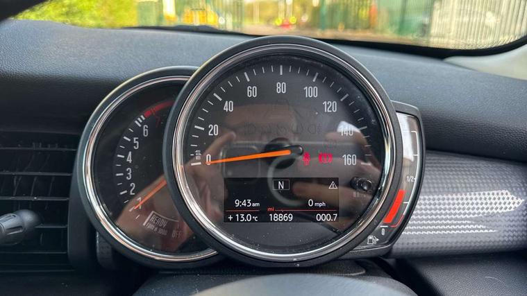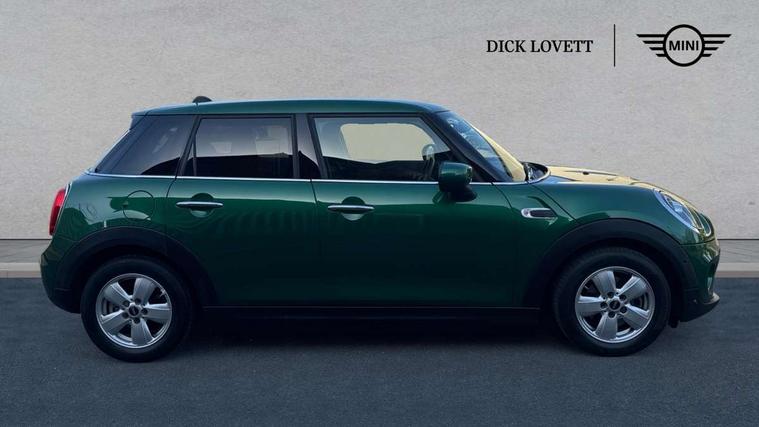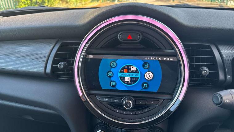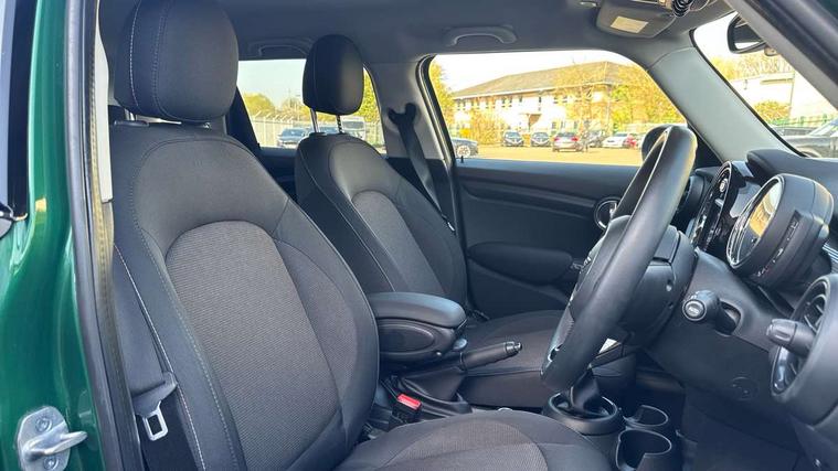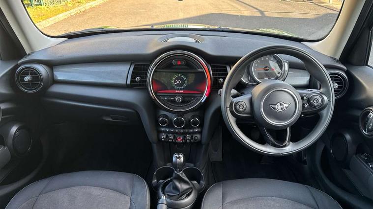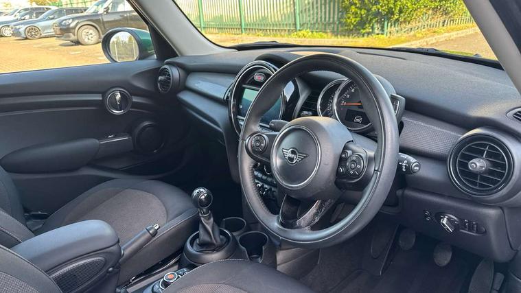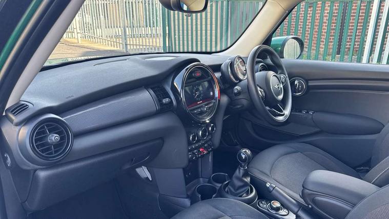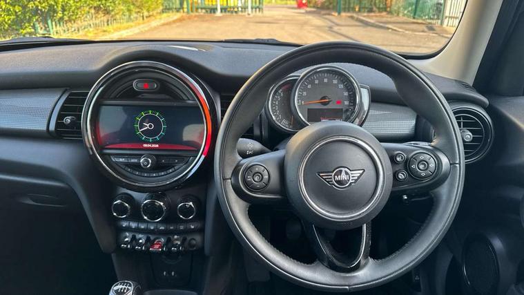 Automatic start/stop function with brake energy recuperation, Compatible mobile phone bluetooth with audio streaming, Electro-mechanical speed dependant steering assistance, Instrument cluster, Mini E-call, MINI TeleServices, On board computer, Service interval indicator, Double Vanos system, Fully variable valve control, High precision injection, 6.5" touchscreen with LED ring, FM tuner and DAB digital radio, Automatic headlight activation switch, Body colour fuel filler cap, Chrome border high gloss black slats radiator grille, Dynamic brake lights, Electric front+rear windows, Heated rear window, Heated windscreen washer jets, LED headlight with closed ring and daytime driving lights, Left exhaust tailpipe with chrome finisher, Metal door sill strips with MINI imprint, Model logo Cooper on right of tailgate, Rain sensor window wipers, Rear fog lights, Rear LED lights with union jack design, Rear window wiper, Side scuttle panel with integrated indicator, Sun/heat protection glass, White indicator lenses, 12V Accessory socket in centre console, 4 lashing eyes in luggage compartment, 60/40 split folding rear seat, Chrome interior highlights, Colour line - Carbon black, Cupholders, Front and rear head restraints, Front and rear isofix with front passenger airbag deactivation, Glove compartment, Height and length steering column adjustment, Interior lighting with 12 basic colours selectable via toggle switch in roof, Leather gearshift lever and handbrake gaiters, LED reading lights, vanity mirror lights, front foot well light and spotlight on front seats, Manual air conditioning, Mechanical seat adjustment, driver seat height adjust, forward/back and front seats backrest, Mini logo projection on floor from drivers exterior mirror, Multifunction steering wheel, Satellite grey headlining, Storage compartments in doors, Sunvisors with vanity mirrors, 3 point seatbelts on all five seats, 6 Airbags - front, side, head and seat belt tensioners, Anti-lock braking system (ABS), DSC - Dynamic Stability Control, Front and rear disc brakes, Hill start assist, Single tone fanfare horn, Tyre pressure monitoring system, Alarm system with tilt sensor, monitoring doors, bonnet interior and tailgate, Electronic vehicle immobiliser, Start/stop toggle with keyless go, Tool kit,