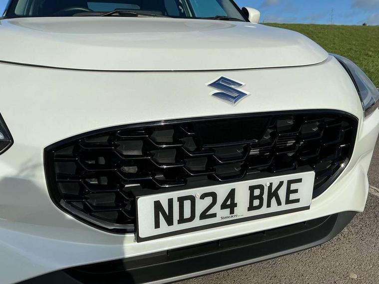 Adaptive cruise control, Automatic start/stop system, Blind spot monitoring, Colour LCD information display, Digital clock, Driver monitoring system, eCall, Fuel consumption display (average/instantaneous) and range display, Intelligent speed control support, Lane departure prevention, Lane departure warning system, Lane keeping assist (LKA), Low fuel level warning light, Navigation system, Outside temperature display, PAS, Rear cross traffic alert, Rear parking camera, Rear parking sensors, Remote fuel cap release, Smartphone integration with Apple CarPlay and Android auto, Suzuki connect, Tailgate, Traffic sign recognition, Weaving alert, 4 speakers + 2 tweeters, 9-inch infotainment display, Auxiliary input socket, Bluetooth audio streaming, DAB Digital radio, Steering wheel audio controls, USB Type A and C, 'Guide me home' headlamps, 1 speed with intermittent rear wiper + washer, 2 speeds front wiper with intermittent + washer, Automatic headlights, Black coloured A & B pillars, Black Upper and lower front grille, Body colour door mirrors and handles, C pillar trim moulding, Electric door mirrors, Electric front windows, Electric rear windows, Green tinted glass, Heated door mirrors, High beam assist, LED daytime running lights, LED High mounted stop light, LED position lamps, LED projector headlamps, LED rear combination lamp, Manual headlamp level control, Rain sensor, Rear fog lights, Rear privacy glass, Rear side wing doors, Rear spoiler, Side spoiler, 1 cup holder in rear, 12V Accessory socket in front console, 2 cup holders in front, 2 Isofix seat anchors, 3 bench rear seats in 2nd row, 3 rear head restraints, 3 spoke leather covered steering wheel, 60/40 split rear seats, Accessory socket, Centre console storage, Centre lower box, Child seat tether anchorages x 2, Chrome handbrake release button, Chrome interior door handles, Cloth upholstery, Door pockets with bottle holder, Driver/passenger sunvisors with ticket holders + vanity mirrors, Front cabin lights, Front headrests, Front map light, Front passenger side assist grip, Glovebox, Heated front seats, Heater, Height adjustable driver's seat, Luggage area lamp, Manual air conditioning with digital control panel, Material door trim ornament, Parcel shelf, Passenger seat back pocket, Pollen filter, Single front passenger seat, Tilt adjustable steering wheel, Tilt/telescopic adjustable steering wheel, 3 point ELR seatbelts for centre seat, 3 point ELR seatbelts front and rear, ABS+EBD+Brake assist, Curtain airbags, Driver airbag, Dual sensor brake support, ESP + traction control, Front and rear seatbelt reminder, Front passenger airbag, Front passenger airbag deactivation, Front seatbelt pretensioners with force limiters, Hill hold control, Rear child proof door locks, Rear seatbelts with pre-tensioners and load limiters, Side airbags with incorporated into front seats, Tyre pressure indicator, Deadlocks, Freewheeling key cylinders, Immobiliser, Keyless entry and start, Light - on and Key in reminder, Locking wheel nuts, Remote central locking, Painted instrument panel ornament, 16" Painted alloy wheels, Emergency flat tyre repair kit,