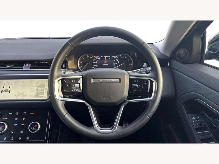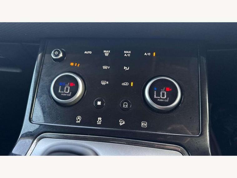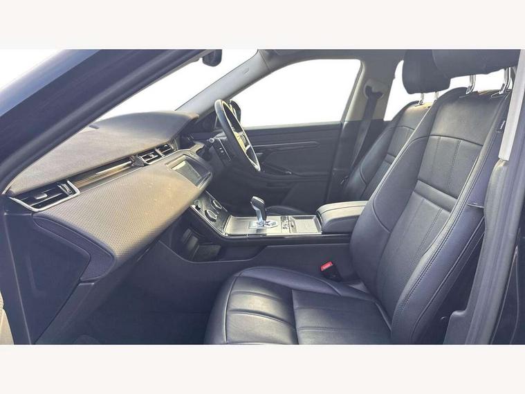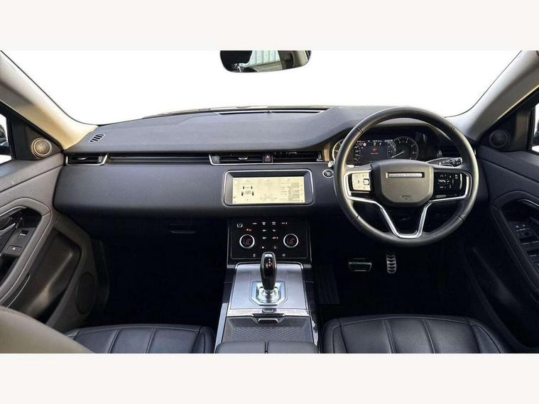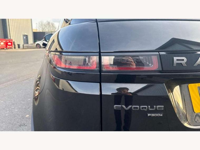 Adaptive cruise control, Android Auto, Apple car play, Bluetooth connectivity, Brake pad wear indicator warning light, Driver condition monitor, eCall emergency system, Electronic power assisted steering (EPAS), Front and rear parking aid, InControl remote, Land Rover InControl apps, Lane keep assist, Pivi pro connected includes upgraded infotainment, connected navigation pro, Nuance speech licence, Push button starter, Traffic sign recognition with adaptive speed limiter, Voice control system, 7 kW onboard charger, All terrain progress control, Electric rear axle drive, Home charging cable, Large fuel tank, Passive suspension, Public charging cable, Terrain Response 2 Auto, Digital Audio Broadcast radio-DAB, Steering wheel mounted controls, Auto headlights, Daytime running lights, Electric windows with one touch open/close and anti trap, Evoque and R-Dynamic badge, Flush deployable exterior door handles, Heated rear window with timer, Heated washer jets, Heated windscreen, P300e badge, Power fold, auto-dimming, heated door mirrors with approach lights and auto dimming driver side, Rain sensing windscreen wipers, Rear fog lights, Rear side wing doors, Rear wiper, Tailgate spoiler, Third brake light, 40:20:40 split folding rear seats with centre headrest and armrest, Ambient interior lighting, Bright metal pedals, Isofix system on outer rear seats, Overhead lighting console, Overhead stowage for sunglasses, Passive front head restraints, Rear air vents, Rear centre headrest, Rear head restraints, Satin chrome gearshift paddles, Single passenger seat, Sunvisors with illuminated vanity mirrors, Twin sliding front centre armrest, 3 rear 3 point seatbelts, Anti-lock braking system (ABS), Customer configurable autolock, DSC - Dynamic Stability Control, Electronic brake force distribution, Electronic parking brake, Electronic traction control, Emergency braking, Front and rear seatbelt reminder, Hill descent control, Hill launch assist, Low traction launch, Power operated child locks, Roll stability control, Six airbags - Driver and passenger airbags/driver knee airbag/front side airbag and curtain airbags, Torque vectoring brake, Tyre pressure monitoring system, Alarm, Immobiliser, Intrusion sensor, Locking wheel nuts,