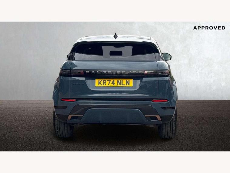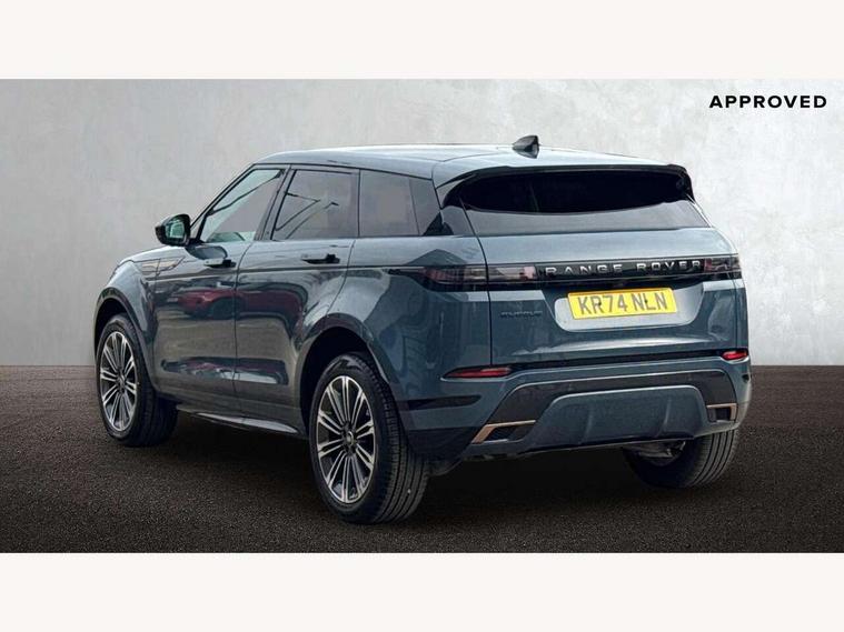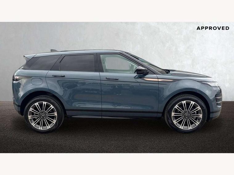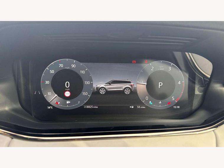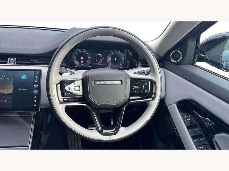 11.4" touch screen, Adaptive cruise control, Android Auto, Apple car play, Blind spot assist, Bluetooth connectivity, Brake pad wear indicator warning light, Driver condition monitor, eCall emergency system, Eco mode, Electronic power assisted steering (EPAS), Front and rear parking aid, InControl remote, Interactive driver display, Land Rover InControl apps, Lane keep assist, Pivi pro connected includes diamond pivi variant, smart settings, connected navigation pro, nuance speech licence, Powered tailgate/boot lid, Rear collision monitor, Rear traffic monitor, Traffic sign recognition with adaptive speed limiter, Voice control system, Wireless device charging, All terrain progress control, Diesel exhaust fluid (DEF) large tank, Efficient Driveline, Large fuel tank, Passive suspension, Terrain Response 2, Digital Audio Broadcast radio-DAB, Steering wheel mounted controls, Acoustic laminated windscreen, Auto headlights, Automatic headlight levelling, Electric windows with one touch open/close and anti trap, Flush deployable exterior door handles, Front and rear recovery eyes, Heated rear window with timer, Heated washer jets, Heated windscreen, Pixel LED headlights with signature DRL and LED tail Lights, Power fold, auto-dimming, heated door mirrors with approach lights and auto dimming driver side, Rain sensing windscreen wipers, Rear animated directional indicators, Rear fog lights, Rear side wing doors, Rear wiper, Side repeater indicators in mirror, Tailgate spoiler, Third brake light, Winter wiper park position, 14 way driver memory electric front seats with 2 way manual headrests + 4 way lumbar support, bolsters, 40:20:40 split folding rear seats with centre headrest and armrest, Ambient interior lighting, Bright metal pedals, Carpet mats, Chrome tread plates with range rover branding Includes stainless steel loadspace scuff plate with etched graphic, Customer configurable single point entry, Electrically adjustable steering column with memory function and easy entry/exit, Front and rear cupholders, Heated steering wheel, Isofix system on outer rear seats, Overhead lighting console, Overhead stowage for sunglasses, Passive front head restraints, Rear air vents, Rear head restraints, Satin chrome gearshift paddles, Single passenger seat, Sunvisors with illuminated vanity mirrors, Twin sliding front centre armrest, Online pack with data plan - Evoque, Power socket pack 2 - Evoque, 3 rear 3 point seatbelts, Anti-lock braking system (ABS), Brake hold function, Customer configurable autolock, DSC - Dynamic Stability Control, Electronic brake force distribution, Electronic parking brake, Electronic traction control, Emergency braking, Front and rear seatbelt reminder, Hill descent control, Hill launch assist, Low traction launch, Occupant protection assist, Passenger seat occupant detector, Power operated child locks, Roll stability control, Six airbags - Driver and passenger airbags/driver knee airbag/front side airbag and curtain airbags, Torque vectoring brake, Tyre pressure monitoring system, Alarm, Immobiliser, Intrusion sensor, Keyless entry, Locking wheel nuts,
