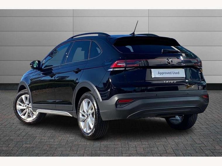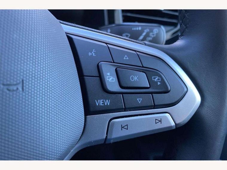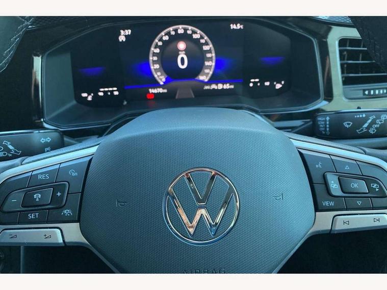 8" Digital cockpit basic display, Advanced driver attention and drowsiness monitor, Dynamic road sign display, e-Call (emergency call), Power Steering, Predictive adaptive cruise control, Rear view camera, Travel assist including emergency assist, Washer fluid level indicator, Wireless Charging including Bluetooth, Start-stop system with battery regeneration (recuperation - energy recovery during braking), Digital radio reception (DAB+), WeConnect plus, Ambient lighting with logo projection, Aspherical driver's exterior mirror, Body coloured bumpers, Body coloured exterior mirror housings and door handles, Electric windows, External USB type C socket and charging sockets, Heat insulating glass windscreen, LED rear combination lamp, LED third brake light, Left convex exterior mirror, Power folding adjustable/heated exterior mirrors and front passenger exterior mirror lowering function, Rear fog light on one side, reversing light on both sides, Rear side wing doors, Rear wash/wipe with intermittent wipe setting, Side windows in heat-insulating glass, from B-pillar and rear window dark tinted, 'Slash/ Austin' Cloth upholstery, 12V socket in centre console, 2 front reading lights, 3 rear head restraints, 3 seat bench in 2nd row, Black carpets, Ceramique headliner, Child seat anchor for child seat system i-Size, 2x top tether and child seat anchor in front on front passenger side, Door and side trim panels in titan black, Driver and front passenger seat height adjustment, Front centre armrest, Handbrake lever handle in leather, Height and reach adjustable steering wheel, Leather trimmed gear knob, Leather wrapped multifunction steering wheel, Luggage compartment floor, Luggage compartment light, Lumbar support for driver's and front passengers seat, Seat covers in titanium black, Single front passenger seat, Split folding backrest with centre armrest and unsplit rear seat bench, Storage compartment under front seats, Sun visors with illuminated vanity mirrors, Titanium black instrument panel, Chrome Package - Taigo, Drivers assistance package - Taigo, Light and sight pack - Taigo, 2 x 3-point seatbelts/outer rear seats with ECE label, 3-point seat belts in front with pretensioner and height adjustment, 3-point seatbelt for centre rear seat, Driver and front passenger airbag with front passenger airbag deactivation, Driver and front passenger safety-optimised head restraints, Electronic stability control, Extended and predictive pedestrian/ cyclist protection, Front and rear disc brakes, Front curtain and side airbags with center airbag, Hill start assist, Manual rear child locks, Single tone horn, Tyre pressure loss indicator, Anti-theft alarm system with interior monitoring, backup horn, and towing protection, Keyless locking and starting system keyless access with safelock, Black (slush) Dashboard, Lava stone black gloss/matt decorative inserts in dash and front door panels, Low rolling resistance tyres,