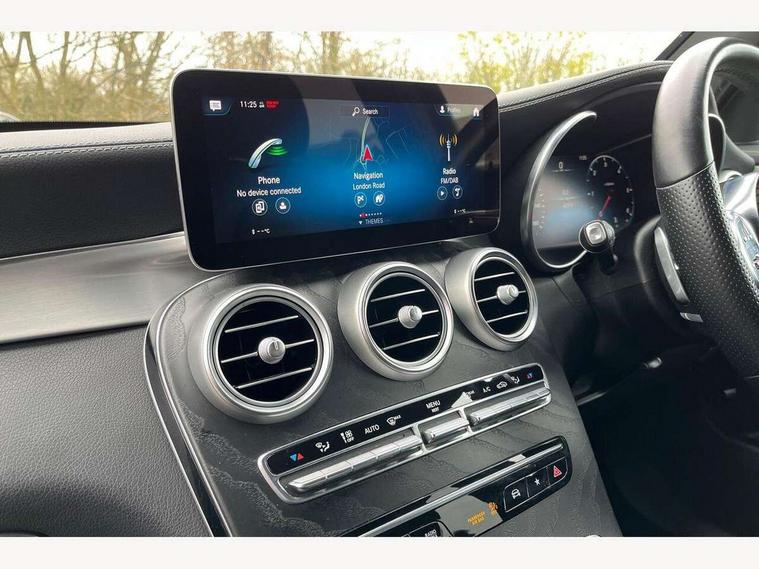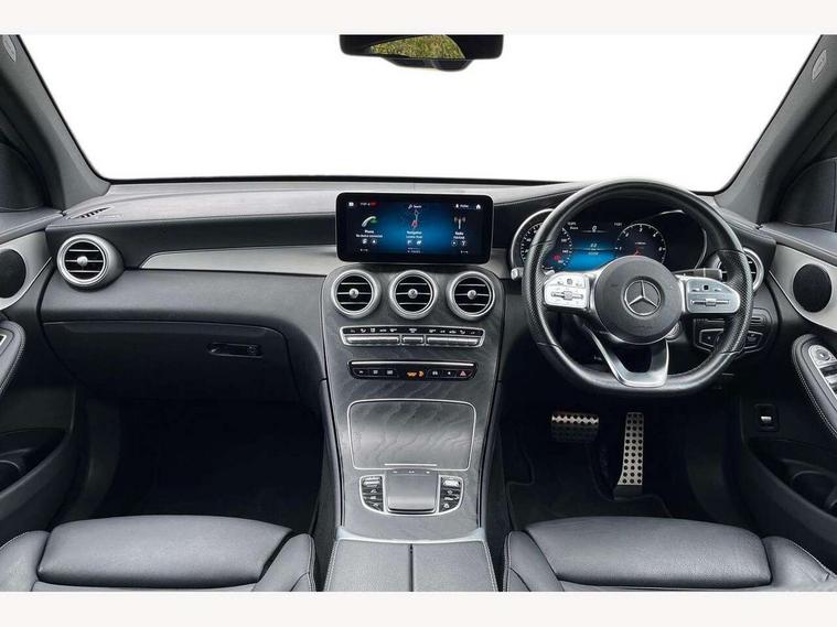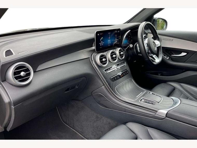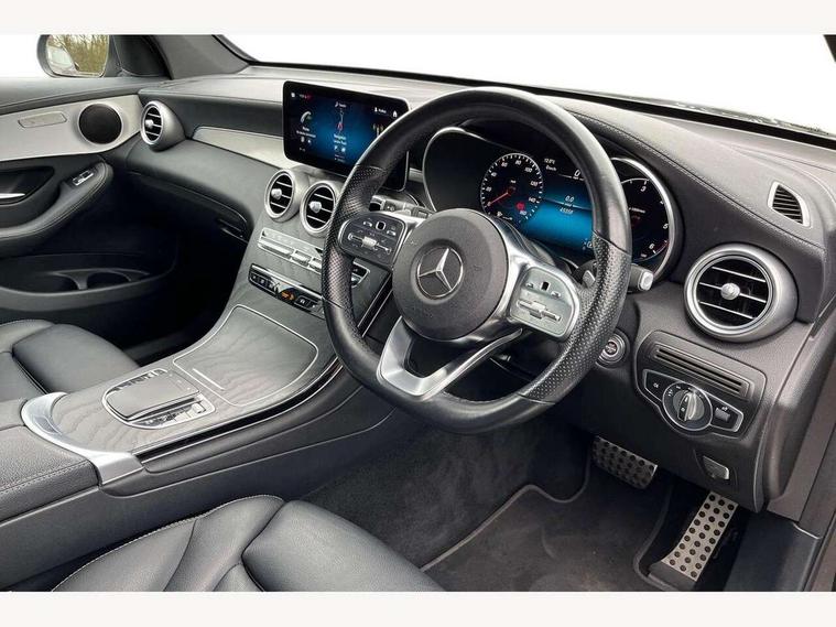 Attention assist, Bluetooth interface for hands free telephone, Collision prevention assist plus, Cruise control with speedtronic variable speed limiter, Direct steer speed sensitive steering, DYNAMIC SELECT with a choice of driving modes (ECO, Comfort, Sport, Sport+ and Individual), Easy pack automatic powered tailgate, ECO start/stop function, Hard disk navigation, Hey Mercedes Voice activation, Instrument cluster with12.3-inch digital instrument cluster display. High resolution instrument cluster screen with choice of three display styles, MBUX augmented reality for navigation, MBUX Interior assistant, Mercedes connect me with remote online services, Multi function trip computer, Outside temperature display, rear seatbelt status indicator, Parktronic system with rear cross traffic alert and drive away assist, Remote boot release, Reversing camera, Service indicator (ASSYST), Smartphone integration with Apple CarPlay and Android auto, Traffic sign assist, Wireless charging, 4MATIC permanent four wheel drive, 66 litre fuel tank, 9G TRONIC plus automatic transmission with steering column gear selector, DIRECT SELECT steering wheel gearshift paddles, Diesel particulate filter, Sports suspension tuned for improved handling and driving dynamics, MBUX multimedia system with DAB digital radio and touchpad including satellite navigation, Media display 10.25-inch touchscreen display, Mercedes Benz sound system (225w) includes mid-range sound system, Pre installation for Mercedes Benz Link, USB ports x 2 in centre console, Adaptive brake lights, Aluminium roof rails, AMG bodystyling - AMG front apron with sporty air intakes and chrome trim element, AMG diffuser-look rear apron with insert in black, Body colour door mirrors, Body coloured bumpers, Electric windows one touch open/close, Electrically adjustable and heated door mirrors, Front, side and rear exterior chrome trim, Headlamp assist automatic headlamp activation, LED tail lamp, Motor way mode function and locator lighting, Multi beam LED headlamps with 84 indiviually control LED, daytime running lamps, Active Light, cornering light, enhanced fog lamp, adaptive Highbeam Assist, Privacy glass with dark glass from B pillar backwards, Radiator diamond grille, Rain sensor windscreen wipers, Range adjustable headlights, Rear wiper, Running boards, Tinted glass all round with single layer safety glass, Two chrome plated tailpipe trim elements, 2 way rear head restraints, 3-spoke multifunction sport AMG steering wheel in black nappa leather with flattened bottom section, chrome insert and perforated leather in grip area, 40:20:40 split folding rear seats, Ambient lighting, AMG floor mats with edging and embroidered AMG lettering, AMG sports seats, Artico man-made leather upper dashboard with contrast topstitching, Automatic child seat recognition sensor, Black roof lining, Dividing net - rear, Double cup holder in centre console, Easy-pack removable load compartment cover, Front armrest with storage box, Front door sills with Mercedes Benz lettering, Front head restraints, Front seats with electric adjust (backrest, height and seat cushion inclination) with 4 way electric lumbar support and manual cushion depth adjust, Heated front seats, Height/reach adjustable steering column, Illuminated and lockable glove compartment, Leather upholstery, Rear top tether child seat ISOFIX attachment, Sports pedals with stainless steel surfaces and rubber studs, Steering wheel with touch control buttons, THERMOTRONIC 3 zone automatic climate control, Interior lighting pack - GLC, Mirror pack - GLC, Storage pack - GLC, 3 rear 3 point seatbelts, Active bonnet, Adaptive brake system with HOLD function and brake drying in the wet, ASR, Black seat belts, Brake calipers with Mercedes-Benz lettering + perforated brake discs, Child proof door locks, Dual-stage airbags - driver and front passenger, driver knee bag and window bags for driver, front passenger and rear passengers, Electronic parking brake, Electronic stability programme (ESP) with curve dynamic assist and cross wind assist, Front and rear seatbelt reminder, Front passenger seat occupancy sensor, Hill hold function, Tyre pressure monitoring system, Warning triangle and first aid kit, Alarm system/interior protection/immobiliser, Automatic door locking, KEYLESS-GO starting function, Remote central locking, Open pore black ash wood trim, 20" AMG multi spoke design alloy wheels painted in titanium grey with high sheen finish, Run flat tyres,