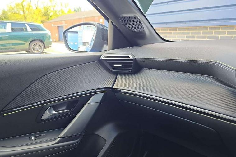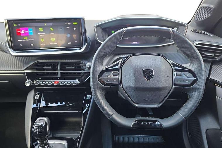 Bluetooth telephone facility, Drive mode select (Eco/Normal/Sport), Driver attention warning, Emergency call service, Exterior temperature indicator with ice warning, Front and rear parking sensors, Multi function trip computer, PEUGEOT i-Cockpit with 10" configurable 3D colour head up instrument panel, PEUGEOT i-Cockpit with 10" HD capacitive colour touchscreen, PEUGEOT i-Cockpit with compact steering wheel, PEUGEOT SOS and assistance, Push button start, Smart phone docking station, Smartphone 15W wireless charging plate, Speed limit recognition and recommendation, Start/stop system, Wireless mirror screen with apple carplay and android auto, 6 Speakers - 2 tweeters and 4 door speakers, DAB Digital radio, Peugeot i-connect infotainment system - 10in HD touchscreen, AM/FM/DAB digital radio, Wifi Mirroring, Bluetooth & 2 USB connection, USB-A socket (x1) and USB-C socket (x1) - rear, USB-C data and charge socket and USB-C charge socket in front, Voice recognition for radio, navigation and telephony features, 2 X Rear number plate lights, Acoustic windscreen, Antenna - Gloss Black 'fin' design, Automatic hazard light activation upon heavy brake application, Body coloured exterior door handles, Dark tinted rear side and tailgate windows, Diamond black rear spoiler (roof), Door sills protection with PEUGEOT signature lettering, Electric heated and power folding door mirrors with courtesy floor lighting, Frameless electrochrome interior rear view mirror, Full LED headlights with automatic height adjustment and PEUGEOT smartbeam assist, Gloss black B pillar, Gloss black door mirror shells, Gloss black front bumper grille with body colour accents, Gloss black rear cluster connecting strip, Gloss black wheel arch extensions, Gloss black window weatherstrips, GT model designation badging on C pillar, GT model designation badging on tailgate, Headlights left on audible warning, LED 3 claw horizontal rear lighting signature (with daylight function) and LED brake lights, indicators and reversing lights, LED daytime running lights with distinctive 3 claw signature, LED front indicators, LED third brake light, Model designation badges front and rear in basalt grey, One touch electric front/rear windows with pinch protection, Rear bumper with gloss black finish, Rear reversing lights, Rear side wing doors, Rear windscreen wiper triggered automatically in reverse gear, Roof spoiler, Tailgate with heated rear windscreen and wiper blade, Variable front intermittent wipers, 1/3 to 2/3 split folding rear seats, 12V socket, 3 seat bench in 2nd row, 8 Colour personalisable ambient lighting, Adamite green contrast stitching to front and rear armrest, front centre console, dashboard facia, Aluminium pedals, Automatic mono zone climate control air condition, Boot lighting, Driver and front passenger dynamic seats, Driver and front passenger seat manual adjustment in longitudinal and back rest angle, Driver and front passenger seat mechanical height adjustment, Driver and passenger sun visors, front footwells and central storage with LED lighting, Electric power steering with reach and rake adjustable steering column, Front centre armrest with storage compartment, Front LED interior light, front LED reading spotlights(x2), rear LED reading spotlight(x2), Gear shift indicator, High centre console with 2 cup holders, Luxury carpet mats, Map pockets on the backs of the front seats, Multi function full grain perforated leather steering wheel with adamite green stitch detail and 'GT' emblem, Passenger seat height adjuster, Piano keys gloss black plated toggle switches to access main functions of the vehicle, Rear centre headrest, Roof lining - Mistral black, Seatbelt unfastened on the move audible and visual alert for front and rear seats, Single front passenger seat, Visibility pack - 208, 2x Isofix child seat fitting on outer rear seats, 3 rear 3 point seatbelts, ABS (Anti-lock Braking System) with EBD (Electronic Brakeforce Distribution) and EBA (Emergency Braking Assistance), Active safety brake with night function/cyclists/pedestrians, Child locking functionality on rear doors, Driver and front passenger airbag with passenger airbag deactivation, Driver/front passenger side airbags, Electric parking brake, ESP with Hill Assist, Front and rear curtain airbags, Front and rear disc brakes, Front optimised safety headrests and 3 x rear retractable headrests with height adjustable, Front three point retractable seatbelts with force limiters, Remote plip(x2) for locking, unlocking, includes emergency key blade, Tyre pressure monitoring system, Acoustic vehicle alert system (AVAS), Alarm - Connected, volumetric , perimetric, anti lift sensor, Automatic door locking when moving off, Deadlock, Electronic code immobiliser, Peugeot Open and Go System, Remote central locking, Carbon effect Dashboard, front and rear door panel finish, 17" Yanaka two tone diamond cut alloy wheels wheels includes gloss black inserts, Space saver spare wheel,