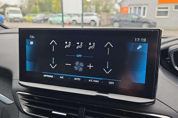 3D connected navigation with 10" HD touchscreen + voice recognition system, Apple car play and Android auto, Bluetooth telephone facility, Drive modes select (Eco, normal and sport), Driving Time Warning (DAA1), Emergency services call system, Extended traffic sign recognition, Exterior temperature indicator with ice warning, Front and rear parking sensors, Lane departure warning system, Mirror screen with mirror link, apple carplay and android auto, Multi function trip computer, Peugeot i-cockpit with compact multi-function sports steering wheel, PEUGEOT i-Cockpit with configurable 12.3" Head-up digital instrument panel, Speed limit recognition and recommendation, Dynamic stability control and electronic anti-skid system, Stop/start function, 6 speakers radio with mp3 compatible, DAB Digital radio, USB socket, Aluminium front door sills, Aluminium longitudinal roof bars, Automatic hazard light activation upon heavy brake application, Automatic triggered rear windscreen wiper in reverse gear, Black diamond roof, Black rubber side window trim, Black with chrome detailed front wing trim, Body colour door handles, Body colour rear roof spoiler with stainless steel edging trim, Body protectors (bottom of front and rear bumpers + wheel arches + protection at bottom of doors) in black, Chrome frameless 'Classic' grille, Chrome rear bumper facia, Dark tinted rear side windows + tailgate window, Diamond Black door mirror shells, Door mirror mounted LED courtesy floor lighting, Eco LED headlights, Electric folding door mirrors with exterior courtesy LED lighting, Electric operated/heated door mirrors, Front and rear door and sill protectors with polished stainless steel insert, Front bumper lower trim in Silver, Front windscreen wiper with magic wash cleaning system, Gloss black B and C pillar and aerodynamic deflector trim, Gloss black front bumper air scoops, Gloss black rear cluster connecting strip, Gloss black windscreen trim, Headlights left on audible warning, Heated rear windscreen with integrated antenna, LED daytime running lights, LED front indicator, LED rear number plate lighting, LED side indicator lights integrated into door mirrors, LED third brake light, One touch electric front/rear windows with pinch protection, Rear LED Peugeot signature 'Claw Effect' lights, Rear side wing doors, Stainless steel door sill scuff plates, Stainless steel roof arches, 1/3 to 2/3 split folding rear seats, 12V Sockets in dashboard, rear cabin and load area, 2 cupholders in front centre console, 2 cupholders in rear armrest, 2 x Rear reading spotlights, 2x Rear coat hooks, 3x Isofix child seat fittings in the front passenger and outer rear seats, 4 Grab handles retractable and damped, Aluminium pedals, Blue ambient lighting for connecting zone, Blue ambient lighting to front door panels, Blue ambient lighting to headup instrument panel, Brumeo fabric trimmed door armrests, Centre front armrest with butterfly wing opening and illuminated storage compartment, Driver seat lumbar adjustment, Driver seat manual adjustment (longitudinal and back rest angle), Dual zone automatic climate control, e-Toggle compact gear selector, Electric power steering with reach and rake adjustable steering column, Flocked glovebox interior, Foldable front passenger seat with picnic table, Footwell illumination, Front interior light with 2 reading spotlights and rear interior light with timer, Front passenger seat manual adjustment (longitudinal and back rest angle), Front seat back map pockets, Gear shift indicator, Height adjustable front seats, Illuminated glovebox, Individual left and right controls in boot for seat folding, Leather steering wheel with detail stitch, LED interior lighting in storage spaces and load area, LED roof interior lighting, Rear bench seat with central armrest and ski hatch, Rear centre console ventilation system, Roof lining - Mistral black, Satin chrome dashboard trim, Satin chrome digital instrument panel and touchscreen trim, Satin chrome front door panel recess trim, Satin chrome interior door handles, Satin chrome scorpion's tail and toggle switch trim, Seatbelt not fastened audible and visual alert for front seats, Seatbelt unfastened on the move audible and visual alert for front and rear seats, Sunvisors with illuminated vanity mirrors, Two position boot floor, Safety Plus Pack - 3008, Visibility pack - 3008, 3x Rear three-point retractable seatbelts with force limiters in the outer rear seats, ABS (Anti-lock Braking System) with EBD (Electronic Brakeforce Distribution) and EBA (Emergency Braking Assistance), Adaptive driver and front passenger airbags with passenger airbag deactivation function, Driver and front passenger side airbags, Electric child locking functionality on rear windows and doors, Electric parking brake, Front and rear curtain airbags, Front optimised safety headrests and 3 x rear retractable headrests with height adjustable, Front three point retractable seatbelts with pre tensioners and force limiters, Front ventilated disc brakes and rear disc brakes, Hill start assist, Two tone horn, Automatic door locking when moving off, Electronic immobiliser, key operated exterior door lock from the left hand door, Perimetric and volumetric alarm with lift and tilt sensor, Peugeot Open and Go System, Remote control central locking with two plip keys, Brumeo fabric Dashboard, front and rear door panel finish, Michelin e-primacy 225/55 R18 102V class A+ tyres, Puncture repair kit including compressor, sealant cartridge and towing eye,