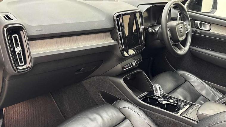 12.3" Progressive Driver Display, 360 degree surround view parking camera with side proximity sensors, 9" centre console portrait touch screen, Adjustable steering wheel force, Bluetooth hands free telephone kit, E-call, Front park assist, Google automatic services - Nav with google maps, apple carplay/android auto, voice recognition with google assistant, Hands free power tailgate, Lane keep assist with driver alert control, Oncoming Lane Mitigation, Rear park assist, Speed limiter, Speed sensitive steering, Wireless/Inductive Mobile Phone Charging, Dynamic chassis, DAB Digital radio, Premium Sound by Harman Kardon, Dolby Pro Logic II Surround Sound, Dirac Unison, 12 speakers/600W and subwoofer, Steering wheel mounted remote controls, Active bending pixel LED headlights with adaptive shadow technology, Active high beam incorporating daytime running lights, Adaptive brake lights with high level LED brake lights, Auto dimming interior mirror, Automatic headlamp levelling, Dark tinted windows for rear door side windows and cargo compartment, Front aluminium tread plates, Front and rear electric windows, Headlight cleaning system, High gloss black front and rear skid plate, High gloss black mesh front grille with high gloss black surround, High gloss black window trim, Home safe and approach lighting, Integrated roof rails in high gloss black, LED front fog lights, Power glass tilt and slide panoramic sunroof with sun curtain, Puddle lights, Rain sensor with automatic windscreen wiper activation, Rear side wing doors, Rear wiper, Roof antenna, Roof spoiler, Visible VIN plate, 12V socket in front tunnel console and luggage compartment, 2-Zone electronic climate control with CleanZone air quality system and pollen filter, 3 seat bench in 2nd row, 3 Spoke tailored steering wheel with chrome trim, 60/40 versatile split folding rear seat, A-pillar parking ticket holder, Ambient front door and instrumental panel lighting, Centre console cupholders and storage, Flexible load floor and grocery bag holder, Floor mats, Front door pocket and front cupholder illumination, Front footwell illumination, Front headrests, Front reading light and theatre lighting, Front seat cushion extensions, Front tunnel pocket, Glovebox bag hook, Heated front seats, Height adjustable passenger seat, Height/reach adjustable steering column, High gloss centre tunnel deco, Illuminated glovebox, Illuminated luggage compartment, Illuminated tailgate, Illuminated vanity mirrors, Integrated waste bin, Isofix attachments on outer rear seats, Load protection net, Multi directional lumbar support, Power driver seat with memory + exterior mirrors memory, Power folding rear headrests, Power passenger seat, Rear armrest / integral cup holders / storage tray, Rear reading and courtesy lights, Single front passenger seat, Underfloor cargo storage, Climate pack without heated front seats - XC40, Driver assist pack - XC40, 3x3 point rear seatbelts, City safety with steering support with Pedestrian + cyclist + front collision warning with full auto brake and rear auto brake, Drivers knee airbag, Dual stage driver/passenger airbags, Electronic parking brake with auto hold, First aid kit, Front and outer rear seatbelt reminder and pretensioners, Front seats SIPS airbags, Hill descent control, Hill start assist, Inflatable curtain, Passenger airbag cut-off device, Power child locks on rear doors, Road sign information display, Run off Road Mitigation, Run off Road Protection, SIPS (Side Impact Protection System), Slippery road and hazard light alert, Stability and Traction Control with Spin control, Engine Drag Control and Corner Traction Control, Tyre pressure monitoring system, Vehicle deceleration control with Anti-lock Brake System, Electronic Brake Distribution and Emergency Brake Assist, Warning triangle, WHIPS whiplash protection system - front, Anti-theft alarm including immobiliser/volume sensor + level sensor, Key integrated remote control central locking + fuel flap with deadlocking system and auto open/close power windows, Keyless drive includes keyless entry and keyless start, Locking wheel nuts,