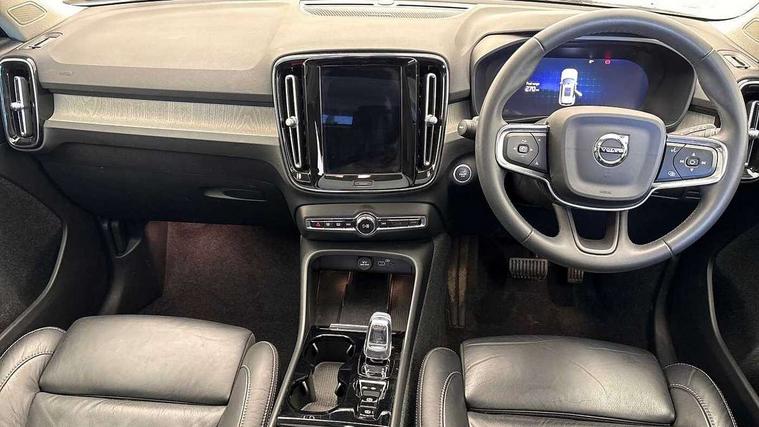 12.3" Progressive Driver Display, 360 degree surround view parking camera with side proximity sensors, 9" centre console portrait touch screen, Adjustable steering wheel force, Bluetooth hands free telephone kit, E-call, Front park assist, Google automatic services - Nav with google maps, apple carplay/android auto, voice recognition with google assistant, Hands free power tailgate, Lane keep assist with driver alert control, Oncoming Lane Mitigation, Rear park assist, Speed limiter, Speed sensitive steering, Wireless/Inductive Mobile Phone Charging, Dynamic chassis, DAB Digital radio, Premium Sound by Harman Kardon, Dolby Pro Logic II Surround Sound, Dirac Unison, 12 speakers/600W and subwoofer, Steering wheel mounted remote controls, Active bending pixel LED headlights with adaptive shadow technology, Active high beam incorporating daytime running lights, Adaptive brake lights with high level LED brake lights, Auto dimming interior mirror, Automatic headlamp levelling, Dark tinted windows for rear door side windows and cargo compartment, Front aluminium tread plates, Front and rear electric windows, Headlight cleaning system, High gloss black front and rear skid plate, High gloss black mesh front grille with high gloss black surround, High gloss black window trim, Home safe and approach lighting, Integrated roof rails in high gloss black, LED front fog lights, Power glass tilt and slide panoramic sunroof with sun curtain, Puddle lights, Rain sensor with automatic windscreen wiper activation, Rear side wing doors, Rear wiper, Roof antenna, Roof spoiler, Visible VIN plate, 12V socket in front tunnel console and luggage compartment, 2-Zone electronic climate control with CleanZone air quality system and pollen filter, 3 seat bench in 2nd row, 3 Spoke tailored steering wheel with chrome trim, 60/40 versatile split folding rear seat, A-pillar parking ticket holder, Ambient front door and instrumental panel lighting, Centre console cupholders and storage, Flexible load floor and grocery bag holder, Floor mats, Front door pocket and front cupholder illumination, Front footwell illumination, Front headrests, Front reading light and theatre lighting, Front seat cushion extensions, Front tunnel pocket, Glovebox bag hook, Heated front seats, Height adjustable passenger seat, Height/reach adjustable steering column, High gloss centre tunnel deco, Illuminated glovebox, Illuminated luggage compartment, Illuminated tailgate, Illuminated vanity mirrors, Integrated waste bin, Isofix attachments on outer rear seats, Load protection net, Multi directional lumbar support, Power driver seat with memory + exterior mirrors memory, Power folding rear headrests, Power passenger seat, Rear armrest / integral cup holders / storage tray, Rear reading and courtesy lights, Single front passenger seat, Underfloor cargo storage, Climate pack without heated front seats - XC40, Driver assist pack - XC40, 3x3 point rear seatbelts, City safety with steering support with Pedestrian + cyclist + front collision warning with full auto brake and rear auto brake, Drivers knee airbag, Dual stage driver/passenger airbags, Electronic parking brake with auto hold, First aid kit, Front and outer rear seatbelt reminder and pretensioners, Front seats SIPS airbags, Hill descent control, Hill start assist, Inflatable curtain, Passenger airbag cut-off device, Power child locks on rear doors, Road sign information display, Run off Road Mitigation, Run off Road Protection, SIPS (Side Impact Protection System), Slippery road and hazard light alert, Stability and Traction Control with Spin control, Engine Drag Control and Corner Traction Control, Tyre pressure monitoring system, Vehicle deceleration control with Anti-lock Brake System, Electronic Brake Distribution and Emergency Brake Assist, Warning triangle, WHIPS whiplash protection system - front, Anti-theft alarm including immobiliser/volume sensor + level sensor, Key integrated remote control central locking + fuel flap with deadlocking system and auto open/close power windows, Keyless drive includes keyless entry and keyless start, Locking wheel nuts,