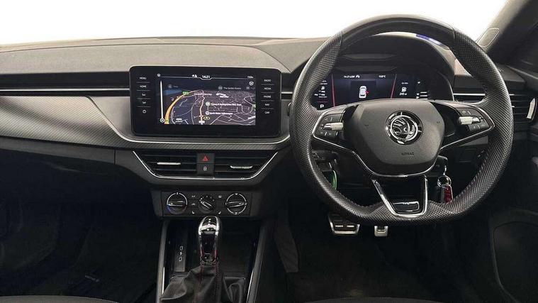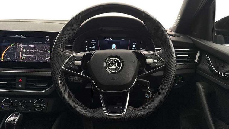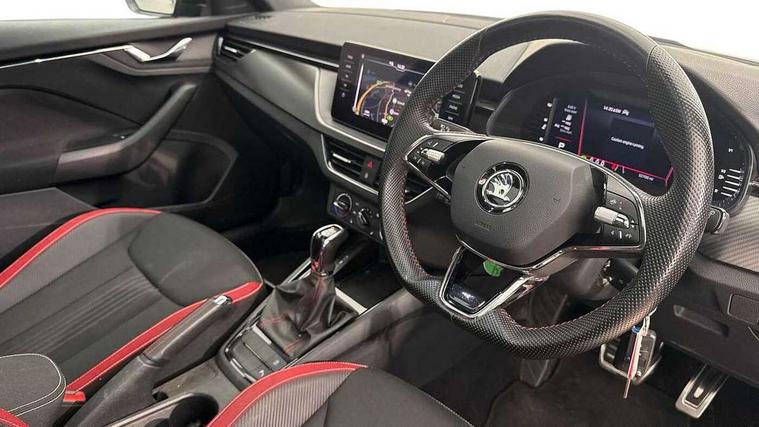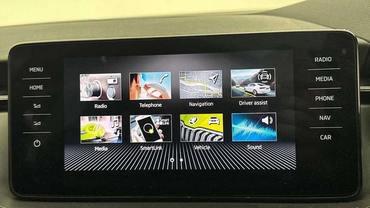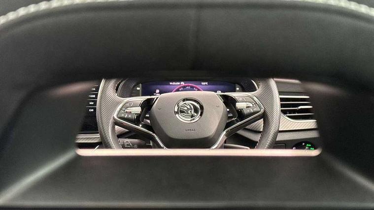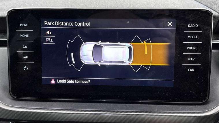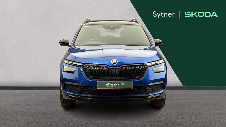 Amundsen satellite navigation with 9.2" touchscreen display, voice control, virtual cockpit and web radio, Bluetooth system, E-call, Front assist system, Gesture control, PAS, Service indicator, Speed limiter, Virtual cockpit with 10.25" display, Wireless SmartLink for apple car play, android auto and mirrorlink, 8 Speakers, Auxiliary input socket, DAB Digital radio, Black door mirrors, Black radiator grille, Black rear diffuser, Body colour bumpers, Body colour door handles, Body colour roof spoiler, Boot lettering in black, Chrome grille surround, Dimming rear view mirror with black surround, Electrically adjustable and heated door mirrors, Fixed panoramic sunroof with black roof rails, Front and rear electric windows, Front sport bumper, Full LED headlights with adaptive front light system, dynamic indicators, cornering function and fog lights, Headlight range control, Heated rear window, High functionality rear led lights with dynamic indicators, KAMIQ Door sills, Light sensors, Monte carlo plaque, Privacy glass, Rear fog lights, Rear side wing doors, Rear wiper, 12V Accessory socket in centre console, 3 seat bench in 2nd row, Aluminium pedals, Black ceiling for black/beige interior, Chrome inner door handles, Cloth upholstery, Front head restraints, Glove compartment with illumination, Ice scraper, Isofix child seat fittings on outer rear seats, ISOFIX on front passenger seat, Leather gear lever, Manual lumbar support for front seats, Rake/reach adjustable steering wheel, Reading lights, Single front passenger seat, Sports seats, Sun visors with illumination on front passenger, Textile floor mats, Third rear headrest, Top tether for front passenger seat, Umbrella in driver's door, 3x3 point rear seatbelts, Airbags - driver and front passenger, ESP, Front passenger airbag deactivation switch, Front side airbags with curtain airbags, Hill hold control, Manual parking brake, Manual rear child locks, One tone horn, Rear disc brakes, Seatbelt reminder for driver an co-driver, Traction control, Tyre pressure monitor, Anti-theft alarm system with interior monitoring, backup horn, towing protection and remote central locking with SAFE system, Anti-theft wheel bolts, Electronic engine immobilizer, Chrome air vent surrounds, 18" Vega alloy wheels in black,