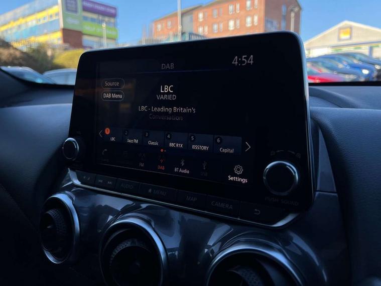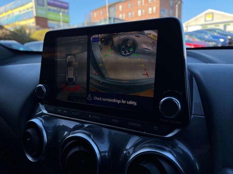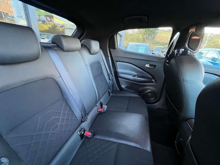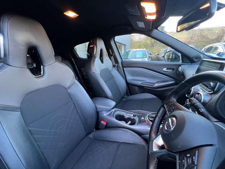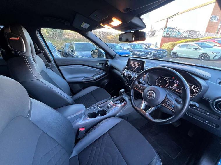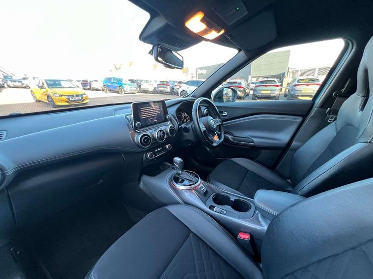 7" full colour TFT screen combimeter, Apple CarPlay and Google Android auto, Drive modes select (Eco, normal and sport), eCall emergency call system, Emergency and breakdown call, Front parking sensor, Idle start/stop system, Intelligent lane intervention, Lane departure warning system, Nissan connect 8" touch screen entertainment system, Nissan connect nav with TomTom traffic, Nissan connect services and Wifi connection, Outside temperature sensor, Power Steering, Rear parking sensor, Traffic sign recognition, Trip computer, Voice recognition, Gasoline particulate filter, Bluetooth system, USB, Aux-in and 12V socket, Bose personal plus audio system with 8 speakers(4 speakers and 2 headrest speaker for driver and passenger seats), Bose personal sound stage control, DAB Digital radio, Rear console USB port, Auto dimming interior rear view mirror, Auto headlights, Automatic hazard signal with emergency stop signal, Body colour bumpers, Body colour door handles, Electrically adjustable door mirrors with integrated indicators, Follow me home headlights, Front and rear electric window with one touch driver window, Heated and auto folding door mirrors, High beam assist, LED daytime running lights, LED front fog lights, LED headlamps, LED rear fog lamp, LED rear lamps, Rain sensor windscreen wipers, Rear privacy glass, Rear side wing doors, Rear wiper, Thermaclear heated windscreen, Three blink turn signal, 3 height adjustable rear headrests, 3 seat bench in 2nd row, 60/40 split folding rear seat, Automatic climate control, Card holder on driver sunvisor, Cloth/Synthetic leather upholstery, Door ambient lighting, Driver and passenger sliding and reclining seats, Driver seat back pocket, Driver side rear coat hanger, Driver/passenger sunvisors and vanity mirrors, Front and rear cabin lights, Front armrest, Front door pockets with bottle holders, Front head restraints, Front passenger isofix child seat anchorage point, Front/rear passenger grab handles, Gear console ambient circle lighting, Grey synthetic leather kneepad, Heated front seats, Height adjustable driver's seat, Height adjustable passenger seat, Internal chrome door handles, Leather gearshift knob, Leather steering wheel, Luggage board, Luggage space lighting, Monoform sporty seats, Multifunction steering wheel, Passenger seat back pocket, Rear door bottle holders, Single front passenger seat, Steering wheel mounted gearshift paddles, Telescopic steering wheel adjustment, Two cupholders in front centre console, Two rear isofix child seat anchorage points with top tether, Welcome light and console tray ambient lighting, ProPilot pack - Juke, ABS with EBD and brake assist, Active ride control, Active Trace Control, Driver and passenger airbags, Driver and passenger side airbags, Electric handbrake with auto hold function, Electronic Stability Programme (ESP), Front and rear curtain airbags, Height adjustable seatbelts, Hill start assist, Intelligent emergency braking with pedestrian and cyclist recognition, Rear door child safety locks, Seatbelt reminder for driver/front passenger and rear seats, Single tone horn, Three 3 point rear seatbelts, Traction control, Tyre pressure monitoring system, VDC Dynamic Vehicle Control, Ventilated rear brake discs, Alarm, Immobiliser, Intelligent Key with push button starter, Remote central locking,