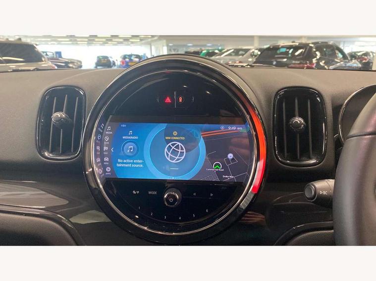 Active Guard incl speed limiting and lane departure functions with auto steering, and front collision warning with brake intervention, Automatic start/stop function with brake energy recuperation, Compatible mobile phone bluetooth with audio streaming, Cruise control with brake assist, Electro-mechanical speed dependant steering assistance, Instrument cluster, Mini E-call, On board computer, Rear parking distance control, 51 Litre fuel tank, Double Vanos system, Fully variable valve control, High precision injection, Performance Control, Steptronic transmission with double clutch, FM tuner and DAB digital radio, 3rd brake light, Body colour fuel filler cap, Day time driving lights, Door sill strips, Dynamic brake lights, Electric windows, Heated rear window, Heated windscreen washer jets, LED fog lights, LED Headlights, Left exhaust tailpipe with chrome finisher, Model logo, Model logo on Tailgate, Radiator grille, Rain sensor with auto headlights, Rear fog lights, Rear side wing doors, Rear window wiper, Side scuttle panel with integrated indicator, Split rear doors, Sun/heat protection glass, White indicator lenses, 12V socket in centre console, 3 seat bench in 2nd row, 3 spoke sport leather steering wheel + limiter function and audio controls, 360L luggage compartment capacity, 4 lashing eyes in luggage compartment, 40:20:40 split folding rear seats, Chrome interior highlights, Colour line - Carbon black, Cupholders, English handbook, Floor mats, Front headrests, Glove compartment, Headliner with grab handles and clothes hooks, Height and length steering column adjustment, Interior lighting with 12 basic colours selectable via toggle switch in roof, Isofix rear child seat preparation, Leather gearshift lever and handbrake gaiters, LED reading lights, vanity mirror lights, front foot well light and spotlight on front seats, Manual air conditioning, Mechanical seat adjustment, driver seat height adjust, forward/back and front seats backrest, Multifunction steering wheel, Passenger seat height adjuster, Rear headrests, Single front passenger seat, Storage compartments in doors, Sunvisors with vanity mirrors, Excitement pack - Countryman, Navigation pack - Countryman, 2 tone horn, 3 point seatbelts on all seats, 6 Airbags - front, side, head and seat belt tensioners, Anti-lock braking system (ABS), DSC - Dynamic Stability Control, Electronic handbrake, Front and rear disc brakes, Hill start assist, Manual rear child locks, Tyre pressure monitoring system, Alarm system with tilt sensor, monitoring doors, bonnet interior and tailgate, Auto drive away locking, Deadlocking function, Electronic vehicle immobiliser, Locking wheel bolts, Start/stop toggle with keyless go, Tool kit,