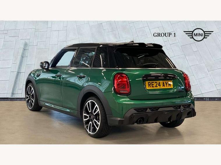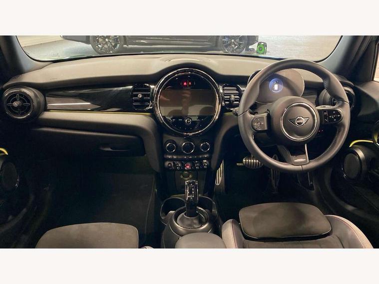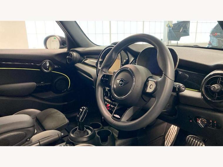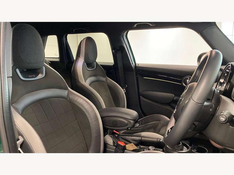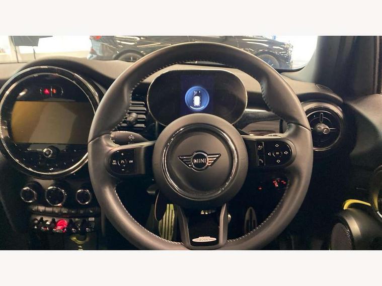Apple CarPlay, Automatic start/stop function with brake energy recuperation, Compatible mobile phone bluetooth with audio streaming, Electro-mechanical speed dependant steering assistance, Flexible car sharing preparation, MINI Driving Modes - centre toggle switch to control driving setting (sport, mid and green), Mini E-call, MINI TeleServices, On board computer, Rear park distance control, Service interval indicator, Adaptive suspension, Double Vanos system, Fully variable valve control, Gear change indicator display, High precision injection, Performance Control, Steptronic transmission with double clutch, 8.8" touchscreen with LED ring, FM tuner and DAB digital radio, 3rd brake light, Automatic headlight activation switch, Body colour fuel filler cap, Chrome border high gloss black slats radiator grille, Dynamic brake lights, Electric front+rear windows, Exhaust tailpipe on left with chrome finisher, Heated rear window, Heated windscreen washer jets, JCW Aerodynamic kit - Front and rear bumpers with sporty JCW styling and part-painted side sills with MINI John Cooper Works door sill finishers, John Cooper Works rear spoiler, Metal door sill strips with MINI imprint, Model logo Cooper on right of tailgate, Rain sensor window wipers, Rear fog lights, Rear LED lights with union jack design, Rear side wing doors, Rear window wiper, Side scuttle panel with integrated indicator, Sun/heat protection glass, White indicator lenses, 12V Accessory socket in centre console, 3 seat bench in 2nd row, 4 lashing eyes in luggage compartment, 60/40 split folding rear seat, Anthracite headliner including grab handles and clothes hooks, Carbon black colour line - Knee roll and door armrest, Chrome interior highlights, Cupholders, Front and rear isofix with front passenger airbag deactivation, Front and rear velour floor mats, Glove compartment, Height and length steering column adjustment, Interior lighting with 12 different colours across the dashboard, underneath door bezel with illuminated laser-engraved design on central display, JCW Sport seats with integrated headrests, adjustable thigh support and John Cooper Works logo, Leatherette gearshift lever and handbrake gaiters, LED reading lights, vanity mirror lights, front foot well light and spotlight on front seats, Mechanical seat adjustment - forward/back & backrest for front seats and driver seat height adjust, Multifunction steering wheel, Single front passenger seat, Storage compartments in doors, Sunvisors with vanity mirrors, Walknappa leather steering wheel with grey seam and John Cooper Works badge on Piano Black lower steering wheel spoke, Piano black exterior pack - Mini Hatchback Cooper, 3 point seatbelts on all five seats, 6 Airbags - front, side, head and seat belt tensioners, Anti-lock braking system (ABS), Child locks on rear doors, DSC - Dynamic Stability Control, Front and rear disc brakes, Hill start assist, Single tone fanfare horn, Tyre pressure monitoring system, Alarm system with tilt sensor, monitoring doors, bonnet interior and tailgate, Electronic vehicle immobiliser, Start/stop toggle with keyless go, Piano black interior trim, Tool kit,