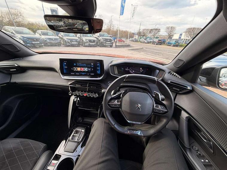Blind spot monitoring, Bluetooth telephone facility, Connected 3D navigation, Driver attention warning, e-Toggle driving selector, Exterior temperature indicator with ice warning, Lane keep assist, Mirror screen with mirror link, apple carplay and android auto, Multi function trip computer, PEUGEOT i-Cockpit with 10" capacitive colour touchscreen, PEUGEOT i-Cockpit with compact steering wheel, PEUGEOT i-Cockpit with configurable 3D headup instrument panel, PEUGEOT SOS and assistance, Smart phone docking station, Speed limit recognition and recommendation, Start/stop system, Visio Park 1 with 180 degree Colour reversing camera, 2 front USB socket with USB-C, 2 USB sockets in rear, DAB Radio (Digital Audio Broadcasting), Voice recognition for radio, navigation and telephony features, 2 X Rear number plate lights, Acoustic windscreen, Automatic front windscreen wipers, Automatic hazard light activation upon heavy brake application, Black diamond roof, Black front wing trim with gloss black detail and GT badging, Body coloured exterior door handles, Chrome Lion Badge front and rear, Dark tinted rear side and tailgate windows, Diamond black mirror shells, Diamond black rear spoiler (roof), Electric, heated, and power folding door mirrors, Frameless electrochrome interior rear view mirror, Front bumper - Silver lower trim, Full LED headlights with smartbeam assist, Gloss black finish on B pillar, Gloss black longitudinal roof rails, Gloss black rear cluster connecting strip, Gloss black roof bars, Gloss black window surround, GT model designation badging on tailgate, Headlights left on audible warning, LED daytime running lights with 3 claw headlight with distinctive tooth design, LED front fog lamps with remote cornering function, LED side indicator lights integrated into door mirrors, LED third brake light, Model designation badges front and rear, One touch electric front/rear windows with pinch protection, Radiator grille - Dark chrome chequered and gloss black edge trim, Radiator grille - gloss black top edge trim, Rear full LED 3D peugeot signature claw effect lights with daylight function, Rear reversing lights, Rear side wing doors, Rear windscreen wiper triggered automatically in reverse gear, Stainless steel door sill scuff plates, Tailgate with heated rear windscreen and wiper blade, Trailer Stability Programme, Twin chromed exhaust pipes, Variable front intermittent wipers, Welcome lighting, Wheel arch extensions, 1/3 to 2/3 split folding rear seats, 12v power outlet - front, 12V socket, 3 seat bench in 2nd row, 8 Colour personalisable ambient lighting, Aluminium pedals, Automatic air conditioning with pollen and active carbon filter, Central front armrest with storage compartment, Driver and front passenger sport seats, Electric power steering with reach and rake adjustable steering column, Front and rear carpet mats in black with lime green stitch detail, Front centre armrest, Front LED interior light with 2 reading spotlights and rear interior light with timer, Front passenger seat manual adjustment - height, longitudinal and back rest angle, High centre console, ISOFIX child seat mounting points on passenger seat, Lime green contrast stitching to front centre console, door panels and dashboard facia, Mistral full-grain perforated leather steering wheel with Lime Green stitch detail and satin chrome 'GT' emblem, Modular boot floor, Multifunction steering wheel, Paddle shifts, Piano keys: Gloss black and chrome toggle switches to access main functions of the vehicle and touchscreen functions, Roof lining - Mistral black, Seatbelt unfastened on the move audible and visual alert for front and rear seats, Single front passenger seat, Switch for Push Button Start finished in black with chrome surround, Drive assist Plus pack - 2008, Visibility pack - 2008, 2x 2nd row ISOFIX child seat mountings, ABS (Anti-lock Braking System) with EBD (Electronic Brakeforce Distribution) and EBA (Emergency Braking Assistance), Acoustic vehicle alerting system, Active safety brake with night function/cyclists/pedestrians, Adaptive driver and front passenger airbags with passenger airbag deactivation function, Child locking functionality on rear doors, Driver/front passenger side airbags, Electric parking brake, ESP (Electronic Stability Program) + Hill Start Assist, Front and rear curtain airbags, Front and rear disc brakes, Front and rear three-point retractable seatbelts, with force limiters, Front optimised safety headrests and rear retractable headrests (x3), height adjustable, Tyre pressure sensor, Alarm system with anti-lift sensor, Automatic door locking when moving off, Deadlocks, Electronic code immobiliser, Exterior door lock x1 (Left-hand or passenger’s side), Peugeot Open and Go (keyless entry and push button start), Remote central locking, Carbon effect Dashboard, front and rear door panel finish,