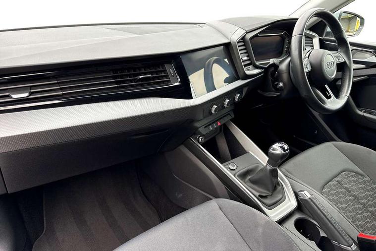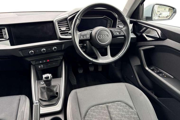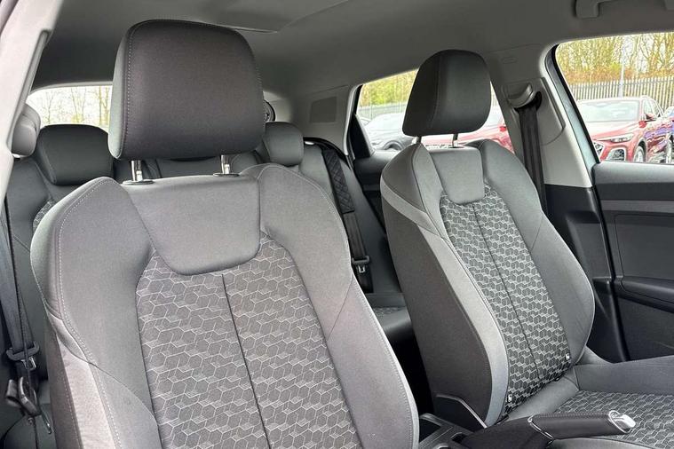 10.25" Digital instrument cluster display classis style instrument dials + speed, odometer, time, outside temperature, telephone menu + fuel level warning, Audi smartphone interface with connect compatible smartphone via USB directly MMI display + Nav, music, third party apps controlled via MMI controller, Automatic start/stop system, Bluetooth interface, Cruise control, Driver's information system, Electromechanical power steering, Emergency e-call, Lane departure warning system, Rear parking sensor, Service interval indicator, Speed limiter, Voice control system, Washer fluid level indicator, Dynamic suspension, 2 x USB type C connection points, 6 passive loudspeakers, DAB Digital radio, MMI radio plus with 10.1" colour MMI display screen and MMI touch, Auto dimming rear view mirror, Body coloured bumpers, Body coloured door mirrors, Electric front and rear windows, Electrically adjustable, heated, folding door mirrors with integrated LED side indicator, Front side air inlets in grained matt black and C frame in anthracite black, Heat insulating glass windscreen and side windows, Heated rear windscreen, High level LED brake light, LED headlights with LED rear lights + dynamic rear indicators + headlight adjustment and high beam, turning light + LED daytime running lights, Radiator grille and rear diffuser in matt anthracite black, Radiator protective grille frame in matt aluminium silver, Rain and light sensors, Rear fog lights, Rear side wing doors, Rear wiper, Side front spoiler lips in grained matt black, 12V socket in centre console with two cup holders, 3 rear seats with headrests, 3 seat bench in 2nd row, 3 spoke leather multifunction plus steering wheel, 40:60 Split folding rear seat or folded fully, Black front and rear floor mats, Door sill trims with aluminium inlay, Driver and passenger seat with manual height adjust with forward and backwards adjustment, Front head restraints, Front passenger seat, Grey cloth headlining, Height and reach adjustable steering wheel, ISOFIX child seat mounting for front passenger and outer rear seats including top tether attachment point of outer rear seats, Leather gear knob with aluminium trim, Leather handbrake grip, Luggage compartment light with front and rear reading lights, Manual air conditioning, Manually adjustable lumbar support in front seats, Novum cloth upholstery with front sport seats, Luggage compartment pack - A1, 3x3 point rear seatbelts, Audi pre-sense front with pedestrain and cyclist recognition, Brake assist function, Driver and front passenger airbag with front side and head airbags, Electronic Stability Control including ABS, EBD, ASR and EDL, Front passenger airbag deactivation switch, Hill hold assist, Manual rear child locks, Seatbelt height adjustment for front seats, Seatbelt monitoring, Tyre pressure warning light, Warning triangle and first aid kit, Anti theft alarm, Anti theft wheel bolts and loose wheel warning, Immobiliser, Remote central locking with 2 foldaway keys, Aluminium trim for control switches, air vents and digital instrument cluster, Black dashboard, Silver grey accent areas including air vents, door handle recesses and centre console in diamond paint finish, Slate grey inlays polygon structure in fine paint finish,