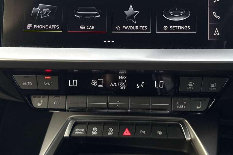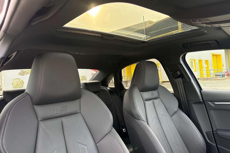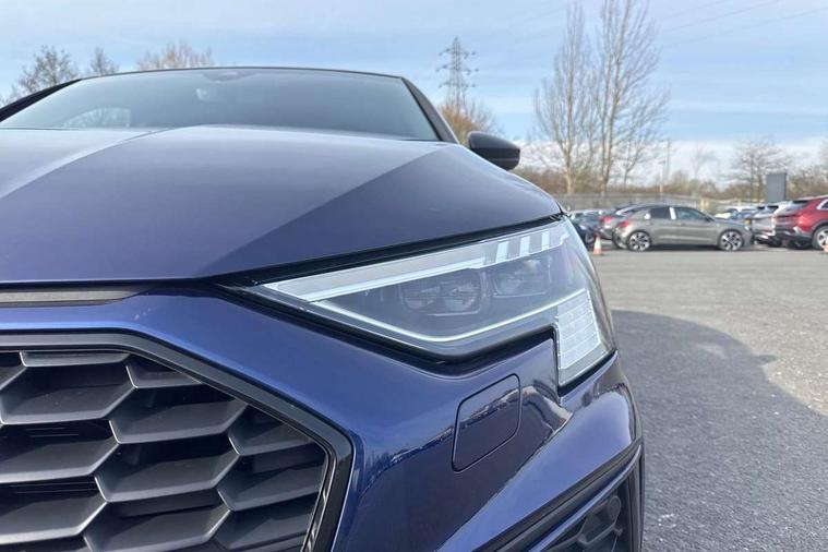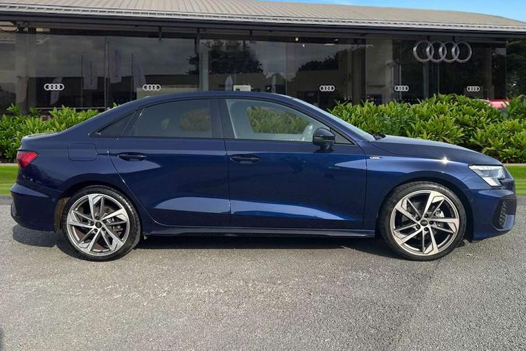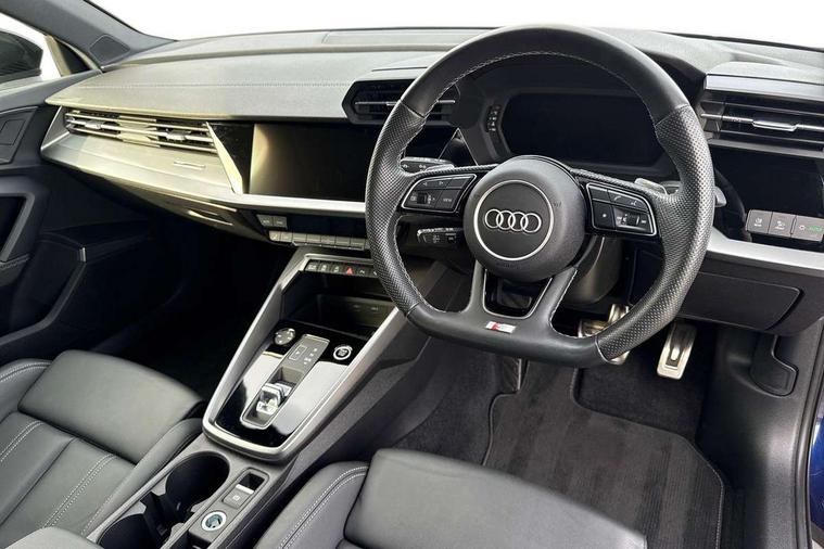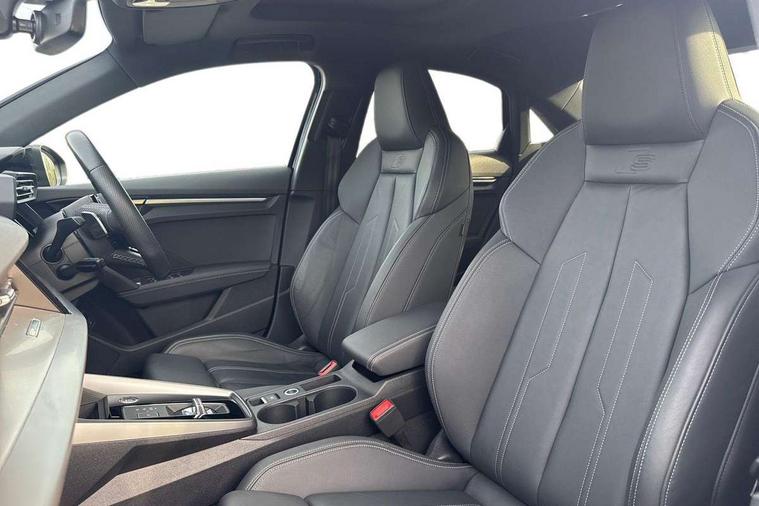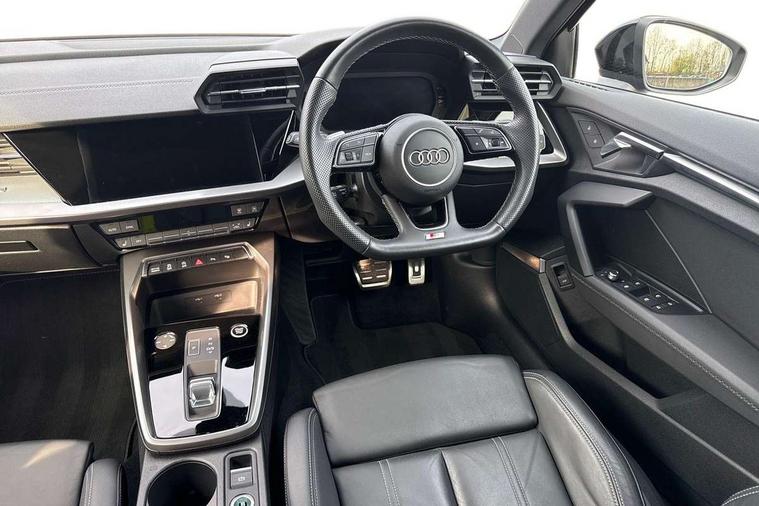 Audi drive select (Auto, Comfort, Dynamic, Efficiency and Individual), Audi smartphone interface, Audi Virtual Cockpit - 10.25" digital and colour instrument cluster, Automatic start/stop system with recuperation, Bluetooth interface, Camera based traffic sign recognition, Collision avoidance assistant, e-Call (emergency call), Electromechanical power speed sensitive steering, Lane departure warning system, MMI Navigation Plus with high resolution 10.1" colour touch screen display, Service indicator, Trip computer, Voice control system with natural language interaction, Sports suspension, 2xUSB-C connection with data and charging functions, 6 passive loudspeakers, CD player, DAB Digital radio, 3rd brake light, Acoustic glass windscreen, Audi beam uses LEDs to project the Audi logo onto the ground as you exit your A3, Auto dimming frameless rear view mirror, Electrically adjustable/heated/folding/dimming door mirrors with kerb view includes integrated LED indications + kerb view function for passenger side, Front electric windows, Illuminated door sills with aluminium inserts at the front with S logo, LED daytime running lights, LED headlights with LED rear lights and dynamic rear indicators, Light and rain sensors, Model and engine designation badges at rear, Privacy glass - dark tinted rear window, rear door and side windows, Rear boot, Rear electric windows, Rear side wing doors, S roof spoiler, 12V socket and storage compartment in front centre console, 3 seat bench in 2nd row, 3 spoke flat bottomed leather multifunction sport steering wheel with gear shift paddles, 4 way electrically adjustable lumbar support for driver and front passenger, 60/40 split folding rear seat bench, Black cloth headlining, Dual zone electronic climate control, Front and rear centre armrest in artificial leather, Front and rear headrests, Front/rear floor mats, Height and reach adjustable steering wheel, Interior lighting - glove compartment light and right hand side, Luggage compartment floor covering, Manual boot compartment lid, Single front passenger seat, Stainless steel pedals and front footrest in black, Twin leather upholstery with front sports seats S embossed logo, Aluminium interior elements pack - A3 Saloon, Black styling pack - A3 Saloon/Black edition, LED interior lighting pack - A3 Saloon, 3x3 point rear seat belts, Driver and front passenger airbag with passenger airbag deactivation, Electronic Stabilisation Control (ESC) including ABS, ASR and EDL, First aid kit with warning triangle and 2 safety vests, Front side airbags with head airbags and interaction airbag, Pre-sense front with pedestrian and cyclist detection, Seatbelt monitoring, Tyre pressure loss indicator, Anti theft alarm, Anti-theft wheel bolts, Electronically operated child locks, Immobiliser, Remote control central locking, Aluminium air vent surrounds, Dark spectrum aluminium inlays, accent surfaces in the dashboard and centre console in platinum grey silk effect paint finish, 19" 5 arm trapezoid design alloy wheels in matt grey with diamond cut finish,