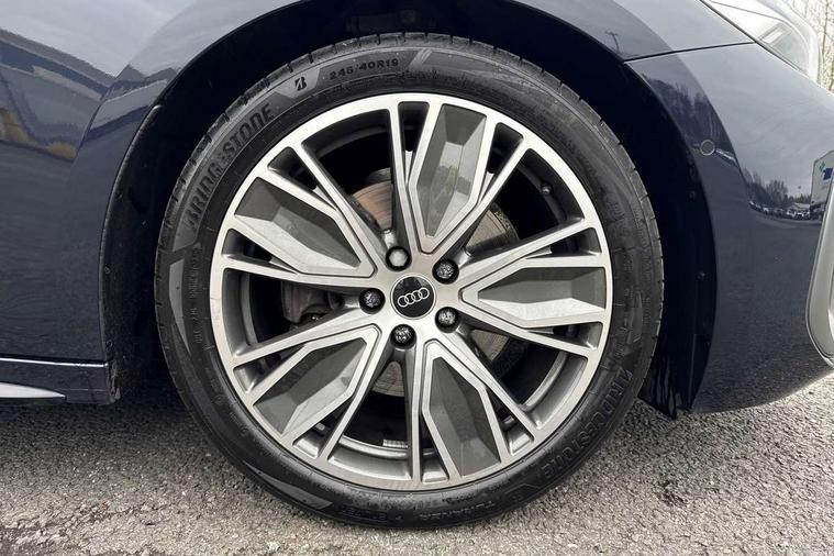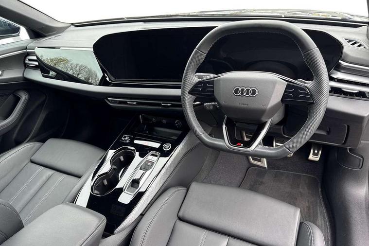 Adaptive cruise control, Advanced driver attention and fatigue montior, Audi application store, Audi assistant, Audi connect emergency call and service, Audi drive select, Audi virtual cockpit plus with 11.9" OLED colour display, Automatic start/stop system with coasting functionality, Camera based traffic sign recognition, Intersection assist, Lane departure warning, MMI navigation plus with high resolution 14.5" OLED touchscreen colour display, Park assist plus, Parking system plus with 360 display, Progressive steering with servotronic, Rear view camera, Smartphone interface, Swerve assist and turn assist, Traffic sign based speed limiter, Sports suspension lowered by 20mm, 2 USB-C ports in both the front and rear, Audi sound system impressive sound with 8 loudspeakers including centre speaker and subwoofer, 6-channel amplifier with a total output of 180 watts, DAB digital radio reception, Smartphone compartment with wireless charging, Aluminium roof rails, Aluminium window trims, Auto dimming rear view mirror, Body colour door mirrors, Door mirrors - electrically adjustable, heated, folding and auto dimming on both sides, Front and rear electric windows, Front door sill trims with aluminium inlays, illuminated with 'S' logo, High beam assist, LED headlights Plus incl. digital daytime running lights, turning light, all-weather light, motorway light, manouevring light and intersection light, LED rear lights pro incl. dynamic rear indicators and illuminated light strip with animated coming and leaving home function, LED third brake light, Privacy glass, Rear and side windows with heat insulating glass, Rear side wing doors, Rear wash/wipe, S Line badges on the front wings, S line bumpers, radiator grille and diffuser in phantom black and diffuser insert in matt anthracite, White rhombus logo projection light in exterior mirrors, Windscreen with acoustic glazing, 3 rear headrests, 3 seat rear bench, 3 spoke leather steering wheel with multi-function buttons with touch control, flattened on top and bottom, with S badging and contrast stitching, 3-zone automatic climate control, 40:20:40 split folding rear seat bench with centre armrest and cup holders, Comfort front centre armrest, Front and rear floor mats, Front seats with manual adjustment for position and 4-way electric lumbar support, Front sport seats with integrated headrest and S embossed logo, Headlining in black cloth, Heated front seats, i-Size child seat mounting on the front passenger side and outer rear seats, i-Size and top tether on the outer rear seats, Luggage compartment lid, electrically opening and closing, Manual steering column height and depth adjustment, Single front passenger seat, Stainless steel pedals and footrest, Steering wheel grips in perforated leather and shift paddles, Ambient lighting package plus - A5, 3x3 point rear seat belts, Driver airbag, Electric child safety locks, First aid kit with warning triangle and vests, Front emergency brake assist, Front passenger airbag, Front passenger airbag deactivation, Front side airbags with head airbag system and front interaction airbag, Hill hold assist, Seat belt monitoring with rear seat occupant reminder, Tyre pressure loss indicator, Anti theft alarm, Anti-theft wheel bolts, Keyless Go, Accent surfaces and control buttons in gloss black, Black dashboard with contrast stitching, Inlays in matt brushed aluminium with linear embossing, anthracite, Softwrap in leatherette with contrast stitching, Upper and lower interior elements in leatherette, Tyre repair kit,