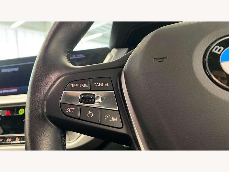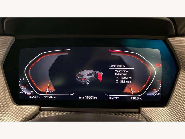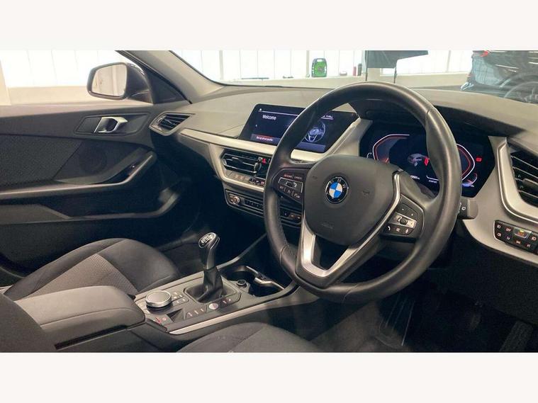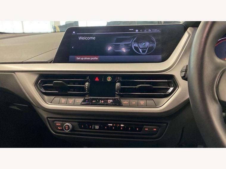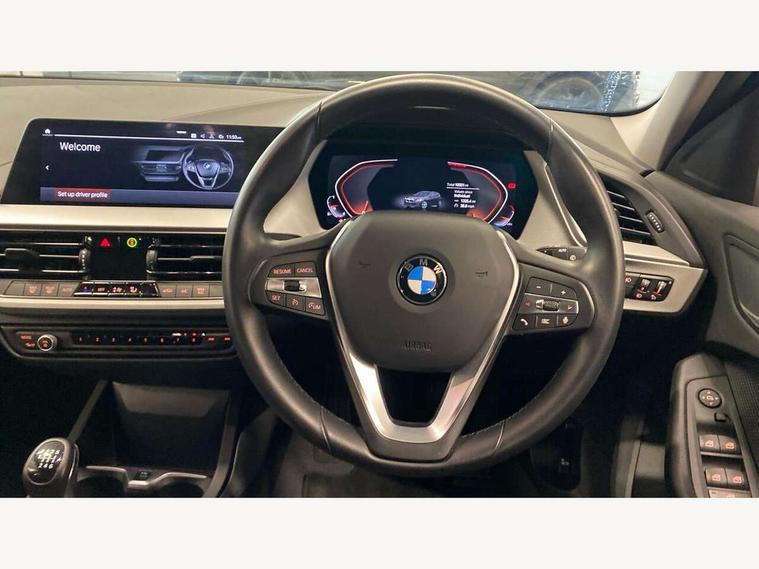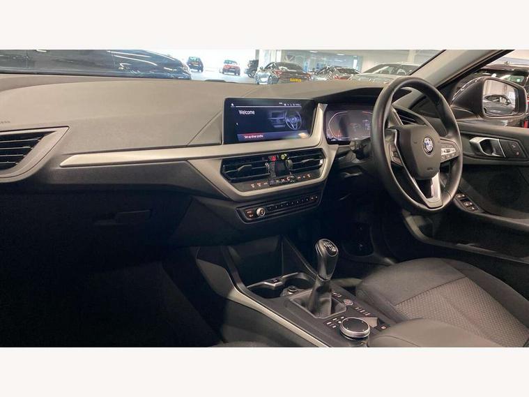 Active guard plus, Attentiveness assist, BMW ConnectedDrive online services, BMW Teleservices, Check Control warning system for monitoring of lights and door/luggage compartment open warning, Cruise control with brake assist, Eco pro mode, Electric power steering with Servotronic steering optimised at all speed ranges, Front axle single joint with specific axle kinematics to minimise drive influences on steering + provide increased rigidity agile driving behaviour, Integrated owners handbook, Lane departure warning system, Oil sensor for level and grade, On board computer, Optimum shift indicator, Personal Profile, Pull away assistant, Rigidly mounted rear subframe - Multi link construction with separate spring / damper configuration and excellent driving characteristics, Speed limit Info including no-overtaking indicator, Speed limiter, Aluminium lightweight construction, Anti roll bar front and rear, Balancer shaft, Double VANOS twin scroll turbocharging system, Drive Performance Control, Electronic differential lock, High precision injection, Petrol Particulate Filter, Suspension with twin tube gas filled shock absorbers with degressive characteristic curve, VALVETRONIC engine management, DAB Digital radio, Auto dimming rear view mirror, Automatic windscreen wipers and automatic headlight, Body colour door handles, Body colour mirror caps, Chrome exhaust twin tailpipes round 90mm in left, Direction indicator side lights in exterior mirrors, Fading support, Follow me home headlights, Front and rear bumper system with replaceable deformation elements, Front and rear electric windows with open and close fingertip control, anti trap facility and comfort closing, Front door sill finishers in black plastic with BMW designation, Green tinted heat protection glazing, Heated, electrically adjustable exterior mirror aspheric on driver side, convex on passenger side, High level third brake light, Integrated front windscreen with washer jets, Kidney grille with chrome frame with 14 High-gloss Black struts, LED daytime running lights, LED eyebrow turn indicators, LED front fog lights, LED Headlights, Lightweight engineering, Manual headlight beam throw control, Manual headlight levelling, Matt black air guide grilles, Matt black roof moulding, B pillar finisher and wheel arch trim, Matt black window frame, Matt black window recess finisher, Model designation on electric bootlid, Nearside reverse light in rear light cluster, Preparation for high beam assistant, Rear fog lights, Rear side wing doors, Rear window wiper, Shark fin antenna, Trailer stabilisation logic, Visible VIN plate, Welcome lighting, 12V power socket in front centre console with blanking plug, 3 rear seat head restraints, 3 seat bench in 2nd row, 3 spoke sports leather steering wheel in black leather with black stitching and decorative finisher in pearl chrome + gearshift lever knob in leather, Black boot net with lashing eyes, Cargo function on 2nd seat row, Child seat ISOFIX attachment for two outer rear seats and front passenger seat with anchorage points, Conditioned based service, Folding rear clothes hook, Four grab handles integrated in roof lining, Front and rear door pockets with bottle holders, Front and rear side armrest integrated into door trim, Front armrest, Glove compartment, Height adjustable front head restraints, Luggage compartment for bag hooks on left and right, foldable luggage compartment liner and four lashing eyelets, Manual adjust steering wheel, Multi-function controls for steering wheel, Single front passenger seat, Single zone automatic air conditioning, Storage compartment in centre console, Sun visors with vanity mirrors and insert tab, Two front centre console cupholders, Velour floor mats, BMW live cockpit professional pack- 1 Series, Connected pack professional - 1 Series, Interior lights pack - 1 Series, 2 tone horn, 3 point seatbelts on all seats, front pyrotechnic belt tensioners, stopper and belt force limiters, rear coded belt buckles, Airbags - Front driver/passenger, front and rear curtain head protection, front side, manual deactivation of front passenger airbag, Anti lock braking system (ABS) with brake assist, BMW emergency call, Brake drying, Braking readiness, Child proof locking system in rear door, City braking function, Comfort modes, Cornering brake control, Crash sensor activating central locking release, hazard warning lights, fuel cut off, interior lighting + activation of safety battery terminal clamp, Driver and front passenger seat belt security check, Dynamic stability control + (DSC+), Dynamic Traction Control - DTC, Electrically operated hand brake, Front and rear disc brakes, Seatbelt warning, Side impact protection, Tyre pressure monitoring system, Warning triangle and first aid kit, Central locking switch for all doors, fuel filler cap and luggage compartment, Deadlocking function system to all doors, Drive away locking system on all doors and luggage compartment with de-activated in iDrive settings, Locking wheel bolts, Remote central locking with two Integrate key, one button for opening and closing all lock, open and close window, button for open luggage compartment, Start/stop button illuminated in centre console with keyless engine start and auto start stop deactivation button, Thatcham Cat.1 alarm and immobiliser, Wheel slip limitation close to the actuator (ARB), Quartz Silver matt interior trim, Electrically powered 12V compressor, Reduced rolling resistance tyres,