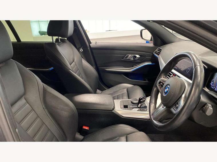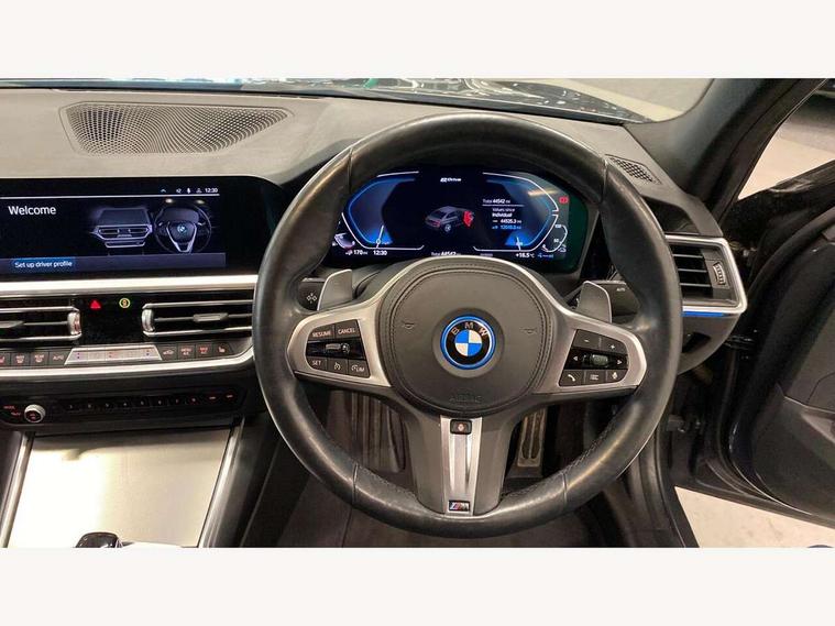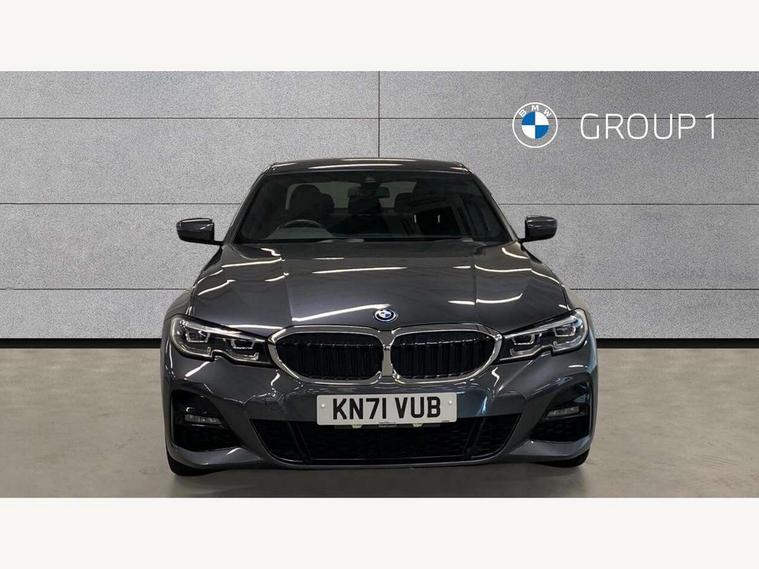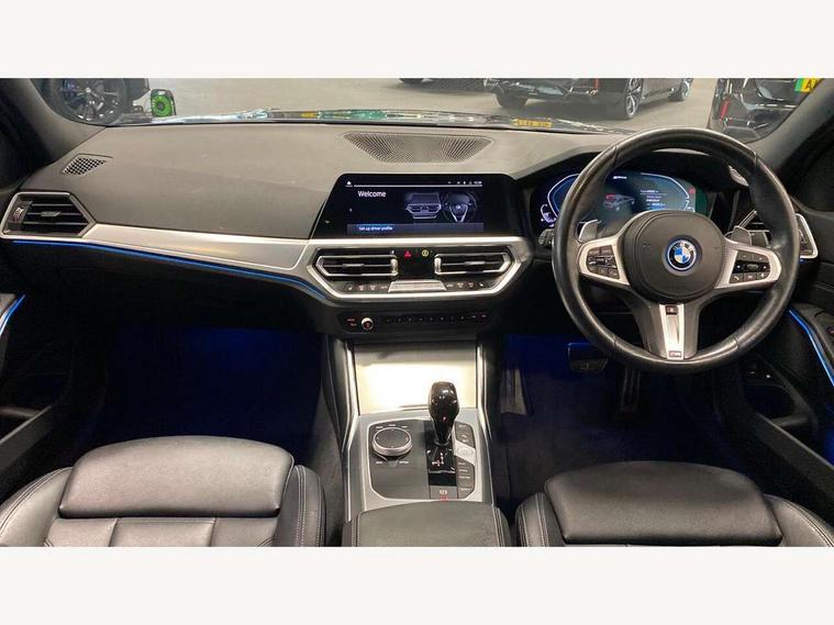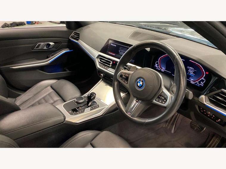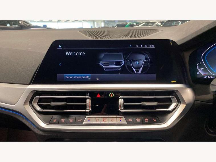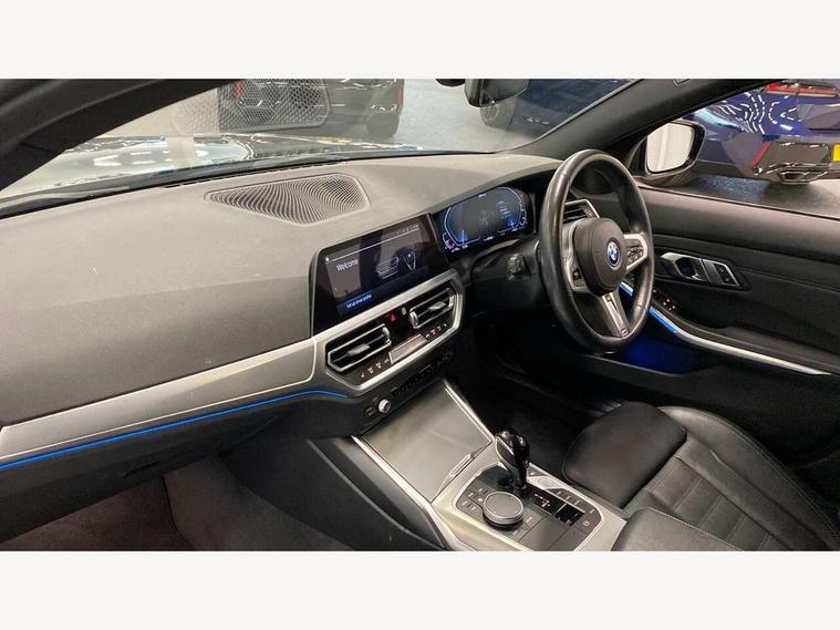 Active guard plus, Attentiveness assist, Auto start-stop, Bluetooth hands free facility with USB audio interface with audio streaming, BMW iDrive controller on centre console, BMW Live Cockpit Professional Nav with 12.3" instrument display + 10.25" display, Intelligent Voice Assist, BMW OS 7, HDD, 2USB, 4G LTE connect, BMW service history, BMW Teleservices, Brake pad wear indicator in front and rear, Check Control warning system for monitoring of lights and door/luggage compartment open warning, Condition based service, Cruise control with brake function + speed limiter, Electric power steering with Servotronic steering optimised at all speed ranges, Instrument cluster with speedometer with mph readout, tachometer, fuel gauge and oil temperature gauge, Integrated owners handbook, Oil sensor for level and grade, warning by check control system, On board computer - average speed+fuel consumption, service interval, clock/date, odometer/trip meter, outside temperature display and ice warning, Optimum shift indicator, Personal Profile - automatic lock when driving away selectable, Balanced 50/50 weight distribution, Battery cut-out switch, Charging cable - Mode 2, Drive performance control - ECO PRO, comfort and sport modes, Electronic differential lock control (EDLC), Petrol Particulate Filter, Stroke dependent dampers, DAB tuner, Electronic service booklet, Stereo speaker system with 2 mid range speakers in the front door trims and rear parcel shelf + 2 central bass speakers underneath the front seats, Acoustic glazing, Active airstream chrome frame kidney grille with 8 high gloss black vertical slats, Automatic headlight beam throw control with load dependent regulating reaction, dynamic compensation of braking dive and acceleration squat, Black roof mouldings, Body colour door handles, Body colour front and rear bumpers, Body colour fuel filler flap, Body colour mirror caps with bottom segment in matt black, Dynamic brake lights, Electric windows - front and rear, with open/close fingertip control, anti-trap facility and comfort closing, Exhaust tailpipe - split left and right, Exterior mirrors - electrically folding with anti-dazzle, Fading support, Front and rear bumper system with replaceable deformation elements, Front black door sill finishers with BMW designation, Green tinted heat protection glazing, High gloss shadow line exterior trim, Interior rear view electrochromatic mirror with automatic anti dazzle function, LED daytime running lights, LED front fog lights, Lightweight engineering, M designation on front side panels, left and right, Matt black exterior B pillar, Model designation on right side of tailgate, Rain sensor with automatic headlight activation, Rear boot, Shark fin antenna, Two part LED tailights in L-shape with components in smoked glass, brake light, LED turn indicator and rear fog light, Visible VIN plate, Welcome lights in interior and door handle area, Windscreen wipers with integrated washing jets, 12V power socket in front storage compartment, 2 front cupholder in centre console with clamping elements and matt black inlay, 3 rear seats with non folding headrests with 3 point seat belts, 3 zone automatic air conditioning, 4 pieces lashing eyelets in luggage compartment, 40:20:40 split folding rear seat with loading system, Ambient lighting with welcome carpet light, Anthracite headlining, Armrest integrated in front and rear door trim + front centre console armrest, Backrest width adjustment, Centred top Luggage compartment lights, Four grab handles integrated in roof lining, Front and rear door exit lighting (left / right), Front and rear door pockets, Front and rear reading lights, Front and rear velour floor mats, Front head restraints, Front sport seats, Heated front seats, Height adjustable mechanically and infinitely variable steering column, Illuminated armrest storage compartment, Illuminated glove compartment with separate small compartment, Interior lighting - front centre over interior mirror with soft light, rear centre and front and rear footwell lighting, M sport leather steering wheel, Make-up mirror lights, Rear centre armrest with 2 cupholders, Rear centre console with storage compartment and ventilation grille, Sunvisors with vanity mirrors and ticket pocket, Toolkit located in luggage compartment, Connected pack professional - 3 Series Saloon/Touring, M sport exterior styling pack - 3 Series Saloon/Touring, 2 tone horn, BMW emergency call, Brake energy regeneration, Braking pre-tensioning, Child proof locking system in rear door, Child seat ISOFIX attachment rear outer seats, Coasting in idle in ECO PRO mode, Crash sensor activating of airbags, Unlocking doors, hazard warning lights, interior light, safety battery terminal, Driver and front passenger side airbags, integrated in the door side seat backrest bolsters for all seat variants, Driver/Front Passenger airbags, Dry braking, Dynamic brake control, Dynamic stability control + (DSC+) - Anti-lock Braking System (ABS) with brake assist and cornering brake control + Automatic Stability Control (ASC), Dynamic Traction Control - DTC, Electric parking brake including automatic hold function and automatic release of the parking brake when driving off, Front passenger manual airbag deactivation, Head airbags for all 4 outer seats, Hill start assist, Seat belt security check for driver and front passenger, Side impact protection, Three 3 point seat belts on all seats including front belt stopper, pyrotechnic belt tensioners and belt force limiters, Tyre pressure monitoring with three level warning strategy, Ventilated front and rear disc brakes, Warning triangle and first aid kit, Alarm system (Thatcham 1) with remote control and electronic engine immobiliser, Central locking switch for all doors, fuel filler cap and luggage compartment, Remote control with integrated key one button open/close vehicle and windows, sole opening of the luggage compartment lid and panic mode, Start/stop button wit