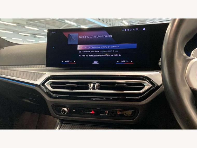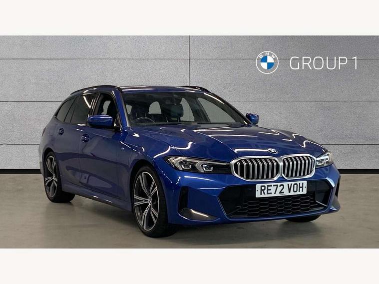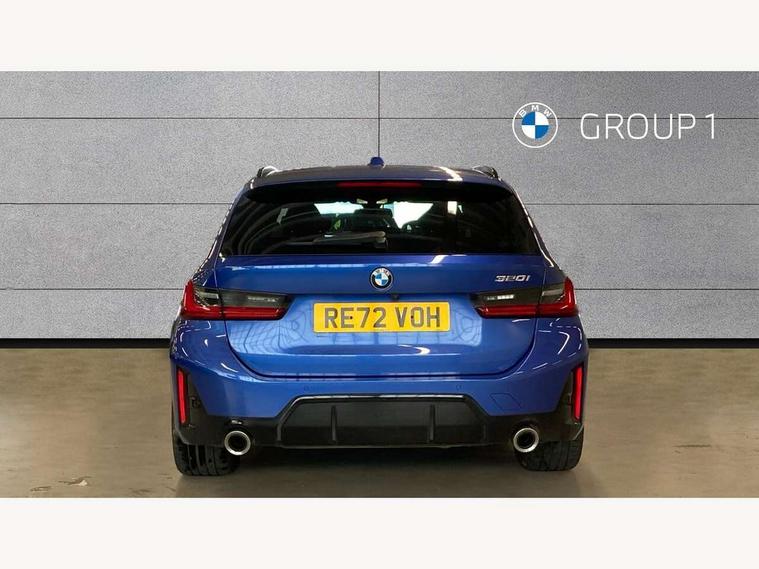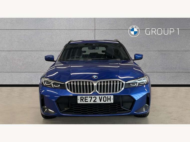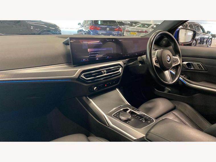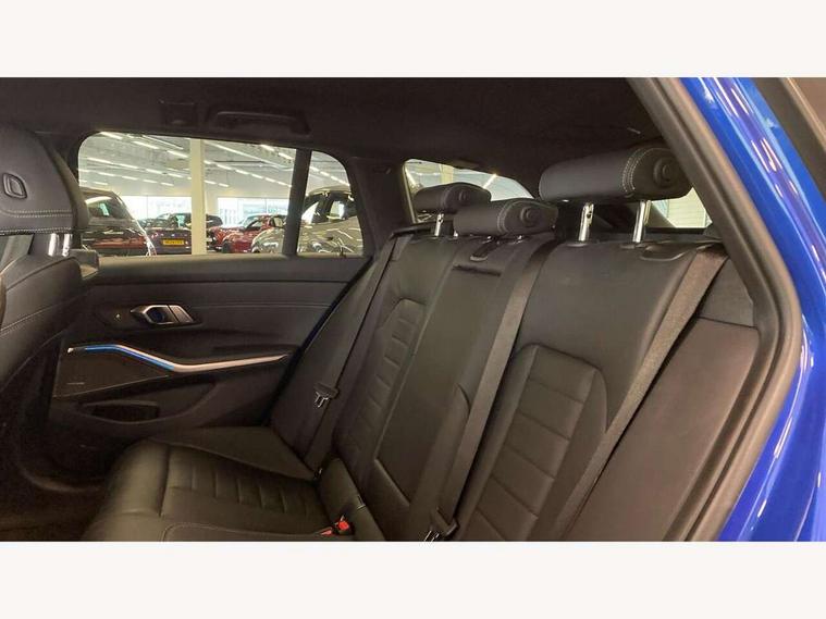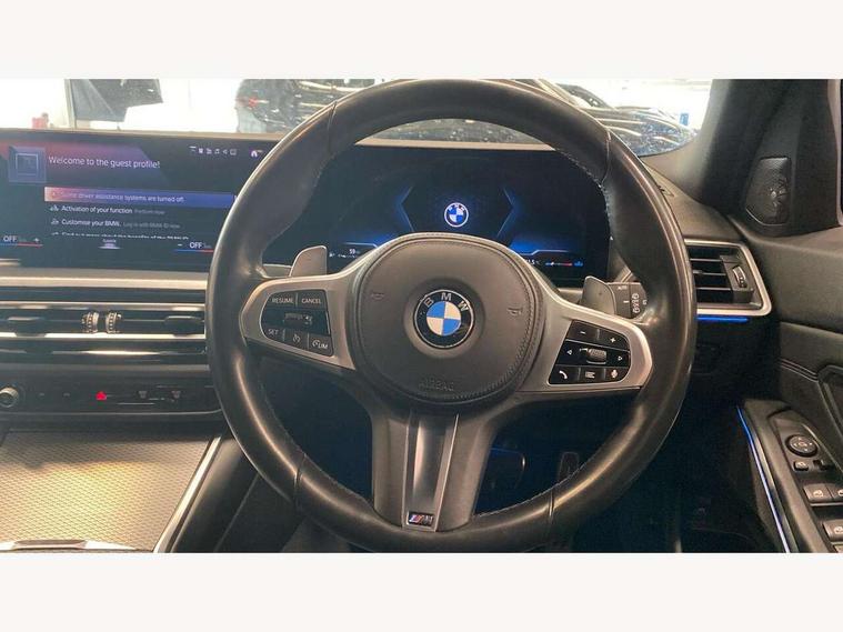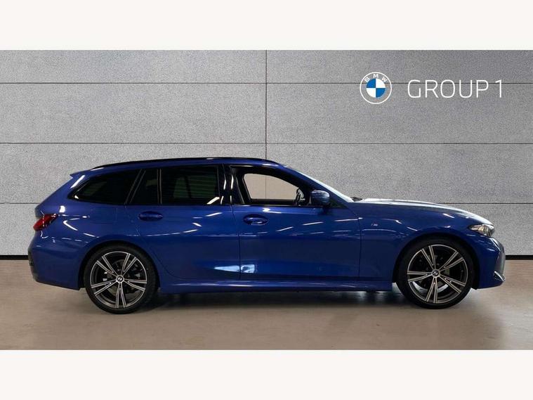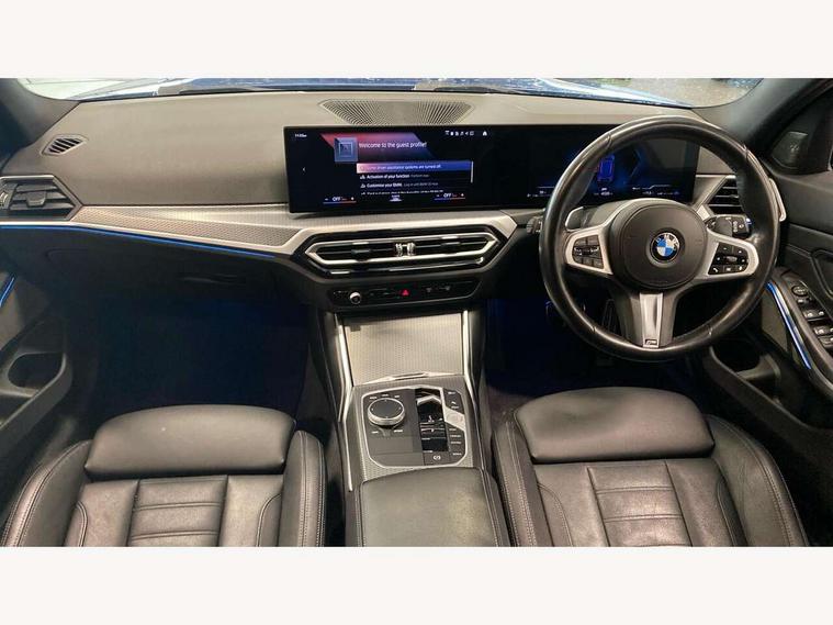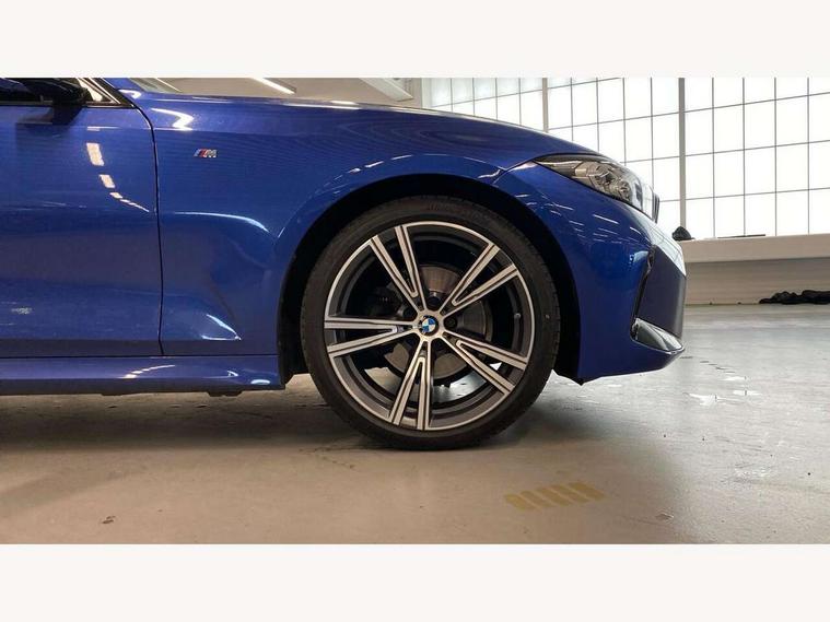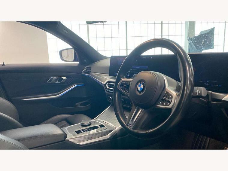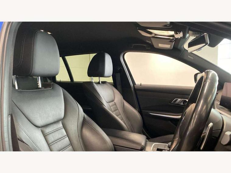 Active guard plus, Attentiveness assist, Automatic Start/stop button, BMW iDrive, BMW Teleservices, Condition based service, ConnectedDrive Services, Cruise control with brake function + speed limiter, Driving experience switch, Live cockpit plus with Navigation + 12.3" instrument display + 14.9" display, Intelligent voice assist, 2 USB, 4G LTE connect, Oil sensor for level and grade, Preparation for driver assistance, Shifting point display, Smartphone integration, Variable sport steering, Double joint spring strut front axle, Electronic differential lock control (EDLC), Fuel tank breather system, M sport suspension, Sport automatic transmission with steering-wheel mounted gearshift paddles and launch control, DAB tuner, 3rd brake light, Acoustic glazing, Automatic headlight beam throw control with load dependent regulating reaction, dynamic compensation of braking dive and acceleration squat, BMW emblem, engine compartment lid and tailgate, Body colour roof fin, Door sill strips, Electric windows - front and rear, with open/close fingertip control, anti-trap facility and comfort closing, Follow me home headlight function, Front and rear bumper system with replaceable deformation elements, Front apron plastic in body colour, Fuel filler flap - right rear in body colour, Heated washer jets, Illuminated bow type door handles in body colour drivers side with door lock, Interior rear view electrochromatic mirror with automatic anti dazzle function, LED headlights with LED daytime running lights and LED turn indicator, LED rear lights, Licence plate panel integrated into front bumper and tailgate, Matt black B-pillar finsher, Matt black window recess cover, Model designation on right side of tailgate, One piece front bumper cover including towing eye cover in body colour, Rain sensor with automatic headlight activation, Rear side wing doors, Rear wiper, Reversing lights, Side frame decorative moulding black matt, Visible exhaust tailpipe finisher, Welcome lights in interior and door handle area, 12V power socket in front storage compartment, 2 front cupholder in centre console with clamping elements and matt black inlay, 3 seat bench in 2nd row, 3 zone automatic air conditioning, 40:20:40 split folding rear seat with loading system, Anthracite headlining, Armrest integrated in front and rear door trim + front centre console armrest, BMW ID, Driver backrest width adjustment, Folding rear centre armrest with 2 cupholders, Front and rear door exit lighting (left / right), Front and rear footwell lighting, Front and rear headrests, Front and rear reading lights, Front and rear velour floor mats, Front sport seats, Heated front seats, Height adjustable mechanically and infinitely variable steering column, Illuminated armrest storage compartment, Illuminated glove compartment, Illuminated luggage compartment, Lashing eyelets in luggage compartment, LED ambient lighting with welcome carpet light, M Sport multifunction leather steering wheel, Make-up mirror lights, Single front passenger seat, Standard seat for driver and passenger with manual adjustment, Sunvisors with vanity mirrors and ticket pocket, Toolkit located in luggage compartment, Connected pack professional - 3 Series Saloon/Touring, Interior and exterior mirror pack - 3 Series Touring/Saloon, M Aerodynamics package - 3 Series Saloon/Touring, M sport exterior styling pack - 3 Series Saloon/Touring, Parking assistant pack - 3 Series, Storage compartment pack - 3 Series Saloon/Touring, 3x3 point rear seatbelts, BMW emergency call, Child locks on rear doors, Crash sensor activating of airbags, Unlocking doors, hazard warning lights, interior light, safety battery terminal, Driver and front passenger with seat occupancy detection for driver's and passenger side, Driver and passenger side airbags, body protection at side and airbags deploy from seat backrests, Dynamic brake control, Dynamic stability control + (DSC+) - Anti-lock Braking System (ABS) with brake assist and cornering brake control + Automatic Stability Control (ASC), Dynamic Traction Control - DTC, Electric parking brake including automatic hold function and automatic release of the parking brake when driving off, Head airbags in 1st and 2nd row, head protection at side, curtain airbags open from headliner above 1st and 2nd row, Plastic fuel tank, Side impact protection, Tyre pressure monitoring with three level warning strategy, Ventilated front and rear disc brakes, Warning triangle and first aid kit, Alarm system, Centre lock switch, Closing system with central locking, Electronic vehicle immobiliser,