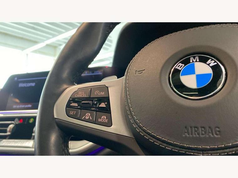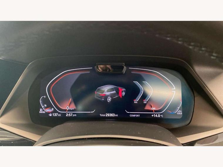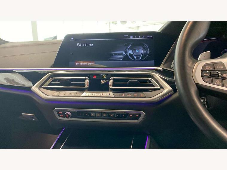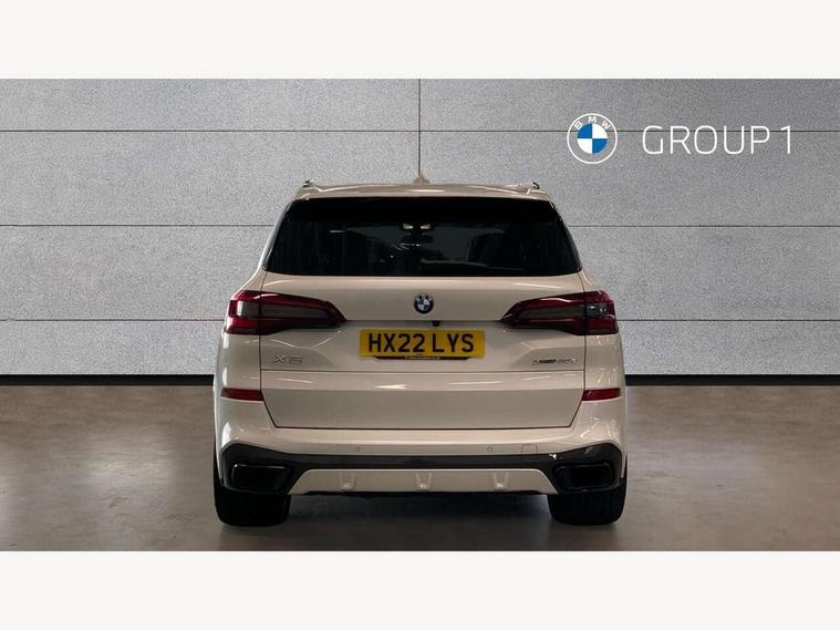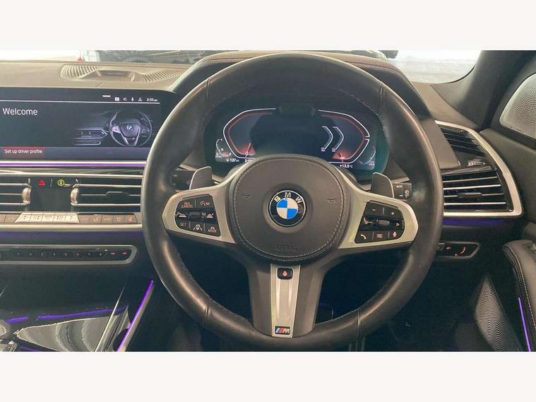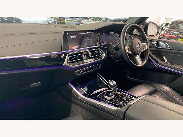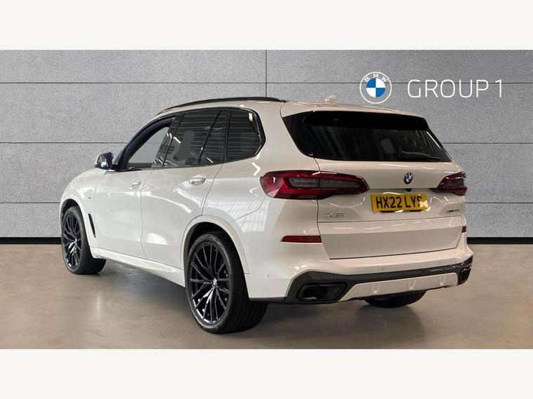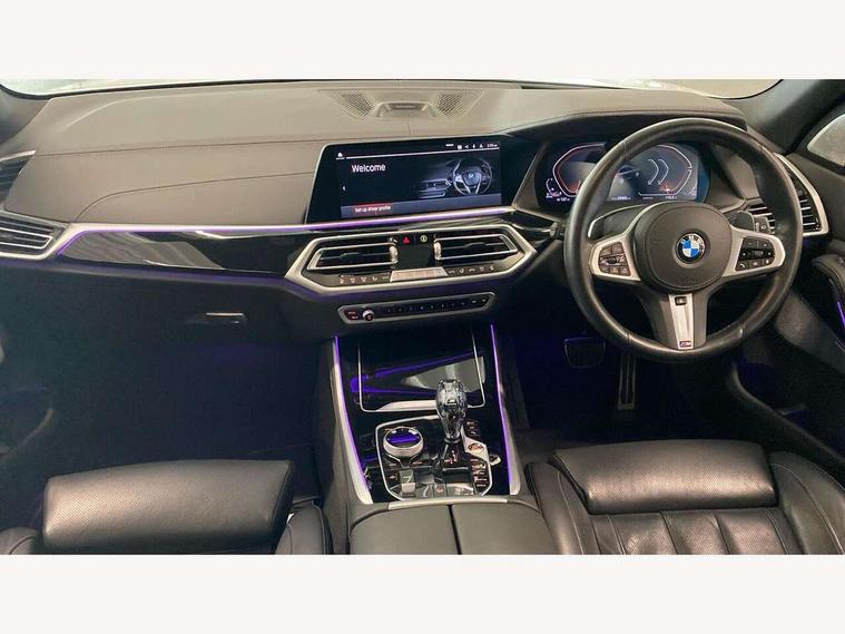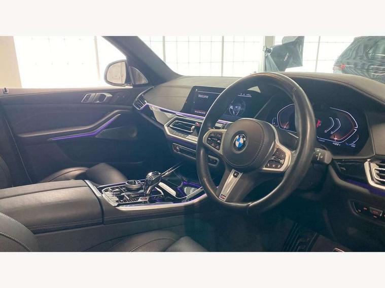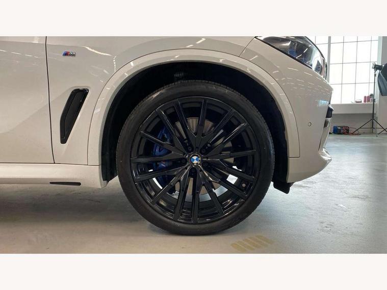 20GB hard disc drive (HDD) memory, Active guard plus, Attentiveness assist, Automatic tailgate with top hinged section open and manual bottom hinged section, BMW ConnectedDrive online services, BMW digital live cockpit professional - 12.3" digital instrument panel and 12.3" CID, with touch/voice command, BMW legal emergency call, BMW Teleservices, Brake force display, Brake pad wear indicator warning light, Cruise control with brake assist, Enhanced bluetooth with wireless charging, Front/rear park distance control, iDrive controller with shortcut buttons, Lights on warning, Oil sensor for level and grade, On board computer inc. average speed, fuel consumption, liquid crystal Info display, journey computer, outside temperature display, personal profile, Service interval indicator, Speed limit info display, Speed limiting function, Wi-Fi hotspot, 48V Mild hybrid technology, Adaptive 2-axle air suspension, Common rail technology, Diesel particulate filter, Double wishbone front axle, Drive performance control with ECO PRO comfort + sport mode, Eight speed steptronic sport automatic transmission and gearshift paddles on the steering wheel, Safety battery terminal clamp, Variable vane geometry, DAB Tuner enables digital radio reception, Favourite buttons, Hi-Fi loudspeaker system, USB connection, USB type A 1.5A in cupholder, USB Type C 3A in centre armrest, Active Air Stream kidney grille with high-gloss chrome, Adaptive air flap control bar in high-gloss black, Automatically dimming rear view mirror, BMW Individual high gloss black shadow line roof rails, BMW Individual high gloss shadow line, Body colour bumpers, Body colour door handles, Dynamic brake lights with LED technology, Exhaust tailpipes - single, left and right with Chrome finisher, Follow me home headlight function, Front and rear electric windows with open and close fingertip control, anti trap facility and comfort closing, Heated windscreen washer jets, High beam assistant, High gloss black outer and central air intakes on front bumper with pearlescent chrome finish, High gloss black Side elements, LED daytime running lights, LED rear lights, M aerodynamic body styling, M designation on left and right front side panels, Pearlescent chrome front grille bars, Rain sensor with automatic headlight activation and windscreen wiper control, Rear side wing doors, Satin aluminium side window graphic, Third brake light in rear spoiler, Variable intermittent rear wash/wipe, Welcome light carpet, X5 on left tailgate, xDrive designation on right tailgate, 12V - Power sockets with 2x centre console and 1x luggage compartment, 3 seat bench in 2nd row, 40:20:40 split folding rear seats, Ambient interior lighting with 6 pre-designed selectable lights including dynamic function, Centre and rear interior light, Child seat ISOFIX attachment with rear outer seats includes top tether, Compartment in front of cupholder, Electric front seat adjustment with driver and front passenger memory function, Electrical steering column with adjustable height and length with activation and control on the steering column, Foldable rear centre armrest with 2 cupholders and storage compartment, Front and rear cupholders x 2, Front and rear door pockets, Front and rear door sill inlays with illuminated BMW M designation, Front and rear side armrest integrated into door trim, Front footwell lights, Front reading lights, Light inside glove compartment, Lockable glove compartment, Luggage compartment floor panel with integral storage tray, Luggage compartment lighting, M leather steering wheel, M specific key, M specific steering wheel, Make-up mirror lights, Multifunction controls for leather steering wheel, Multifunctional hooks, Rear head restraints, Seat back with flap pocket, Securing rings in luggage compartment, Single front passenger seat, Storage bins on all doors, Storage tray and compartment with cover in centre console, Sunvisors with illuminated vanity mirrors, Toolkit located in luggage compartment, Velour floormats, Connected Package Professional - X5, Expanded exterior mirror pack - X5/X5 M, Non-smokers pack - X5, Airbags - driver/front passenger, rear and side, first and second row seats head airbags, front passenger seat airbag deactivation + knee airbag, Anti-lock braking system (ABS), Automatic Stability Control (ASC), Brake drying, Brake energy regeneration, Brake fade compensation, Braking pre-tensioning, CBC - (Cornering brake control), Crash sensor activating central locking release, hazard warning lights, fuel cut off, interior lighting + activation of safety battery terminal clamp, Deformation zones - front and rear with door reinforcements and bumpers up to 2.5 mph, DSC - Dynamic Stability Control, Dynamic brake control, Dynamic Traction Control - DTC, Electromechanical parking brake with automatic drive away release and auto hold function, Electronic brake force distribution, Front and rear seatbelts with seatbelt stopper, seatbelt tensioner for front and outer rear seats and belt force limiter, Front head restraints with anti-whiplash, Height adjustable front seatbelts, Hill start assistant, Integrated brake system, M Sport braking system in blue high gloss + blue painted brake calipers with M designation, Mechanical child proof lock on rear doors, Passive protection for pedestrians, Seat occupancy detection for driver and passenger side, Side impact protection, Three 3 point inertia reel seatbelts, Two tone horn, Tyre pressure monitoring system, Ventilated front and rear disc brakes, Warning triangle and first aid kit, Closing system with central locking, Driver and front passenger door centre lock switch, Locking wheel bolts, Thatcham 1 alarm system with remote control and engine immobiliser, Start/stop toggle diamond shaped trim finisher in pearl chrome,