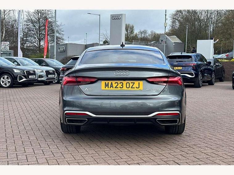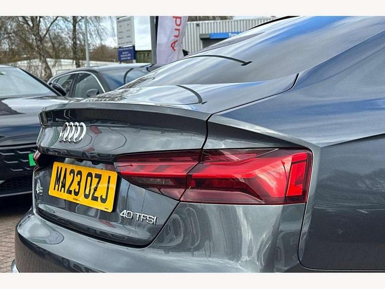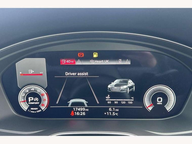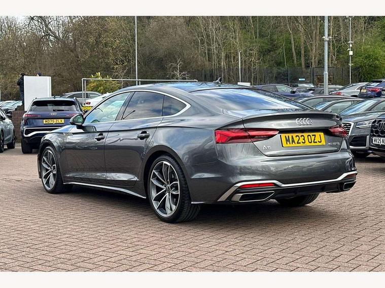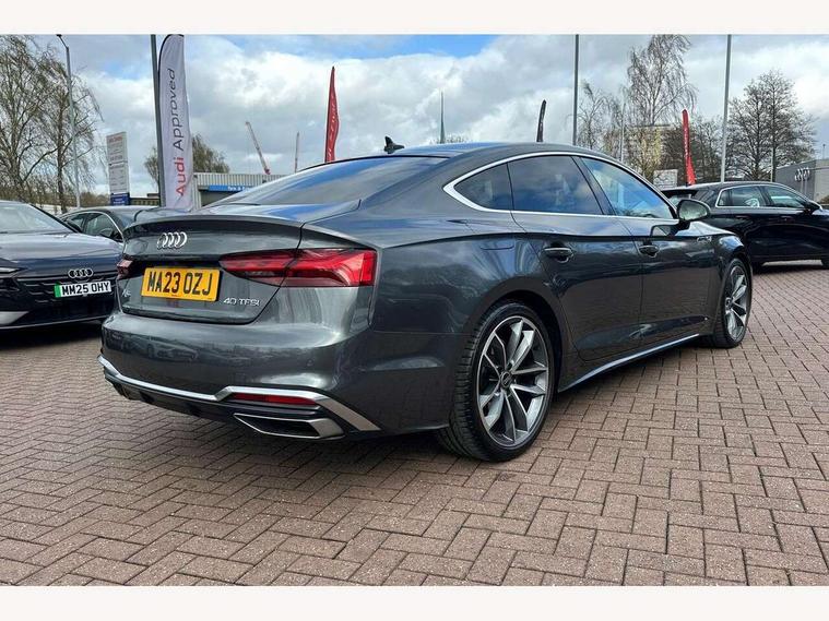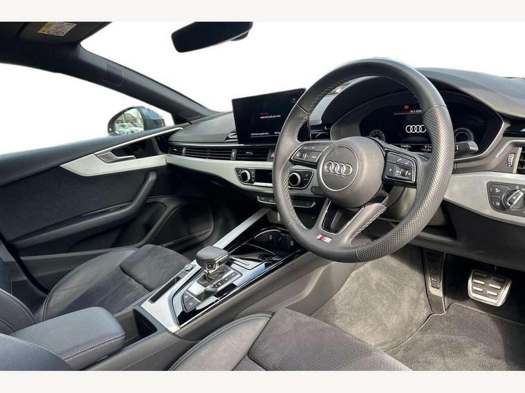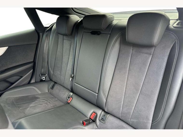 Audi connect safety and service (e-call), Audi connect with Amazon Alexa Integration, Audi drive select (Auto, Comfort, Dynamic, Efficiency and Individual), Audi parking system plus with front and rear sensors, Audi smartphone interface, Audi virtual cockpit - 12.3" full colour digital instrument cluster, vehicle/engine speed, Radio/media information+Driver assistance systems, Automatic start-stop system with coasting functionality and efficiency programme, Bluetooth interface, Electro-mechanical power steering, Email, calendar and text messages displayed via MMI, MMI nav+ with MMI touch - 10.1" high resolution MMI display, touch sensitive, 3D map, route/country info, dynamic route guide, personal route assist, Power operated tailgate, Rear view camera, Service interval indicator, Voice control system, Sports suspension lowered by 23mm, 8 passive loudspeakers, CD player, DAB digital radio reception, Two additional USB ports for rear passenger in rear centre console, Two SDXC card slots, Audi matrix LED headlights with LED rear lights + dynamic front and rear indicators, Auto dimming door mirrors, Auto dimming rear view mirror, Body colour bumpers, Body colour door handles, Body colour front spoiler lip, Body colour side sill trim, Body coloured door mirrors, Electric adjustable heated door mirrors, Electric folding door mirrors, Electric front windows, Front fog lights, Honeycomb structure radiator grille in grained matt black, Kerb-view function for passenger side, LED daytime running lights, LED side indicator lights integrated into door mirrors, LED third brake light, Matt aluminium silver tailpipe trim, Privacy glass, Rain and light sensors, Rear side wing doors, S line badges on front wings, S line front and rear bumpers with side skirts, S Line rear diffuser in matt anthracite black with trim strip in matt aluminium silver, Side air inlets in grained matt black with matt aluminium silver inlay, Variable front intermittent wipers, Windscreen with acoustic glazing, 3 seat bench in 2nd row, 3 spoke high multifunction leather sport steering wheel with paddle shfit and S badging perforated leather grips, 4 way electric lumbar support for driver and front passenger, 40/20/40 split folding 3 seater rear bench seat, Adjustable steering column, Black cloth headlining, Black perforated leather gearknob, Contrast stitching on seats, steering wheel and gear lever gaiter, Deluxe 3 zone electronic climate control, Front centre armrest, Front head restraints, Front/rear floor mats, Heated front seats, Illuminated door sill trim with S logo, ISOFIX child seat mounting and top tether, Luggage compartment mat, Manual seat adjustment, Rear centre armrest, Rear headrests, Single front passenger seat, Stainless steel pedals, Sunvisors with vanity mirrors, LED interior light pack - A5/RS5, 3x3 point rear seatbelts, 6 airbags - Driver, front passenger, curtain and side airbags, Electromechanical parking brake, Electronic Stabilisation Control (ESC) including ABS, ASR and EDL, Front passenger airbag deactivation, Height adjustable front seatbelts, Hill hold assist, Manual child lock in rear doors, Multi collision brake assist, Pop-up bonnet for pedestrian protection, Pre sense city, Seatbelt monitoring, Tyre pressure warning, Variable restraint system, Warning triangle and first aid kit, Anti theft alarm system, Anti theft wheel bolts, Immobiliser, Keyless Go, Remote central locking, Matt brushed aluminium inlays, Tool kit, Tyre repair kit,