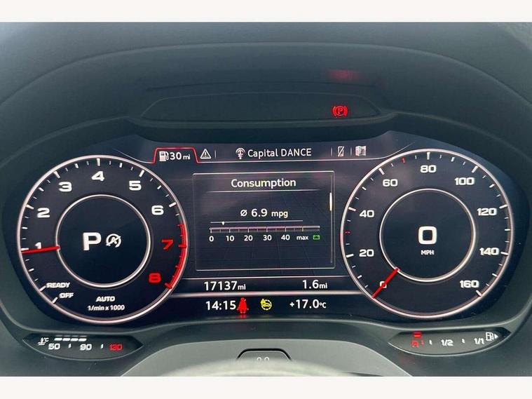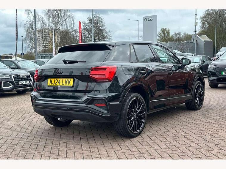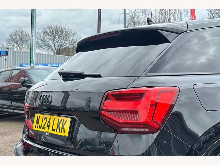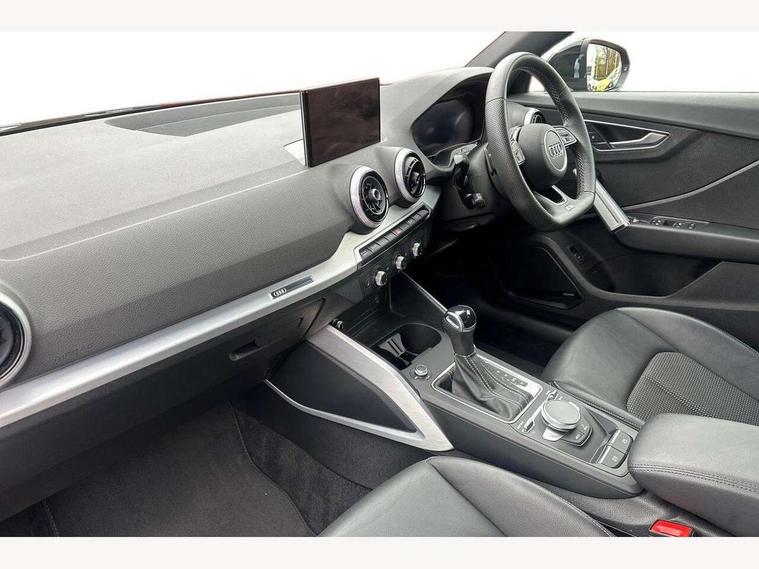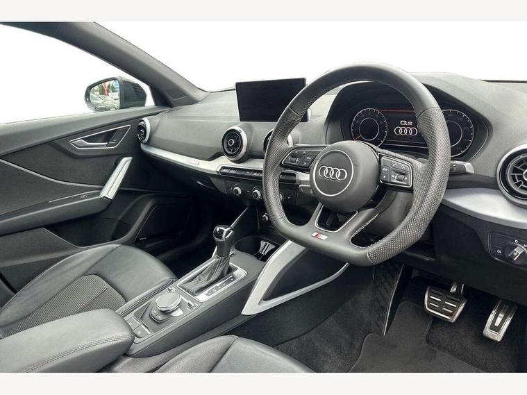3D map display, Audi connect navigation and infotainment includes innovative services, Audi connect remote and control connects your vehicle to your smartphone, Audi drive select: S tronic - power steering assistance + engine + gearshift (modes: comfort, auto, dynamic, efficiency, individual), Audi smartphone interface - Apple carplay/Android Auto, USB connect, 2xSDXC card readers, voice control for navi, telephone, music and 3rd party apps, Audi virtual cockpit, Automatic start/stop system with recuperation, Bluetooth interface includes bluetooth audio streaming, Cruise control, Distraction and Fatigue warning, E-call, Jukebox hard drive memory for music (10GB), Lane departure warning, MMI navigation plus with 8.8" touchscreen, Natural voice recognition, Power operated tailgate, Progressive steering, Rear parking sensors, Sport suspension, 6 passive loudspeakers, DAB Digital radio, USB type C port, Audi beam, Auto dimming rear view mirror, Black window trims, Bumper in full body colour paint finish, Electrically adjustable, folding, auto dimming and heated door mirrors with integrated LED side indicators, Front windscreen with grey tinted sunband, LED daytime running lights, LED headlights with dipped beam, high beam, position lights, indicators, LED rear lights, LED third brake light, Privacy glass - dark tinted rear and rear side windows from B-pillar backwards, Rear side wing doors, Rear wiper, Variable front intermittent wipers, Wheel arch trims in manhattan grey, 12V socket in front, 3 seat bench in 2nd row, 3 spoke flat bottomed multi-function leather sport steering wheel with gear shift paddles, 4-way electric lumbar support for front seats including manual seat height adjustment for both front seats, 60/40 split folding rear seat bench, Black carpets, Black cloth headlining, Front and rear head restraints, Front centre armrest, Front sport seats, Front/rear floor mats, Height/reach adjust steering wheel, Illuminated door sill trims with S logo, ISOFIX child seat mounting in front passenger and rear outer seats, Manual air conditioning, Single front passenger seat, Stainless steel pedals, Black styling pack - Q2, 3x3 point rear seatbelts, 6 airbags - Front, curtain and front side airbags, Electromechanical parking brake, Electronic stabilisation control including ABS, ASR and EDL, Front passenger airbag deactivation, Hill hold assist, Pre-sense front with pedestrian recognition, Seatbelt monitoring, Tyre pressure warning light with visual and acoustic warning, Warning triangle and first aid kit, Anti theft alarm, Anti theft wheel bolts, Electronically operated child locks, Remote central door locking, Aluminium interior element, Black dashboard, Gloss black centre console, Matt brushed aluminium trim inlays, Tool kit,