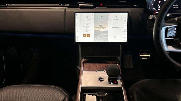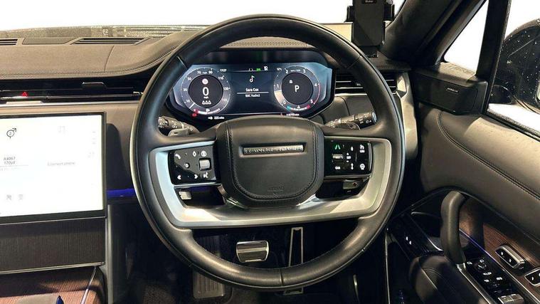 13.1" Touchscreen, 3D surround camera inc frwd traffic detection, vehicle clearance guidance, 3D view, clearsight ground view, manoevure light, 360 parking aid, wade sensing, All Terrain Info Centre, All wheel steering, Android Auto, Apple car play, Blind spot assist, Bluetooth connectivity streaming, Driver condition response, Eco mode, Electric power assisted steering (EPAS), Emergency call service, Front and rear parking aid, Interactive driver display, Lane keep assist, Park assist, Rear collision monitor, Rear traffic monitor, Remote, Traffic sign recognition with adaptive speed limiter, Wi-Fi Enabled with data plan, Wireless device charging with phone signal booster, 8 speed automatic transmission, Active damper technology system, Adaptive dynamics, All terrain progress control, All Wheel Drive (AWD), Automatic access height, Terrain Response 2 Auto, Twin speed transfer box, Digital Audio Broadcast radio-DAB, Pivi pro including smart settings, Connected navigation pro, nuance speech, USB socket, Acoustic laminated windscreen, Animated directional indicators, Automatic headlights, Automatic levelling headlights, Centre high mounted stop light, Electric windows with one touch open/close and anti trap, Engine cover, Flush deployable exterior door handles, Front and rear recovery eyes, Front fog lights, Headlamp power wash, Heated rear window, Heated washer jets, Illuminated aluminum treadplates with Range Rover script, LED tail lights, No badges, Pixel LED headlights with signature DRL, Power fold, auto-dimming, heated door mirrors with approach lights, Rain sensing windscreen wipers, Rear boot, Rear fog lights, Rear side wing doors, Side repeater indicators in mirror, Trailer stability assist, Winter wiper park position, 12V power sockets, 3 seat bench in 2nd row, Air quality sensor, Bright metal pedals, Cabin lighting, Customer configurable single point entry, Driver and passenger front seat armrests, Easy boot loading, Ebony Carpet, Front and rear cupholders, Front and rear grab handles, Front head restraints, Gearshift paddles, Heated steering wheel, Hook in load space, Loadspace light, Luggage tie down in loadspace, Multifunction steering wheel, Rear centre armrest, Rear head restraints, Rear ISOFIX, Single front passenger seat, Soft close doors, Upper and lower glovebox, Online pack with data plan - Range Rover, 3x3 point rear seat belts, Anti-lock braking system (ABS), Brake hold function, Cornering brake control (CBC), Customer configurable autolock, DSC - Dynamic Stability Control, Electronic brake force distribution, Electronic parking brake, Electronic traction control, Emergency braking, Front airbags with passenger seat occupant detector, Front side airbags, Hill descent control, Hill launch assist, Low traction launch, Occupant protection assist, Power operated child locks, Roll stability control, Tyre pressure monitoring system (TPMS), Immobiliser, Intrusion sensor and alarm, Keyless entry, Locking wheel nuts, Remote central locking, Noble chrome controls,