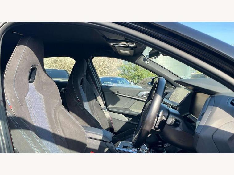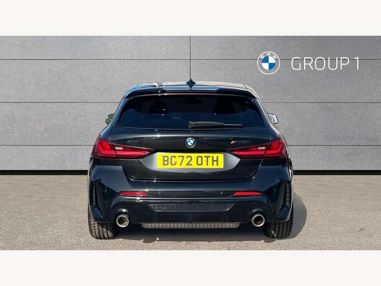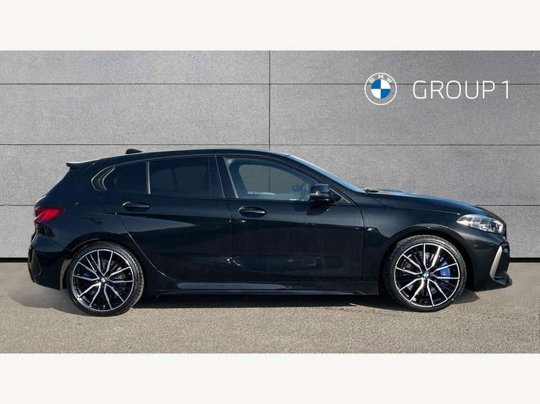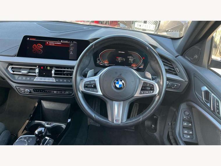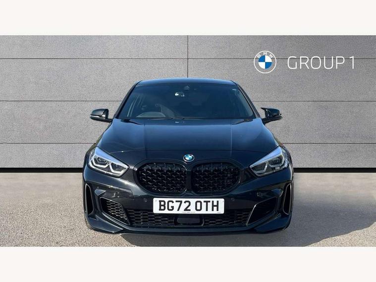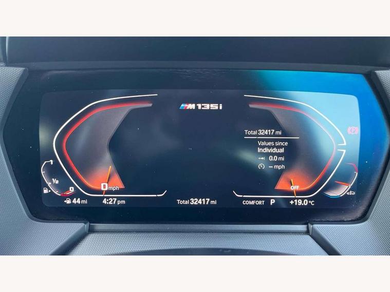 Active guard plus, Attentiveness assist, BMW ConnectedDrive online services, BMW Teleservices, Check Control warning system for monitoring of lights and door/luggage compartment open warning, Cruise control with brake assist, Eco pro mode, Electric power steering, Electro hydraulically controlled multi-plate clutch transfers drive to rear axle and with power take-off device located on the front differential., Energy efficient operating strategy, Front axle single joint with specific axle kinematics to minimise drive influences on steering + provide increased rigidity agile driving behaviour, Gearshift time display in manual mode, Integrated owners handbook, Lane departure warning system, M Sports steering with M135i xDrive specific settings, Oil sensor for level and grade, On board computer, Optimum shift indicator, Personal Profile, Pull away assistant, Rigidly mounted rear subframe - Multi link construction with separate spring / damper configuration and excellent driving characteristics, Speed limit Info including no-overtaking indicator, Speed limiter, Sporty fast gear shifting in sport mode, Aluminium lightweight construction, Anti roll bar front and rear, Balancer shaft, Double VANOS, Drive Performance Control, Eight speed sport automatic transmission with gearshift paddle switches, Electronic differential lock, Electronic selector lever, Engine cover with M performance designation, High precision injection, Larger fuel tank capacity (50 litres), Launch control, M135i specific heavily de-throttled engine intake air guide, M135i specific high-performance cooling package, M135i specific larger turbocharger with integrated divert-air valve, Petrol Particulate Filter, Twin tube gas filled shock absorbers with degressive characteristic curve, VALVETRONIC engine management, Variable, stepless and infinitely adjustable distribution of drive torque between the front and rear axles, xDrive intelligent all wheel drive with M135i specific reinforced components, DAB Digital radio, Auto dimming rear view mirror, Automatic headlight beam throw control, Automatic windscreen wipers and automatic headlight, Body colour door handles, Body colour roof trims, Cerium grey exterior mirror caps, Direction indicator side lights in exterior mirrors, Exhaust tailpipe, Cerium Grey with bevelled finish - twin, round 100mm, left and right split, Fading support, Folding side mirrors with auto dimming/folding wing mirrors with auto dimming, Follow me home headlights, Front and rear bumper system with replaceable deformation elements, Front and rear electric windows with open and close fingertip control, anti trap facility and comfort closing, Front door sill finishers with M135i designation, Green tinted heat protection glazing, Heated, electrically adjustable exterior mirror aspheric on driver side, convex on passenger side, High gloss shadowline window frame, Recess cover mirror frames and B/C pillar embelisher trim, High level third brake light, Integrated front windscreen with washer jets, Kidney grille frame in Cerium Grey with Mesh design, LED daytime running lights, LED eyebrow turn indicators, LED front fog lights, Lightweight engineering, M logo designation side in cerium grey, M Performance exhaust system with valve control and minimised exhaust back pressure, M Performance specific setup, M Sport spoiler, Matt black air guide grilles, Matt black wheel arch trim, Model designation on electric bootlid includes xDrive designation for M135i xDrive, Nearside reverse light in rear light cluster, Preparation for high beam assistant, Rear fog lights, Rear side wing doors, Rear window wiper, Reinforced crank drive, new pistons and adapted con rods, Shark fin antenna, Trailer stabilisation logic, Visible VIN plate, Welcome lighting, 12V power socket in front centre console with blanking plug, 3 rear seat head restraints, 3 seat bench in 2nd row, 3 spoke sports leather steering wheel with black leather and stitching, pearl chrome decorative finish, specific M Badge, Anthracite headlining, Black boot net with lashing eyes, Cargo function on 2nd seat row, Child seat ISOFIX attachment for two outer rear seats and front passenger seat with anchorage points, Conditioned based service, Driver and front passenger seat heating, Folding rear clothes hook, Four grab handles integrated in roof lining, Front and rear door pockets with bottle holders, Front and rear side armrest integrated into door trim, Front armrest, Front integrated head restraints, Front M sports seats, Glove compartment, Luggage compartment for bag hooks on left and right, foldable luggage compartment liner and four lashing eyelets, Manual adjust steering wheel, Multi-function controls for steering wheel, Single front passenger seat, Storage compartment in centre console, Sun visors with vanity mirrors and insert tab, Two front centre console cupholders, Two zone automatic air conditioning, Velour floor mats, Additional interior lighting pack - 1 Series M135i, BMW live cockpit professional pack- 1 Series, Connected pack professional - 1 Series, Interior lights pack - 1 Series, M Sport exterior styling aerodynamics pack - 1 Series 135i, 2 tone horn, 3 point seatbelts on all seats, front pyrotechnic belt tensioners, stopper and belt force limiters, rear coded belt buckles, Airbags - Front driver/passenger, front and rear curtain head protection, front side, manual deactivation of front passenger airbag, Anti lock braking system (ABS) with brake assist, BMW emergency call, Brake drying, Braking readiness, Child proof locking system in rear door, City braking function, Comfort modes, Cornering brake control, Crash sensor activating central locking release, hazard warning lights, fuel cut off, interior lighting + activation of safety battery terminal clamp, Driver and front passenger seat belt security check, Dynamic stability control + (DSC+), Dynamic Traction Control - DTC, Electrically operated hand brake including automatic hold function, Front and rear